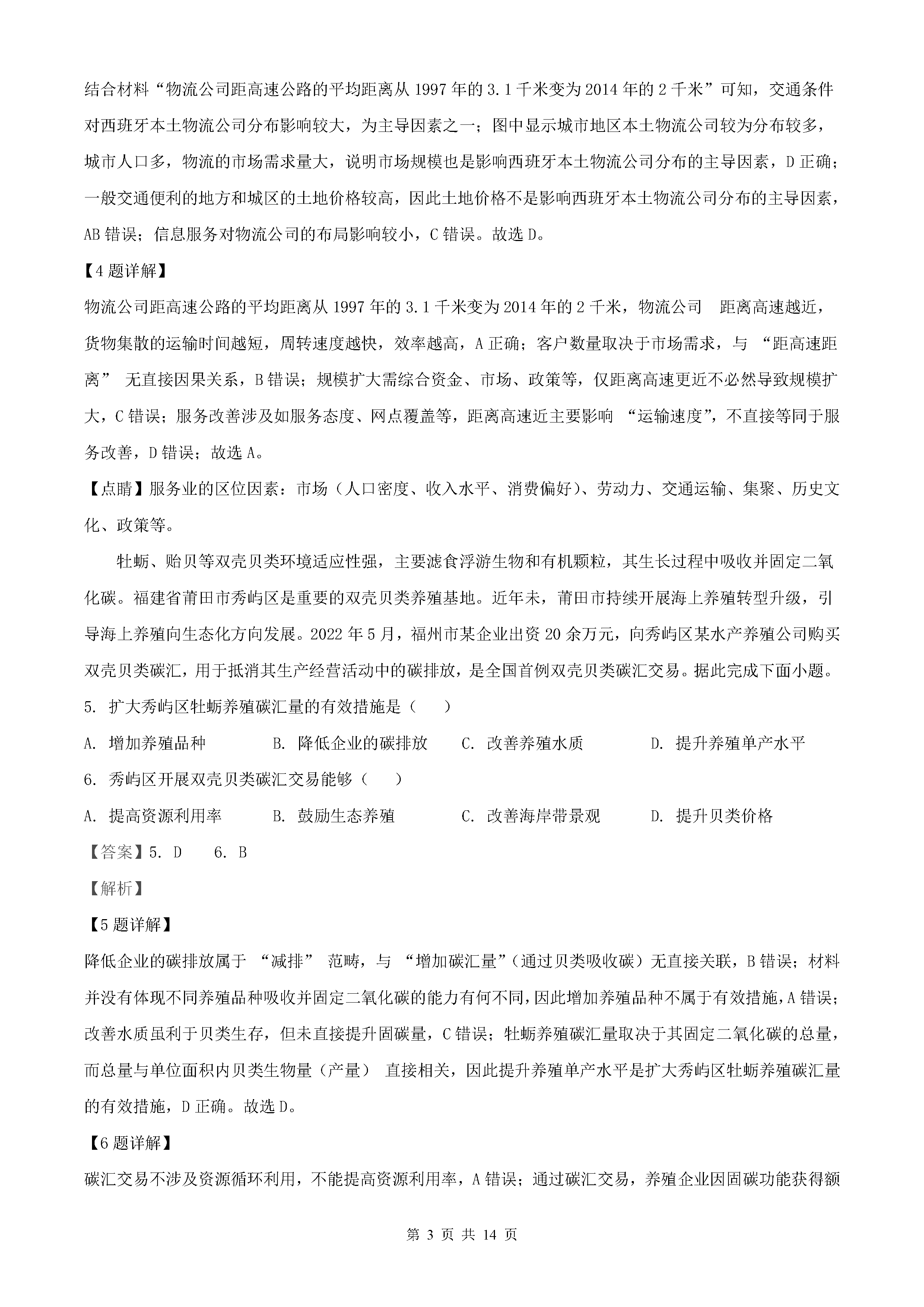 2022年湖南高考地理试卷真题及答案解析(已更新)