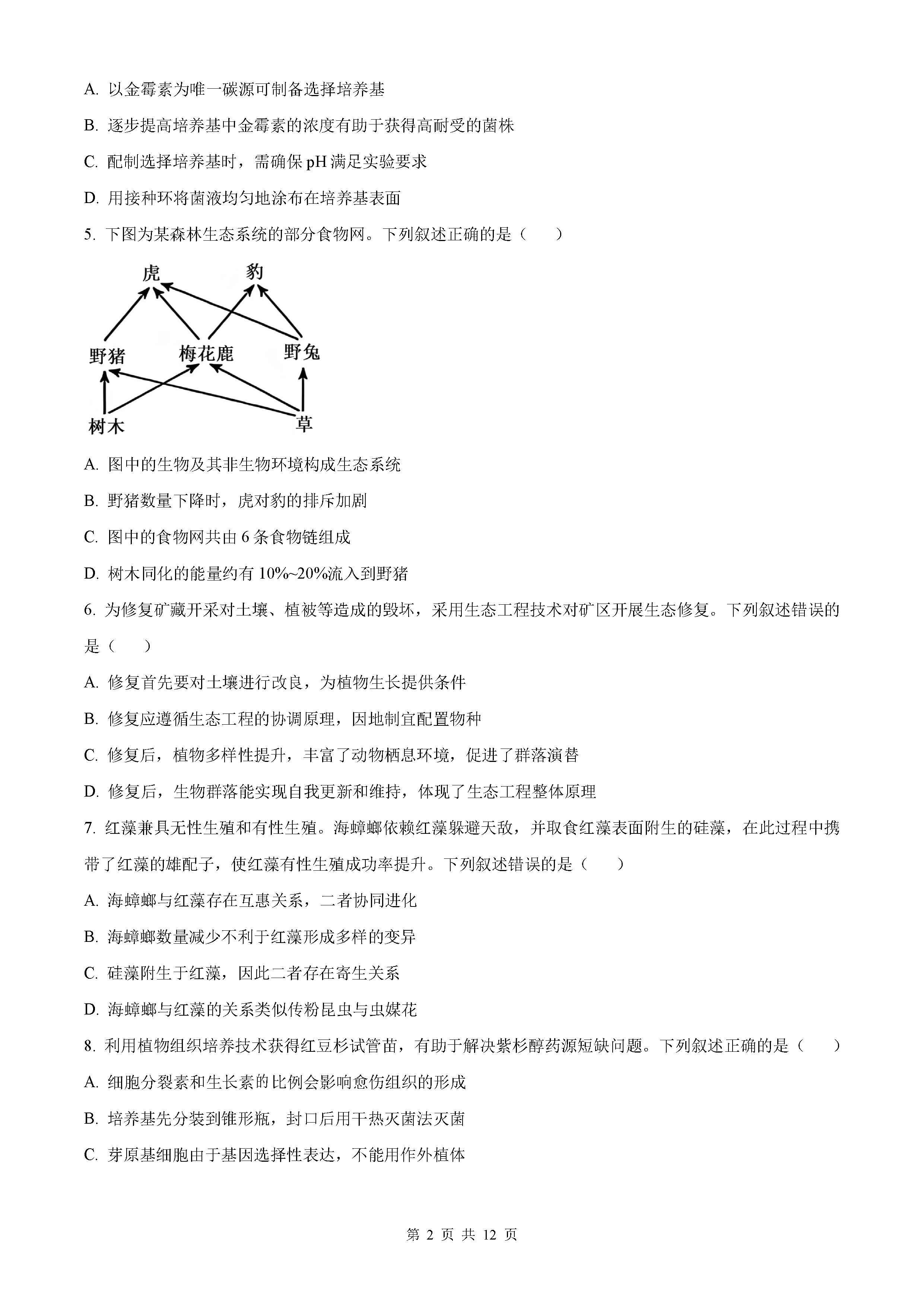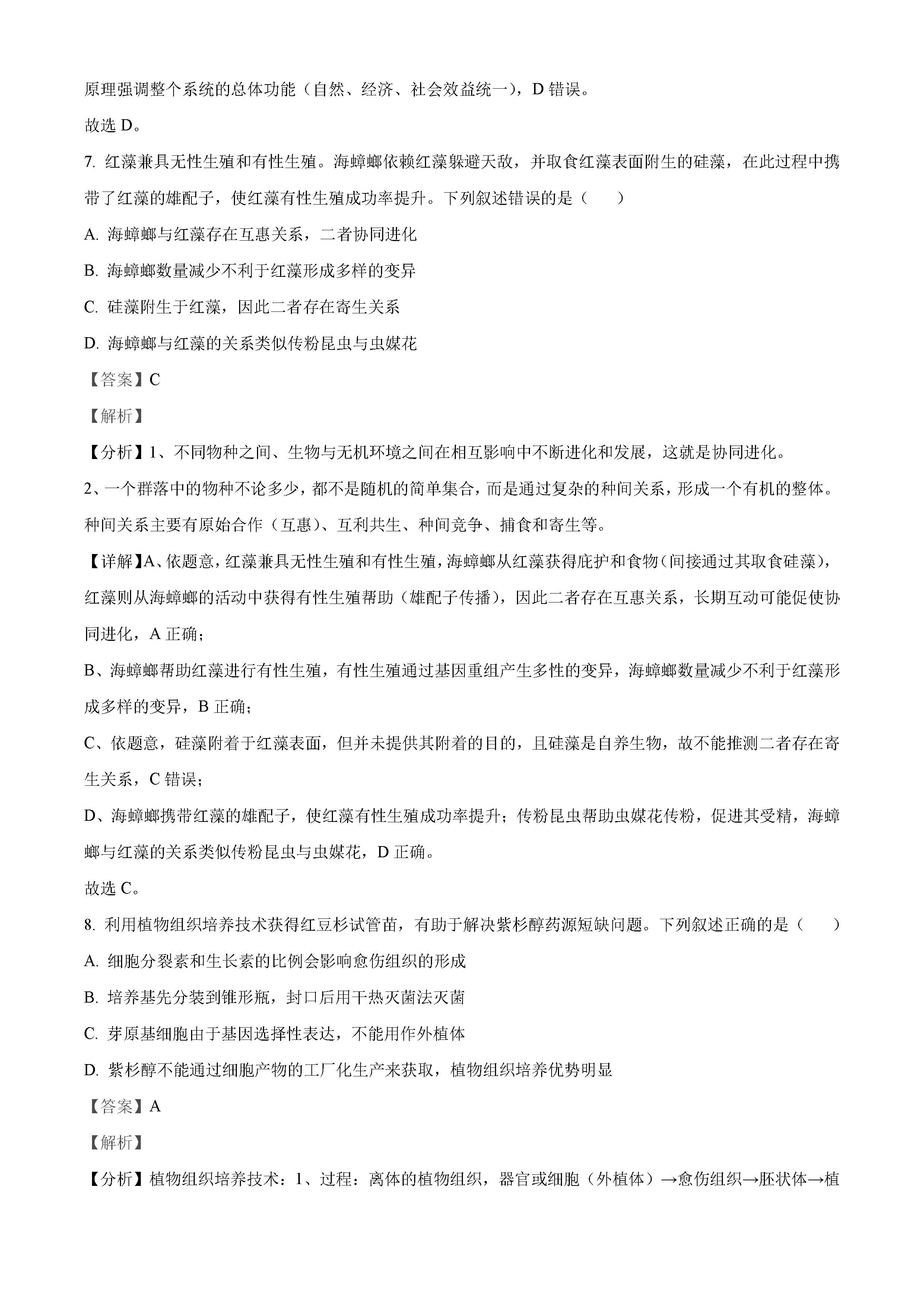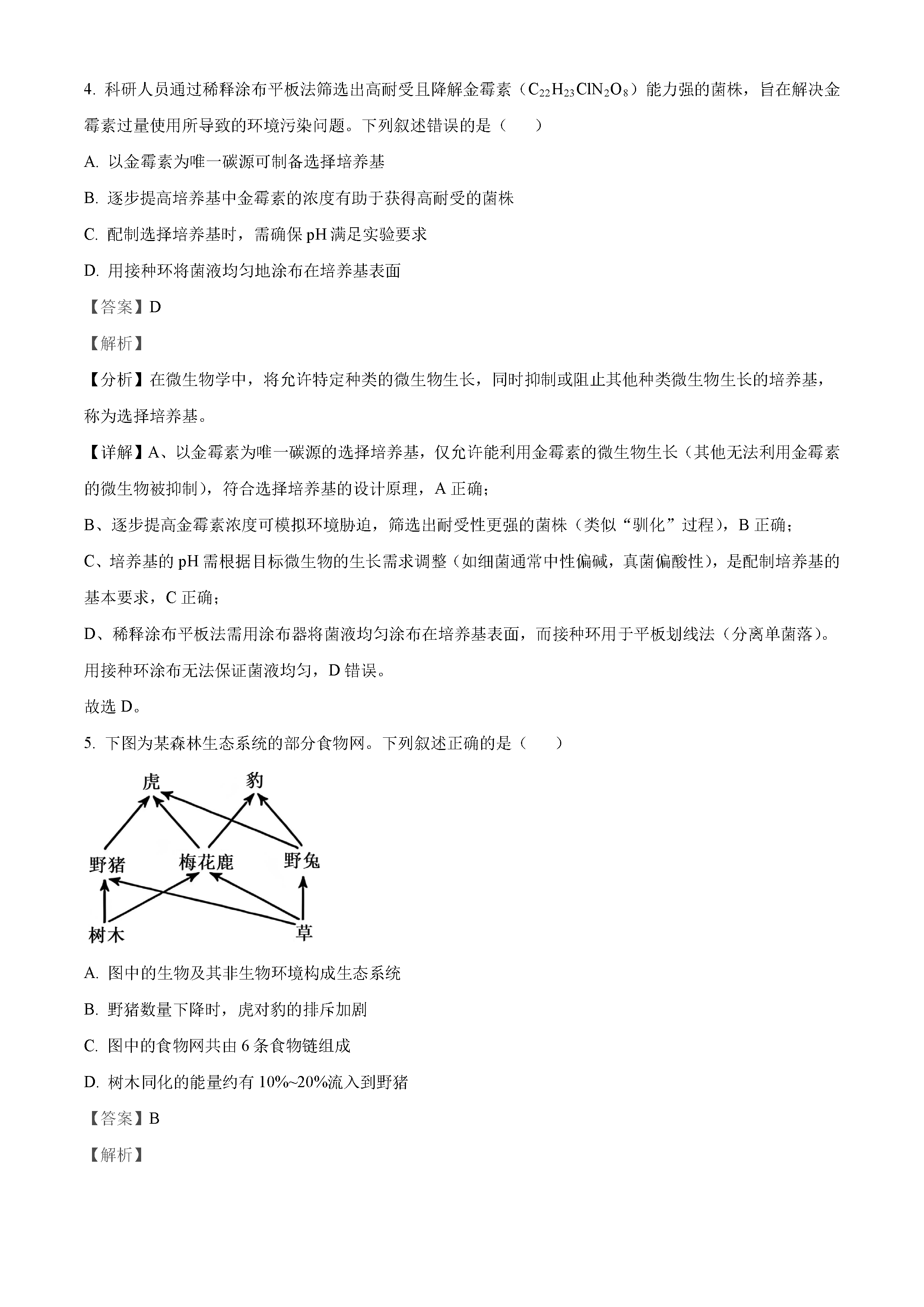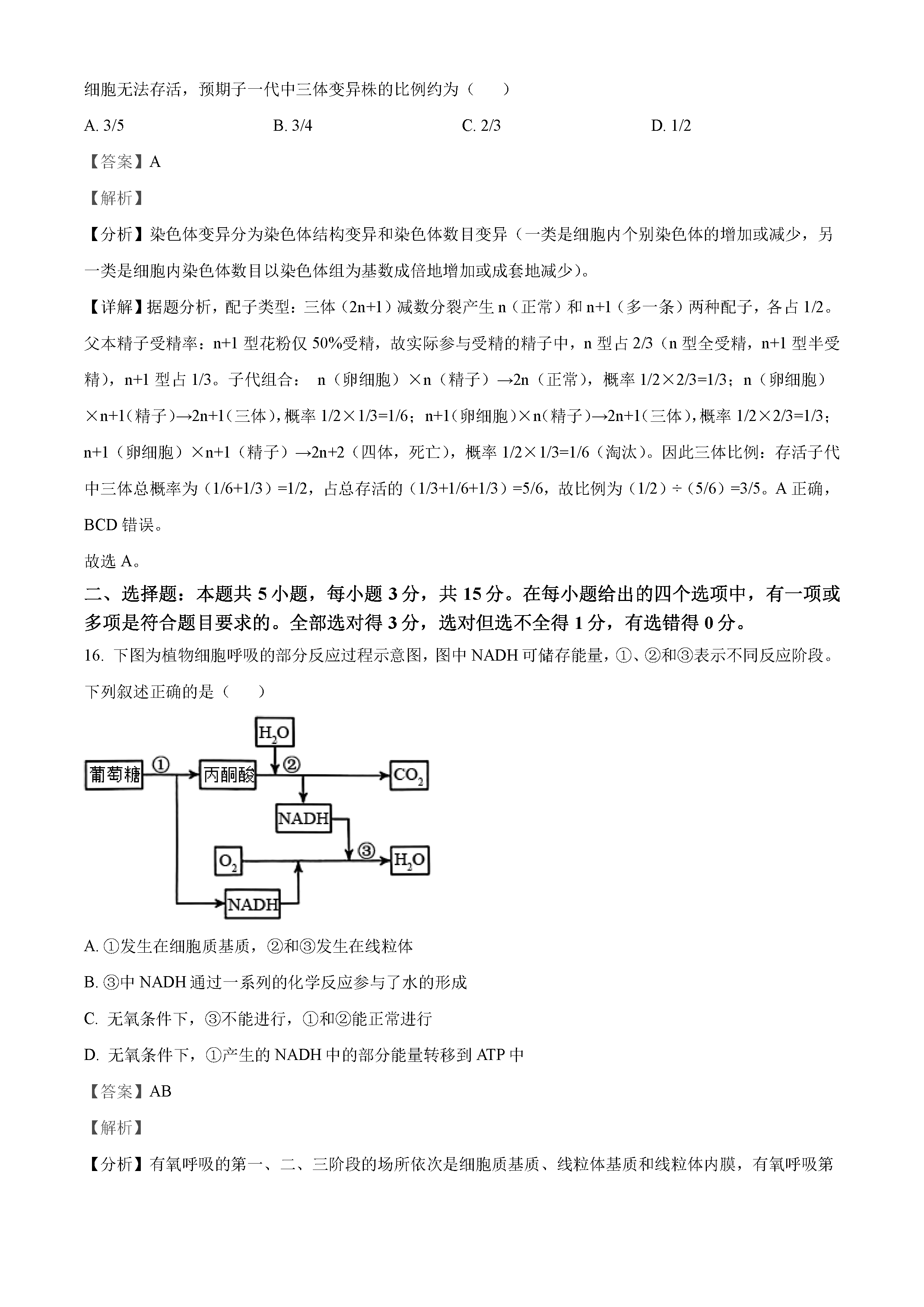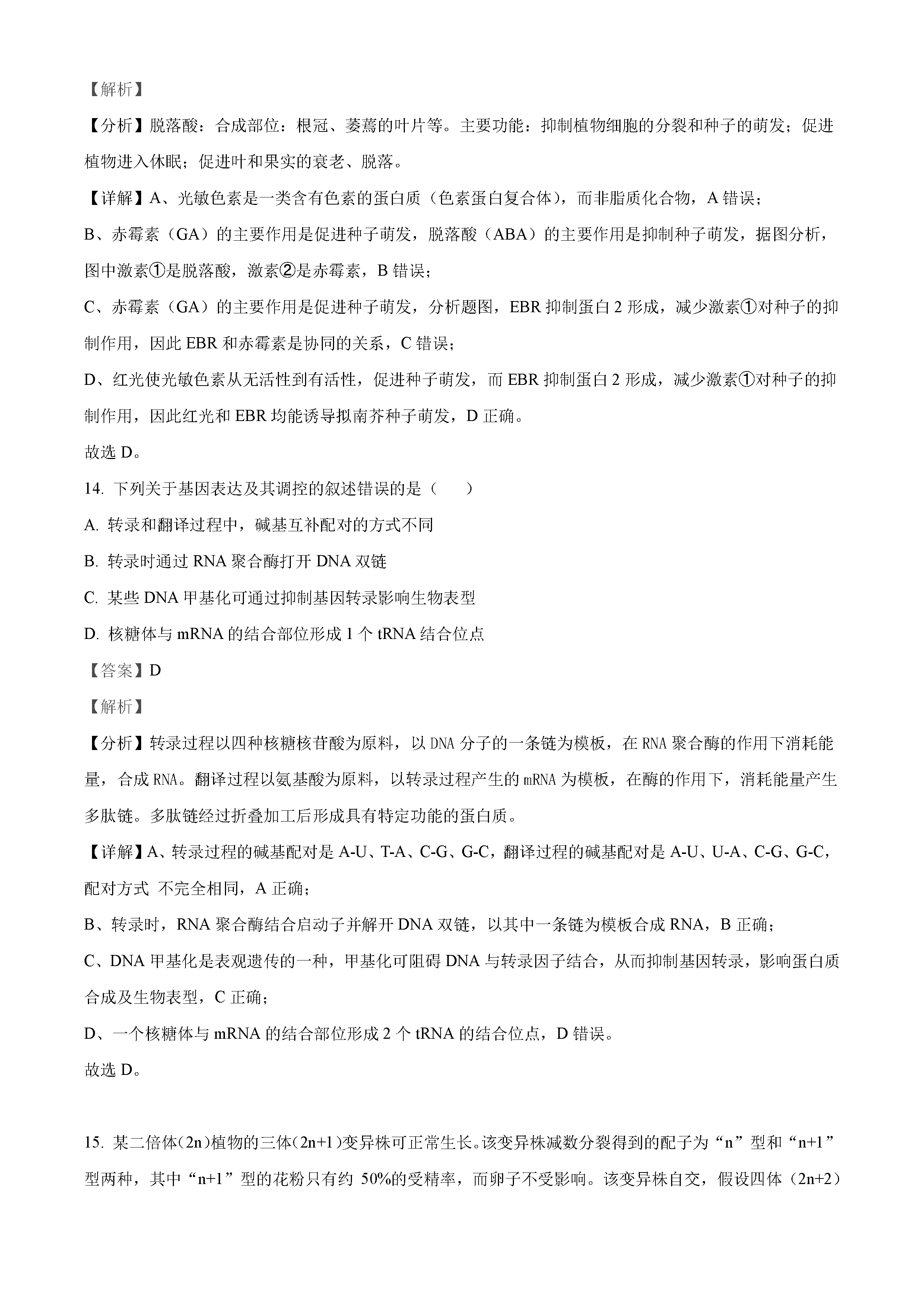 2022年湖南高考生物试卷真题及答案解析(已更新)