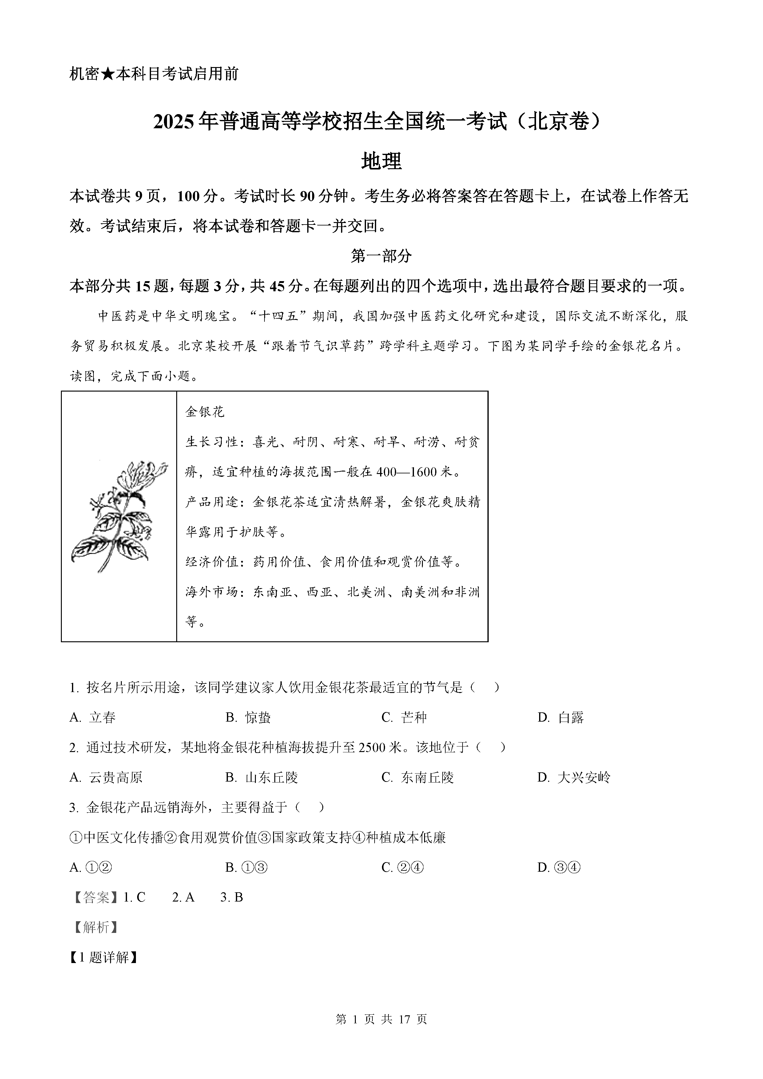 2022年广东高考地理试卷真题及答案解析(已更新)