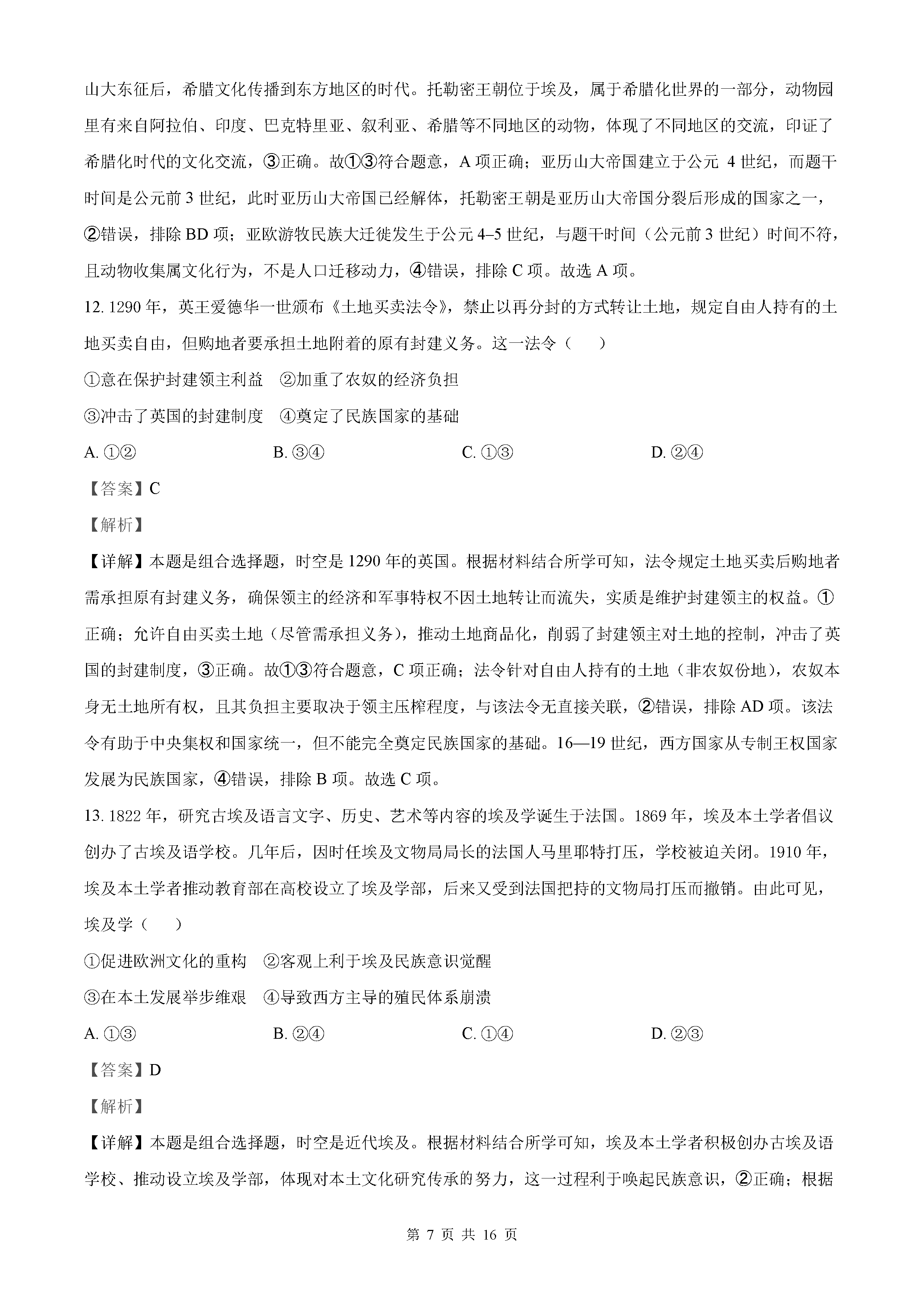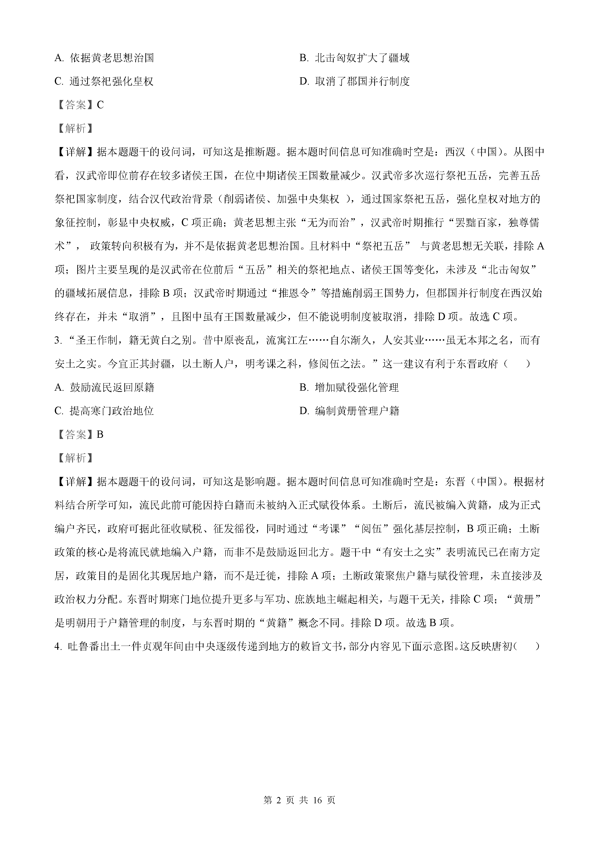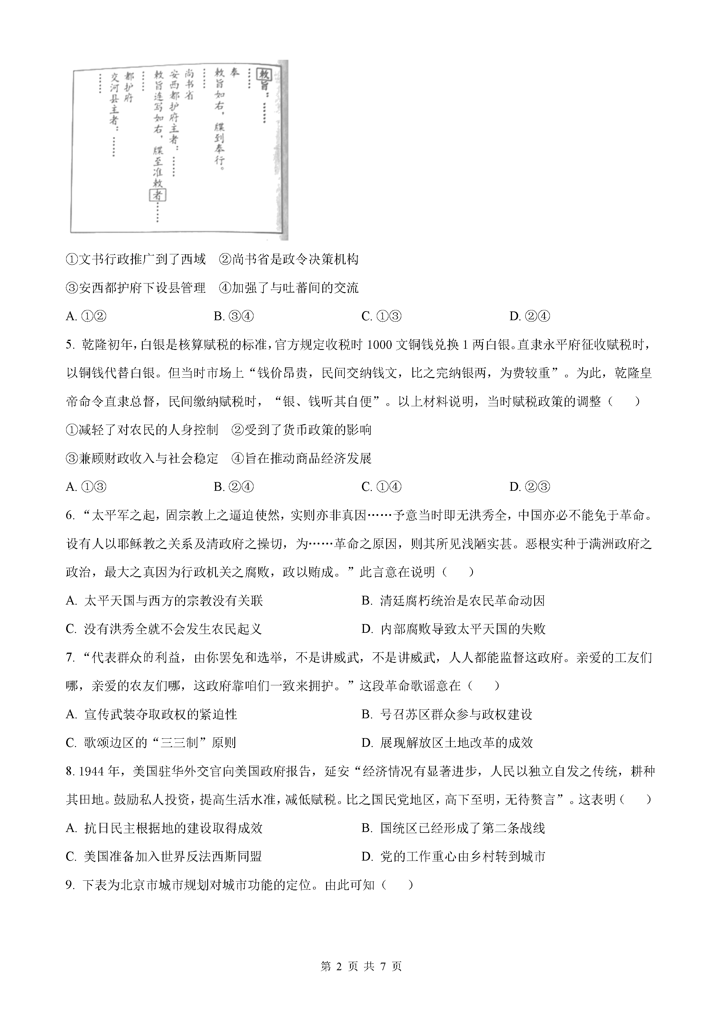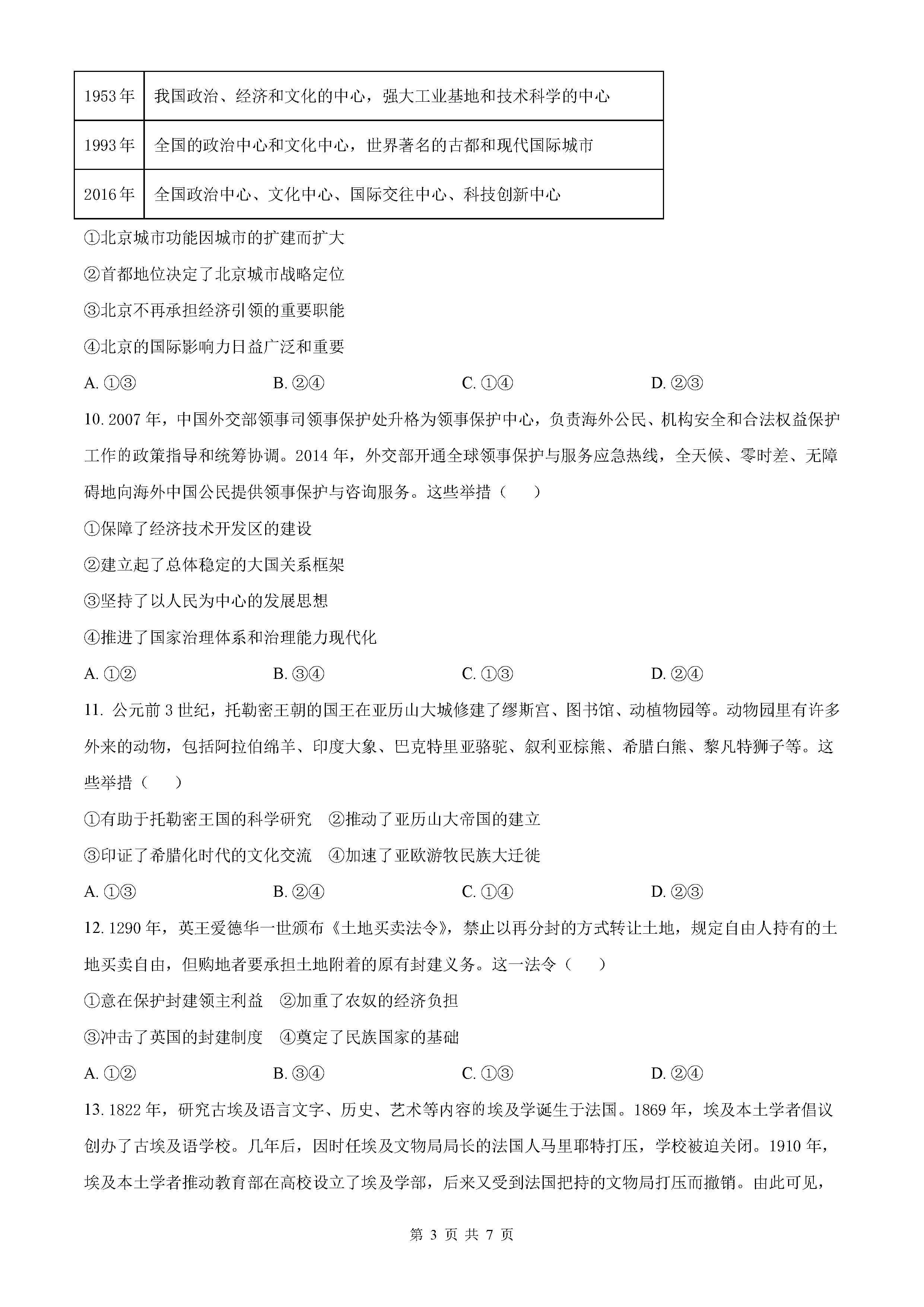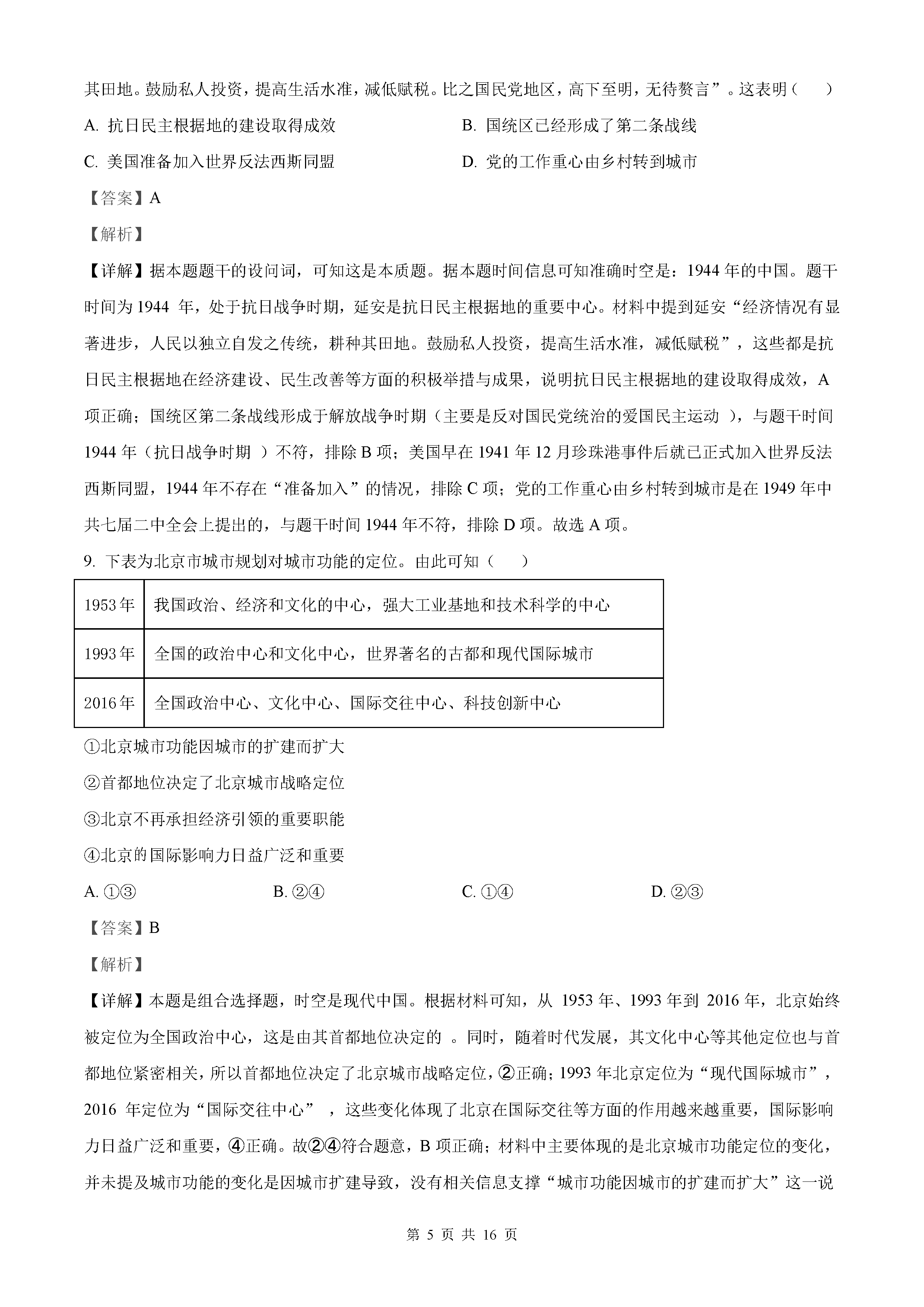 2025年北京高考历史试题及答案解析