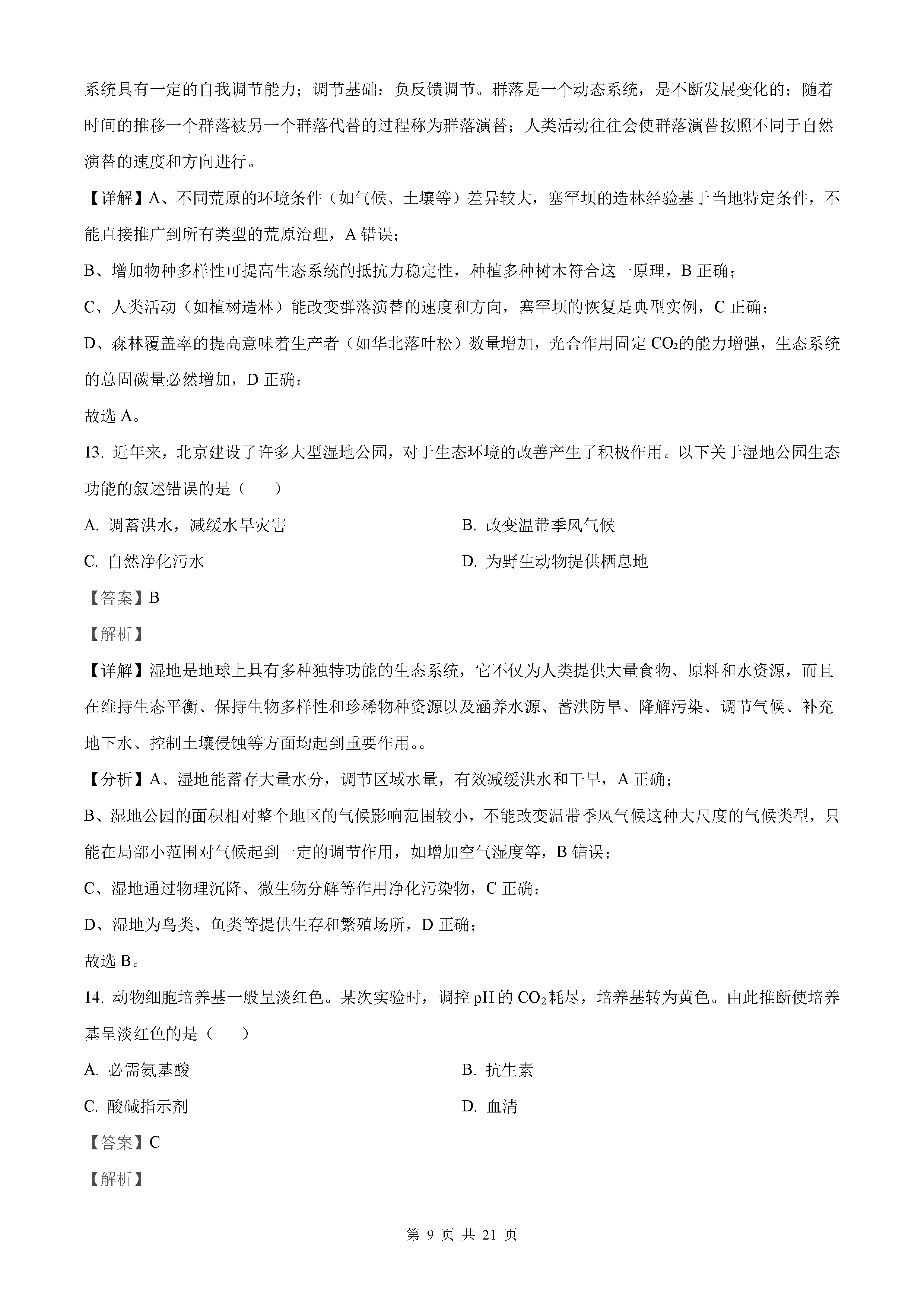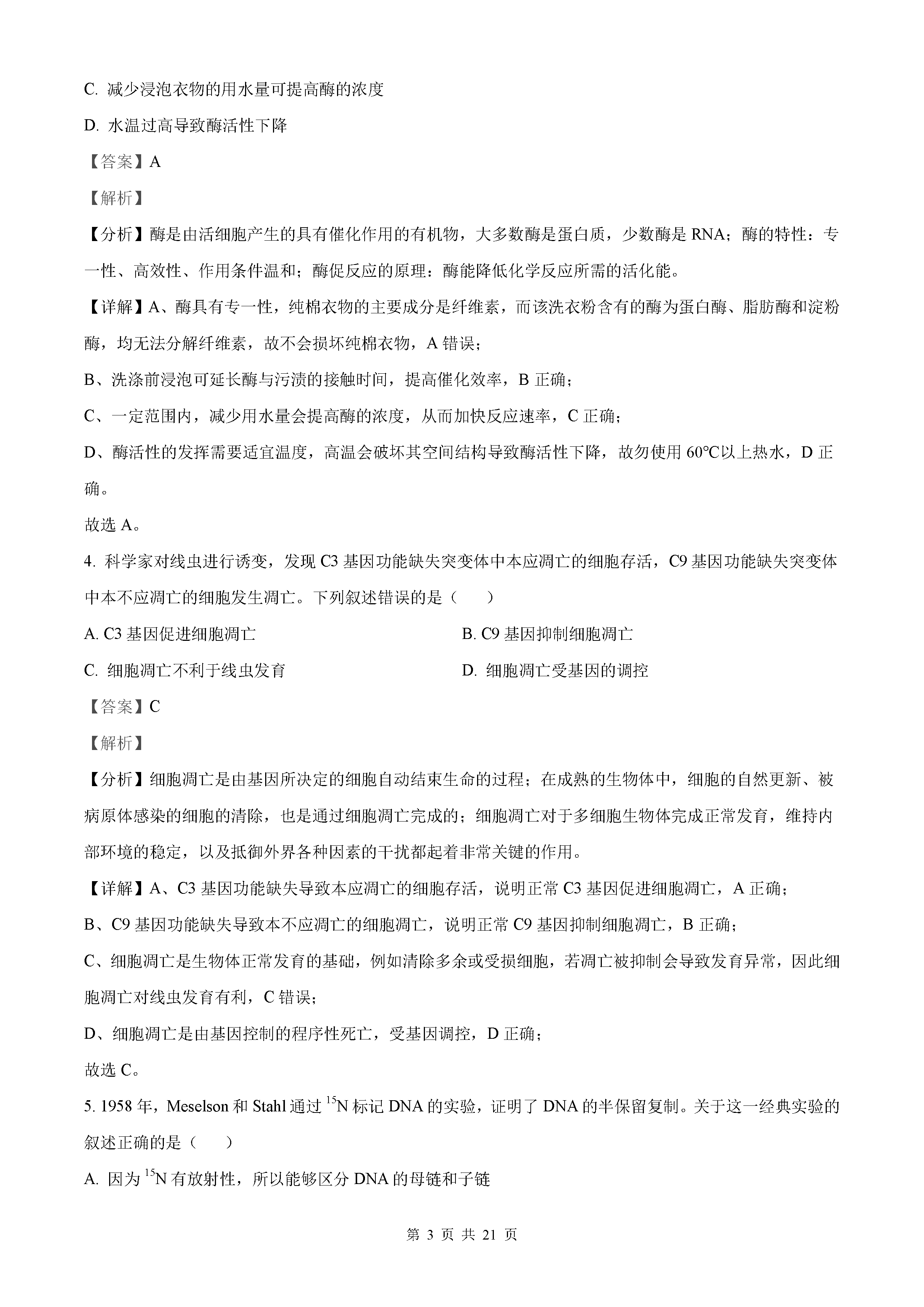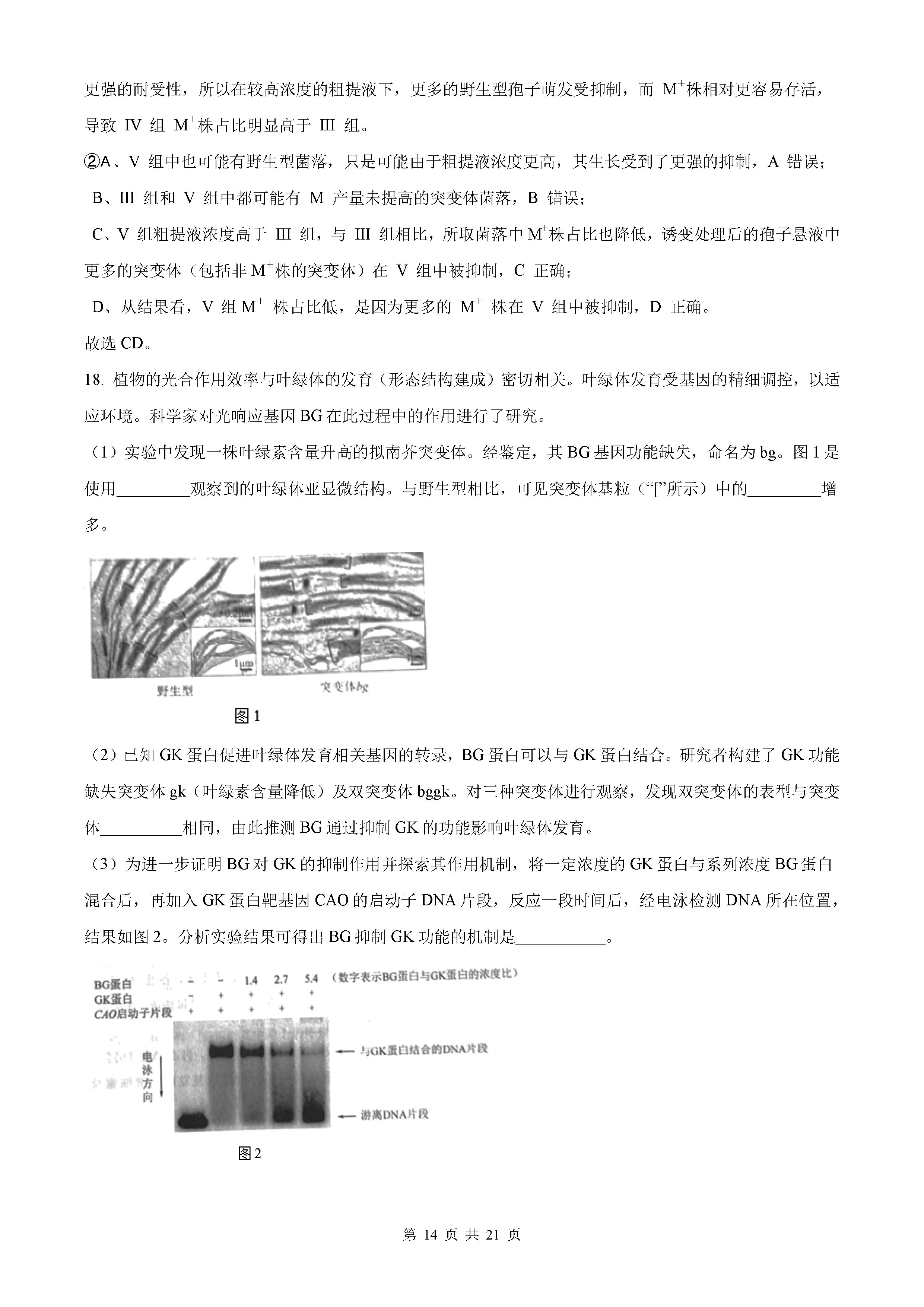 2022年湖南高考生物试卷真题及答案解析(已更新)