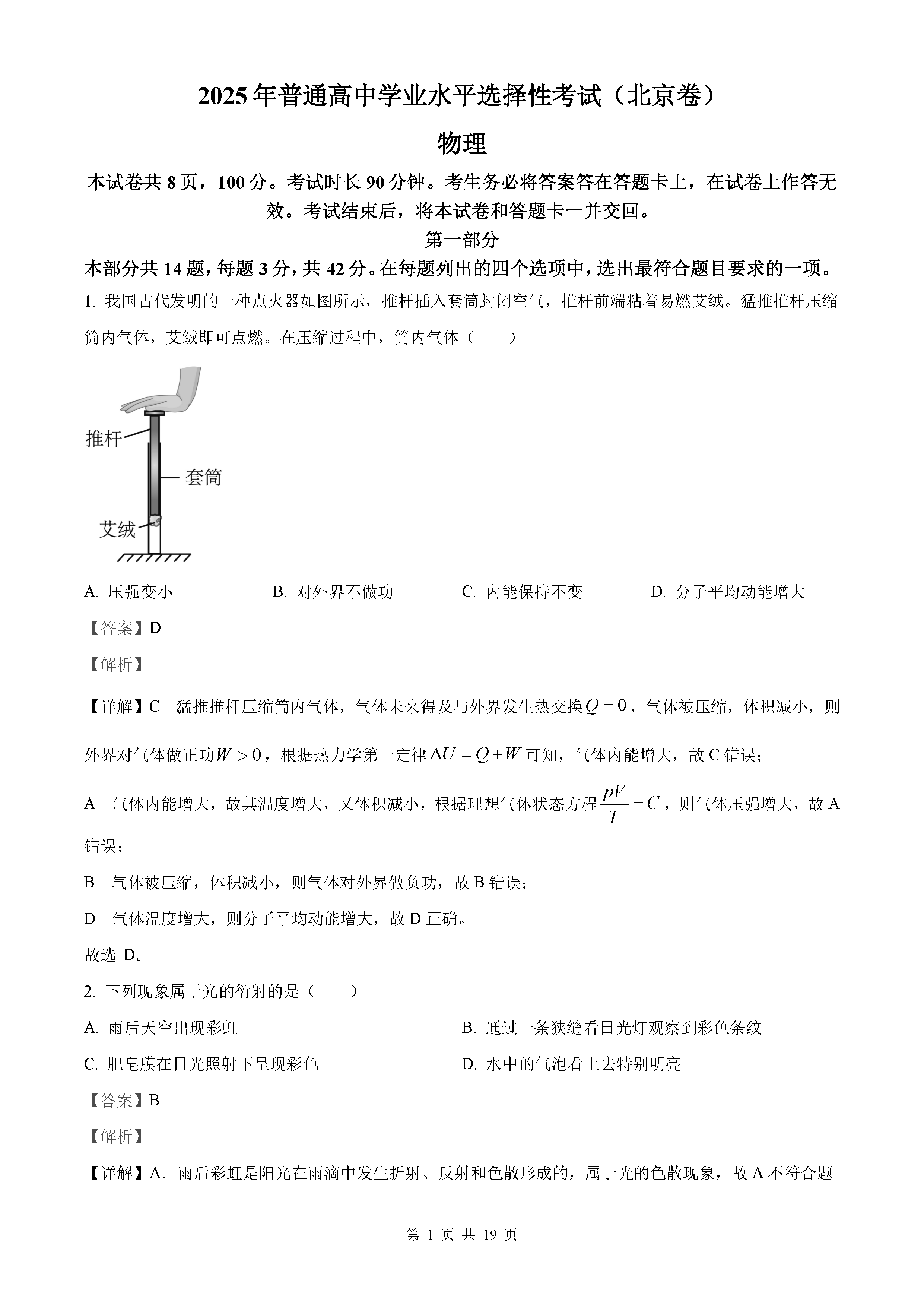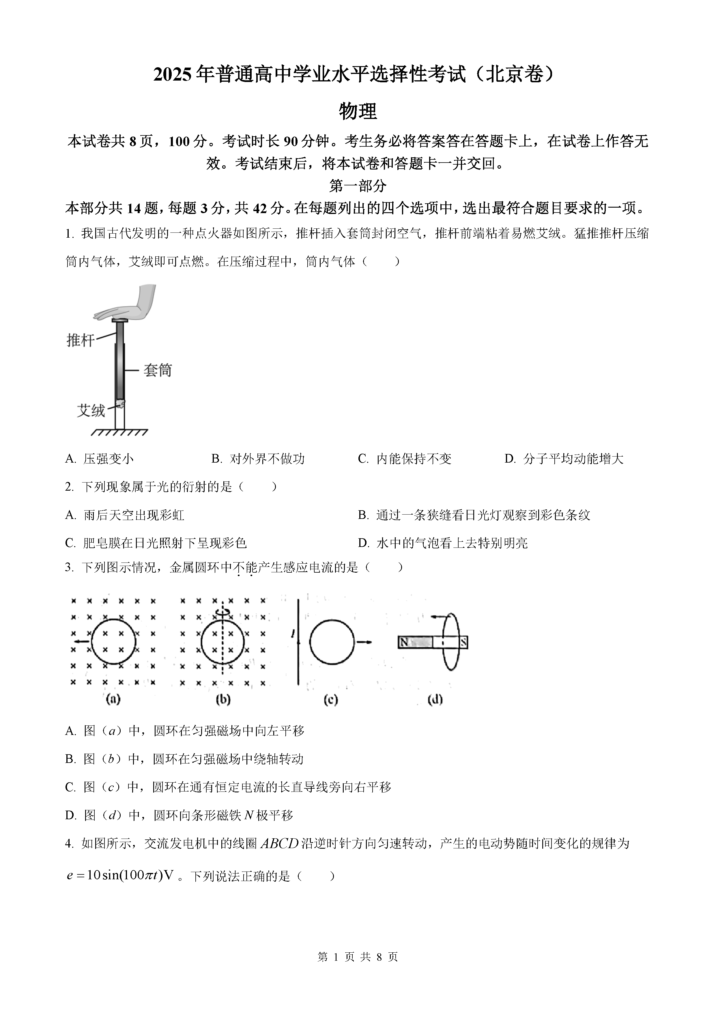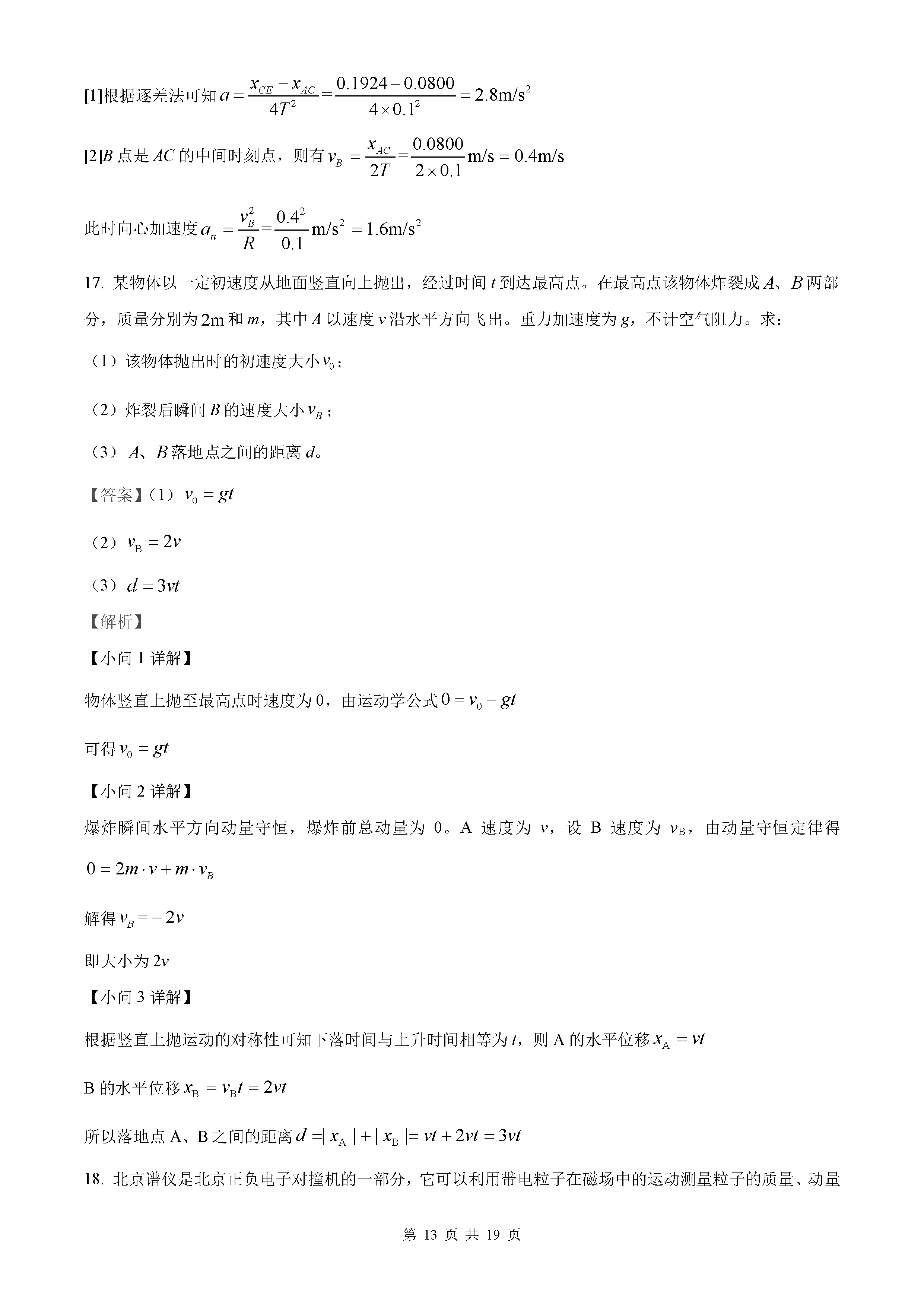 北京市丰台区2024-2025学年高三上学期期末物理试题及答案
