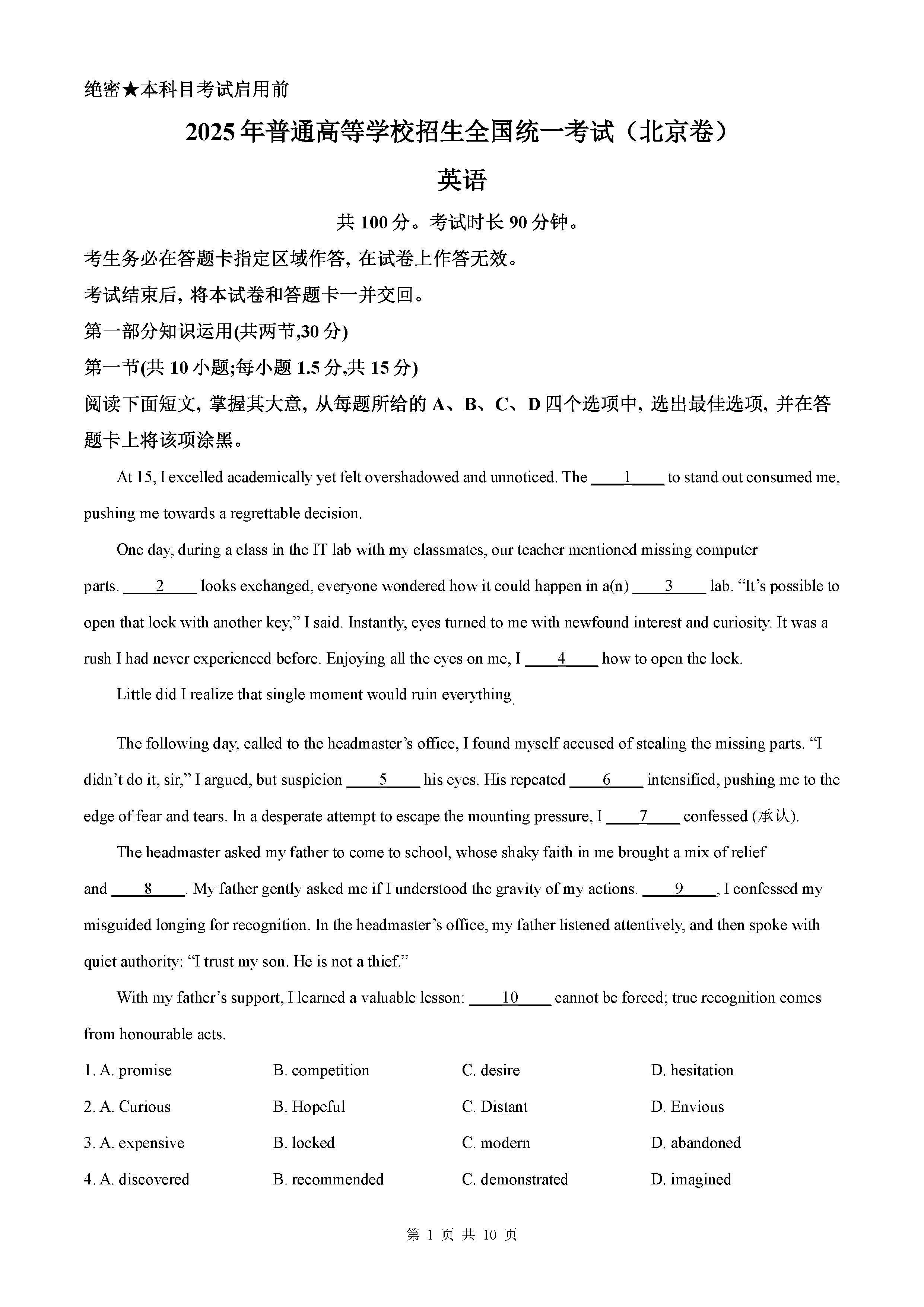 2025年北京高考英语试题及答案解析
