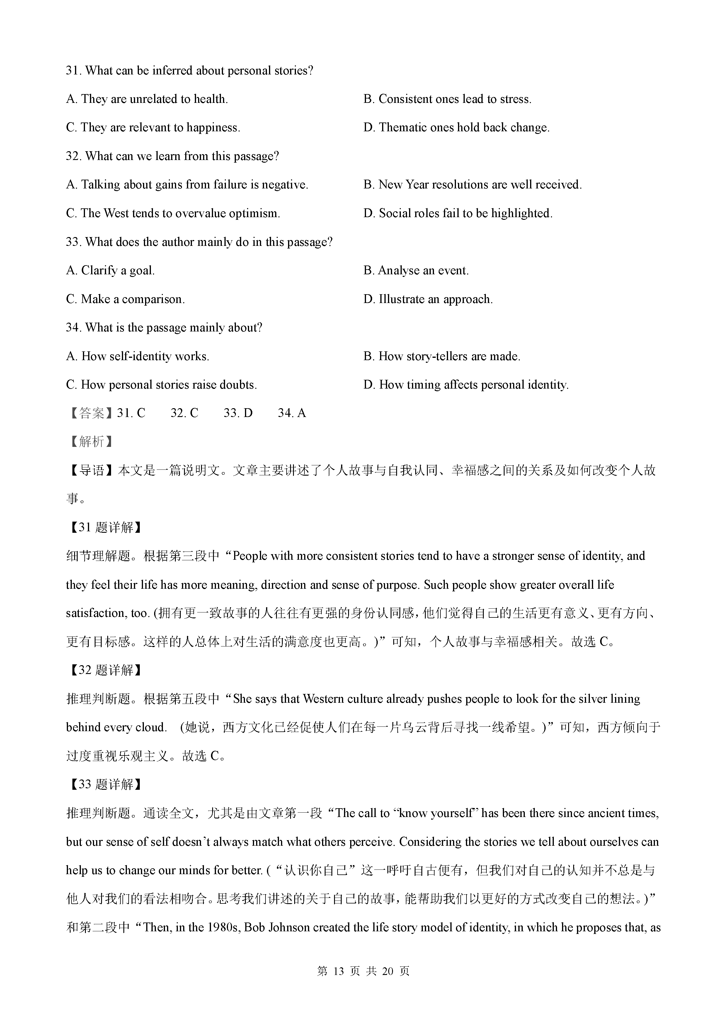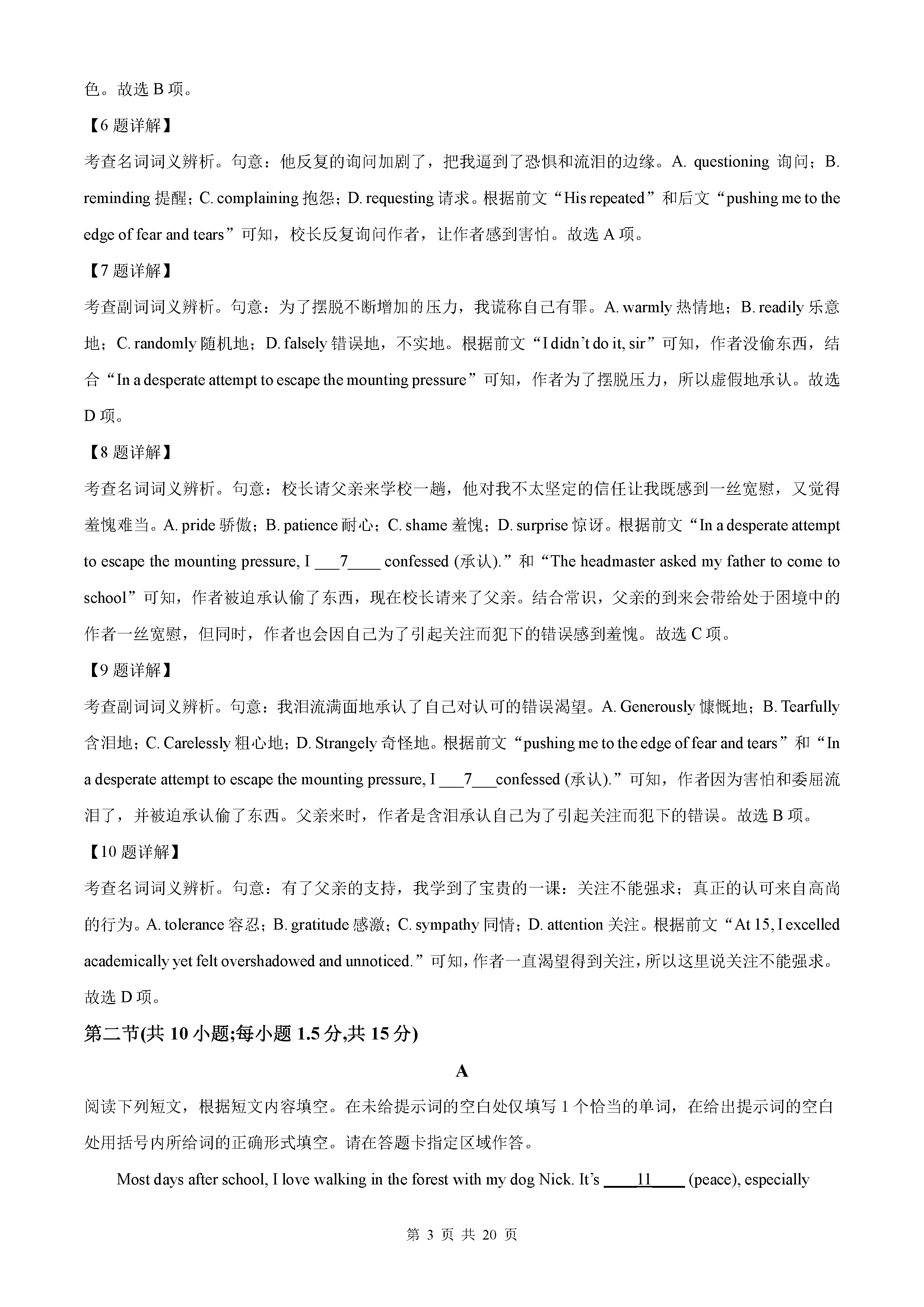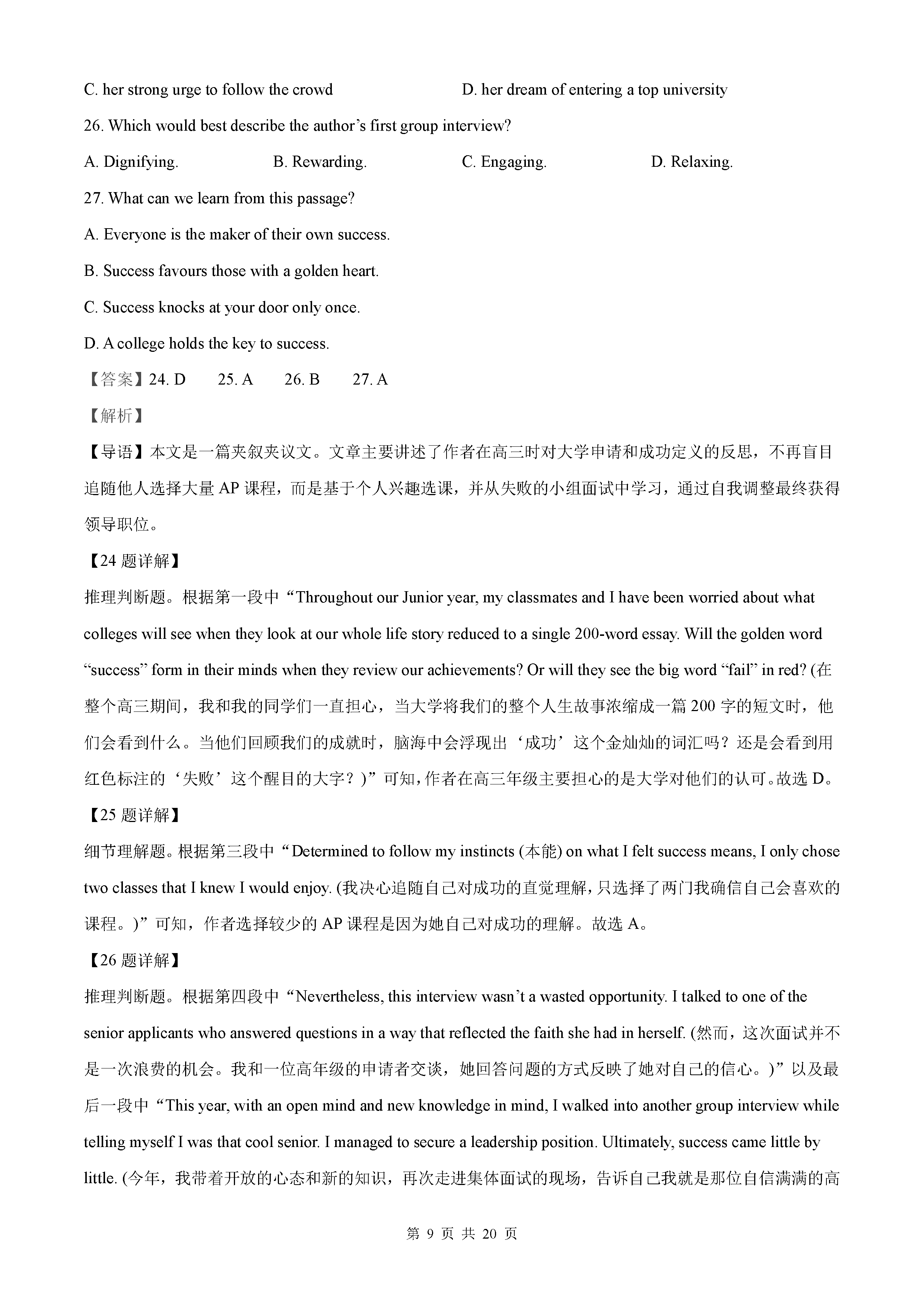 2021年高考全国甲卷英语答案解析
