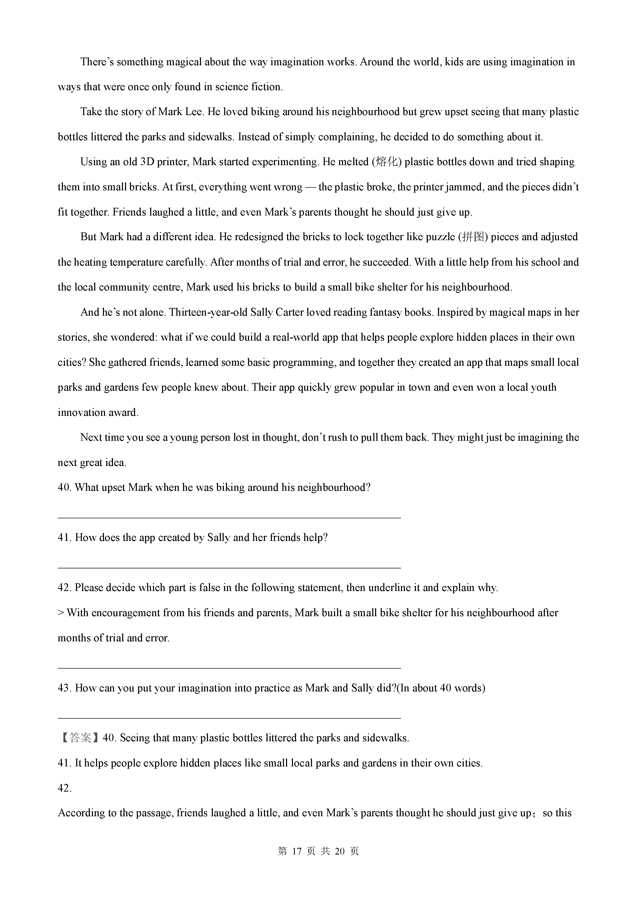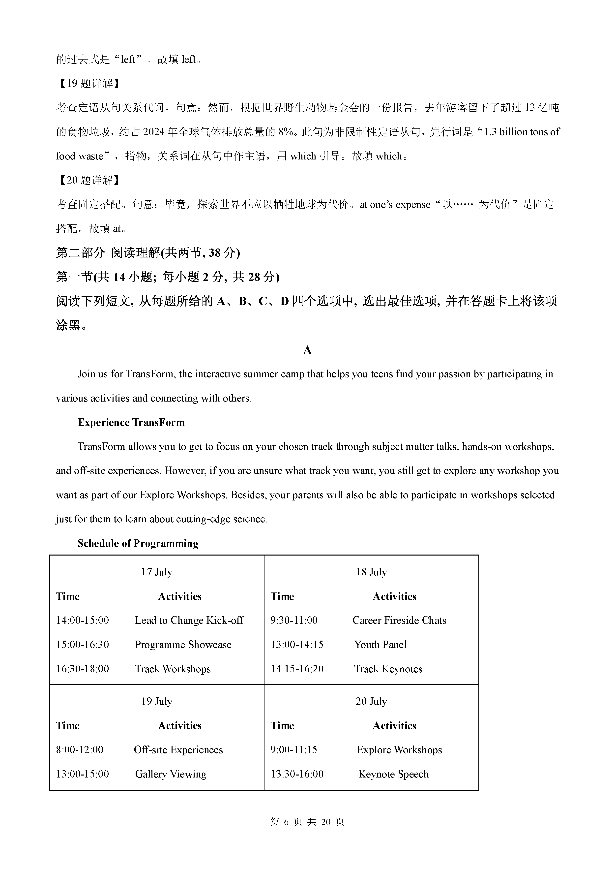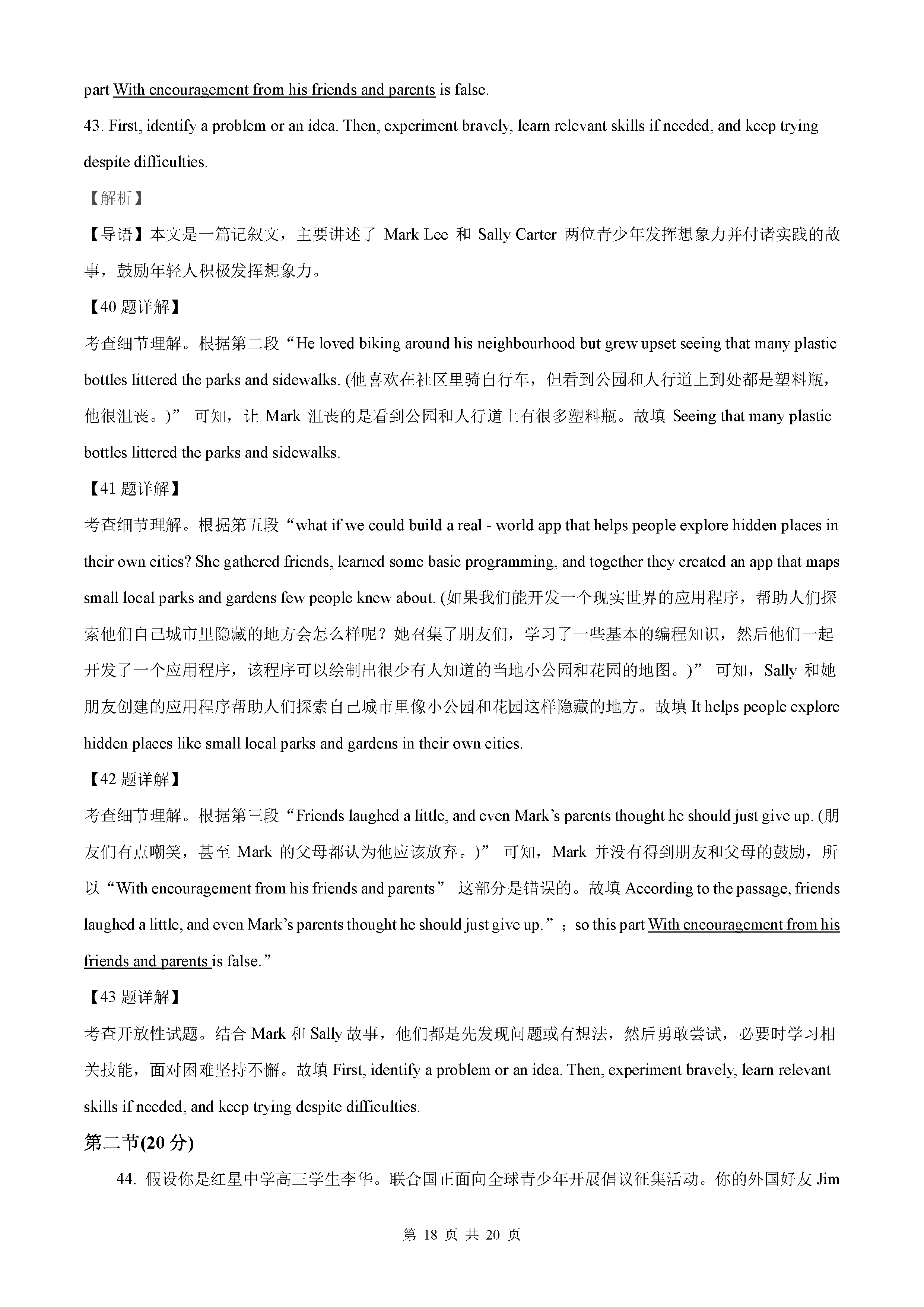 2021年高考全国甲卷英语答案解析