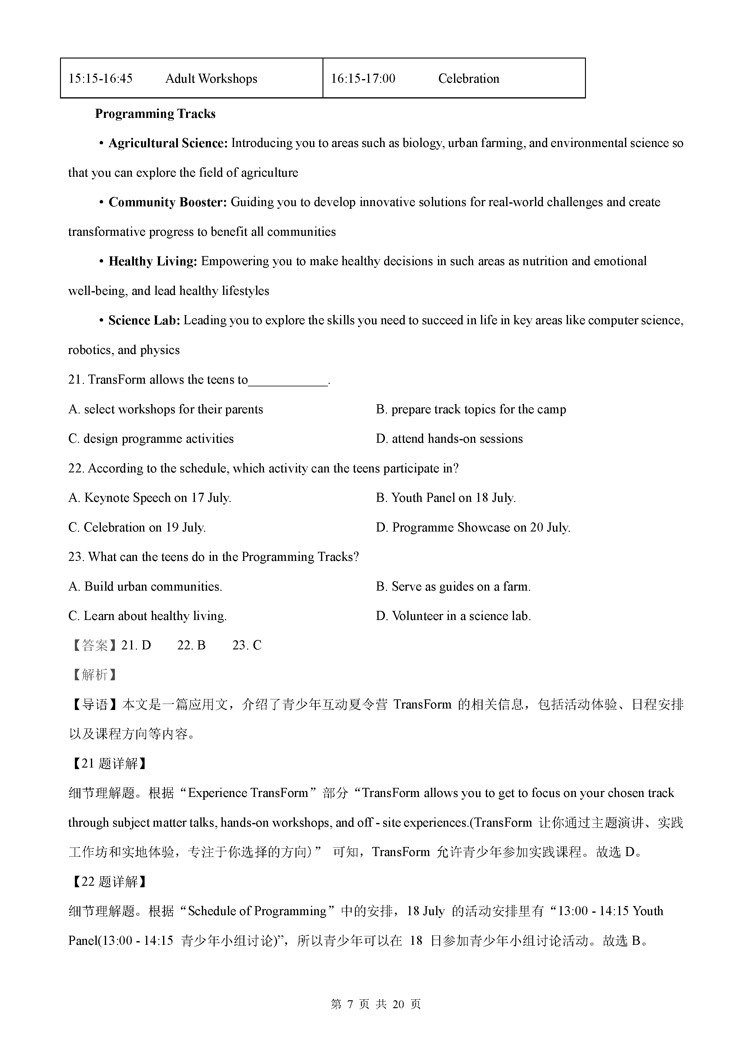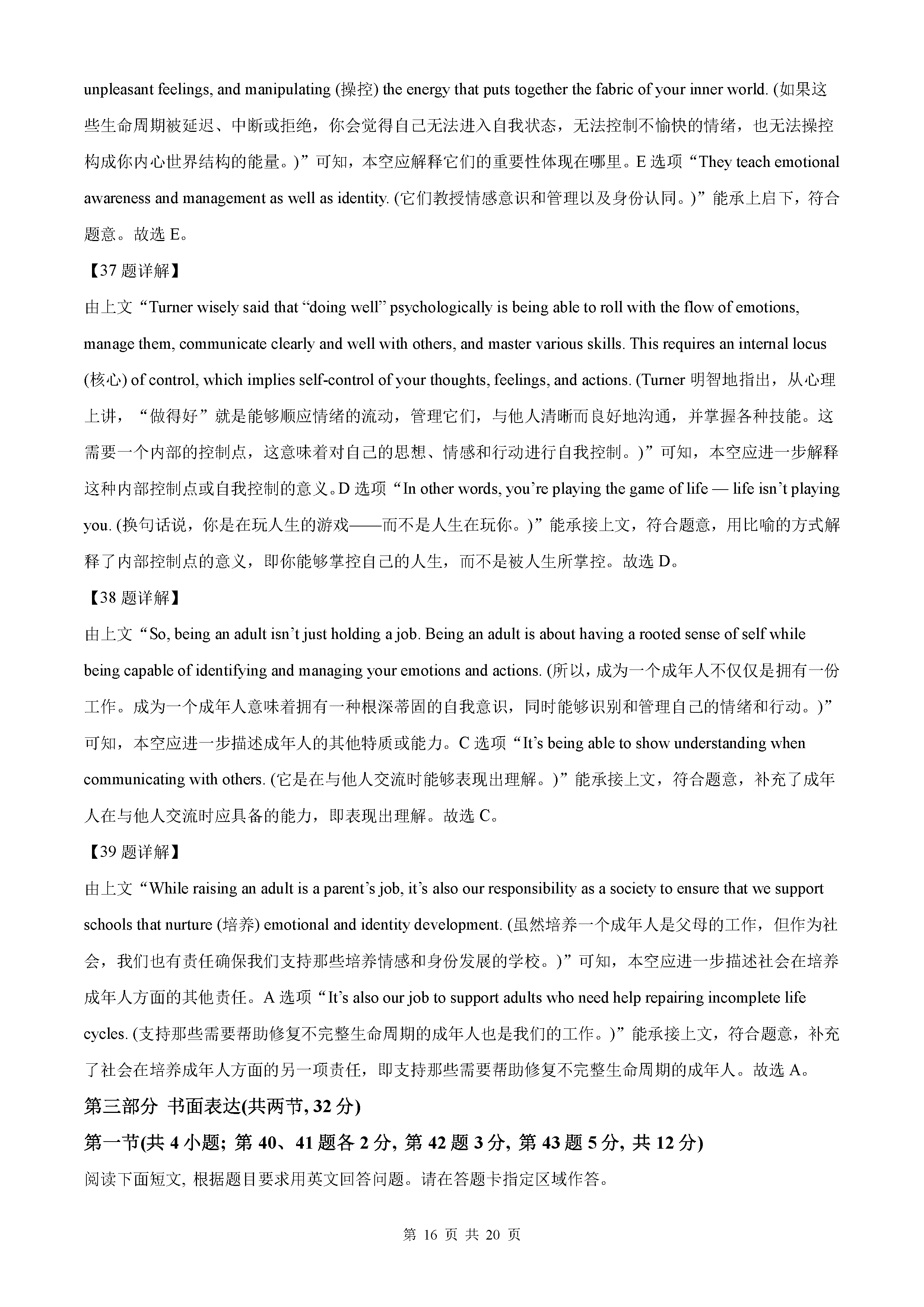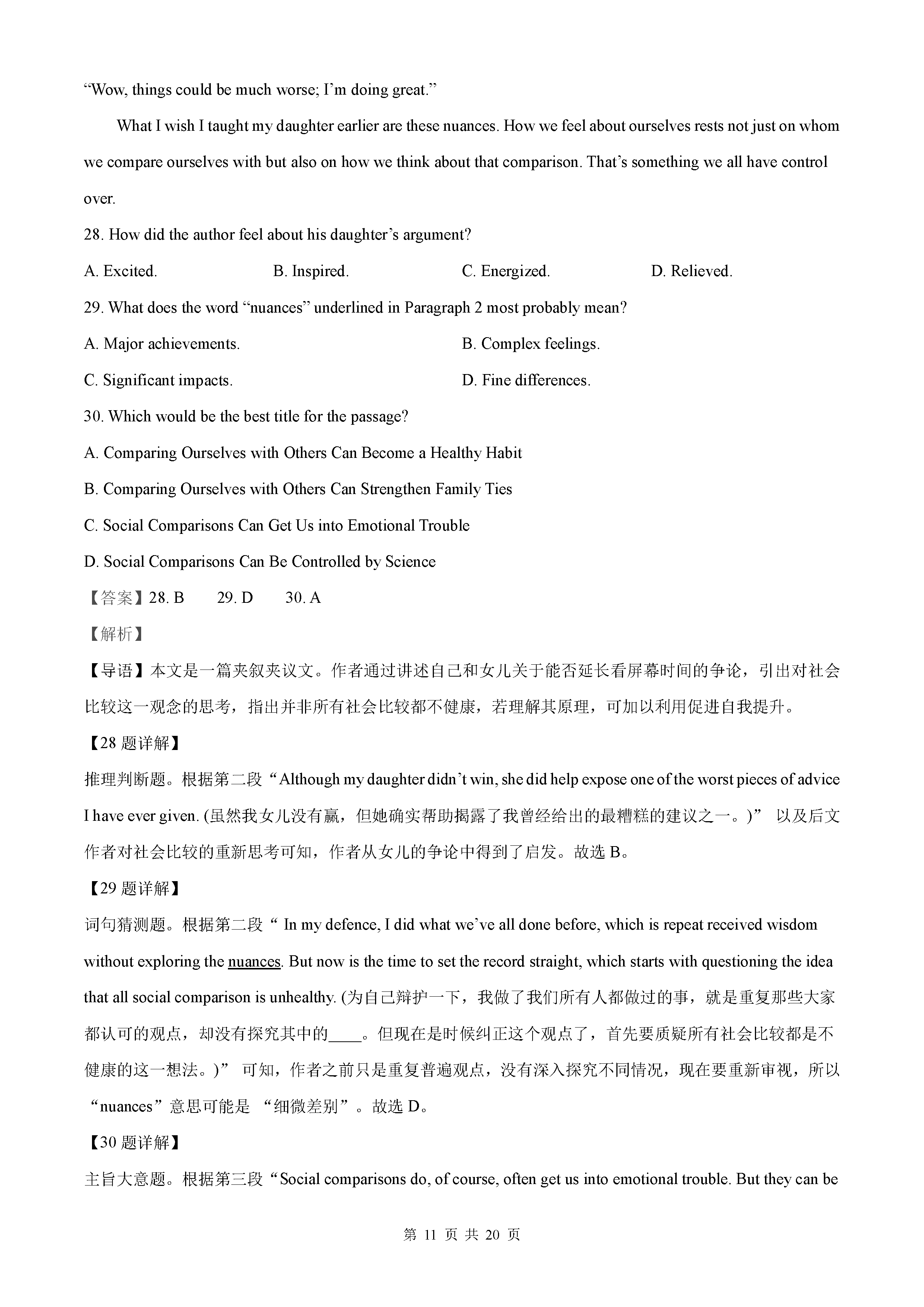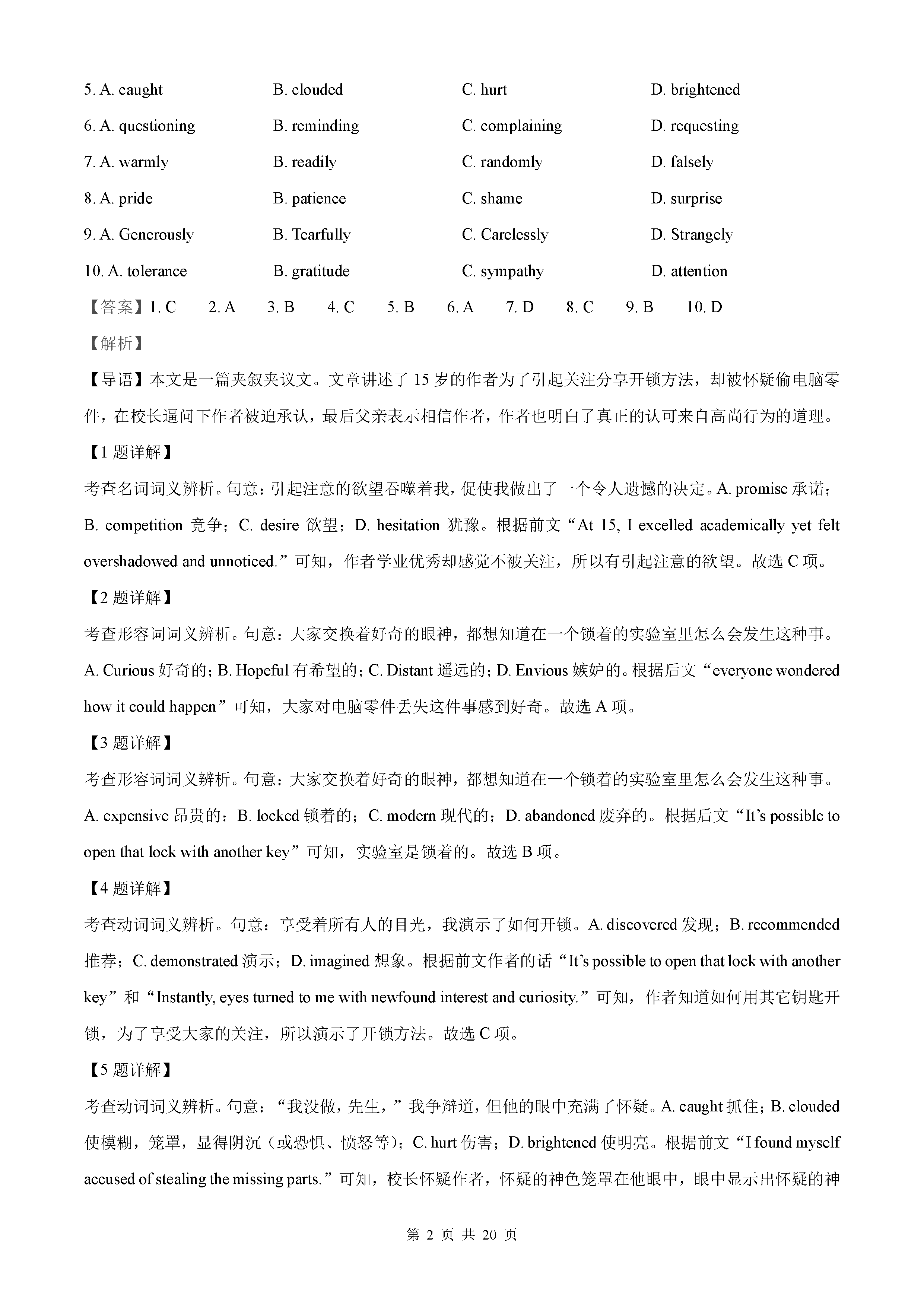 2021年全国乙卷英语真题答案解析