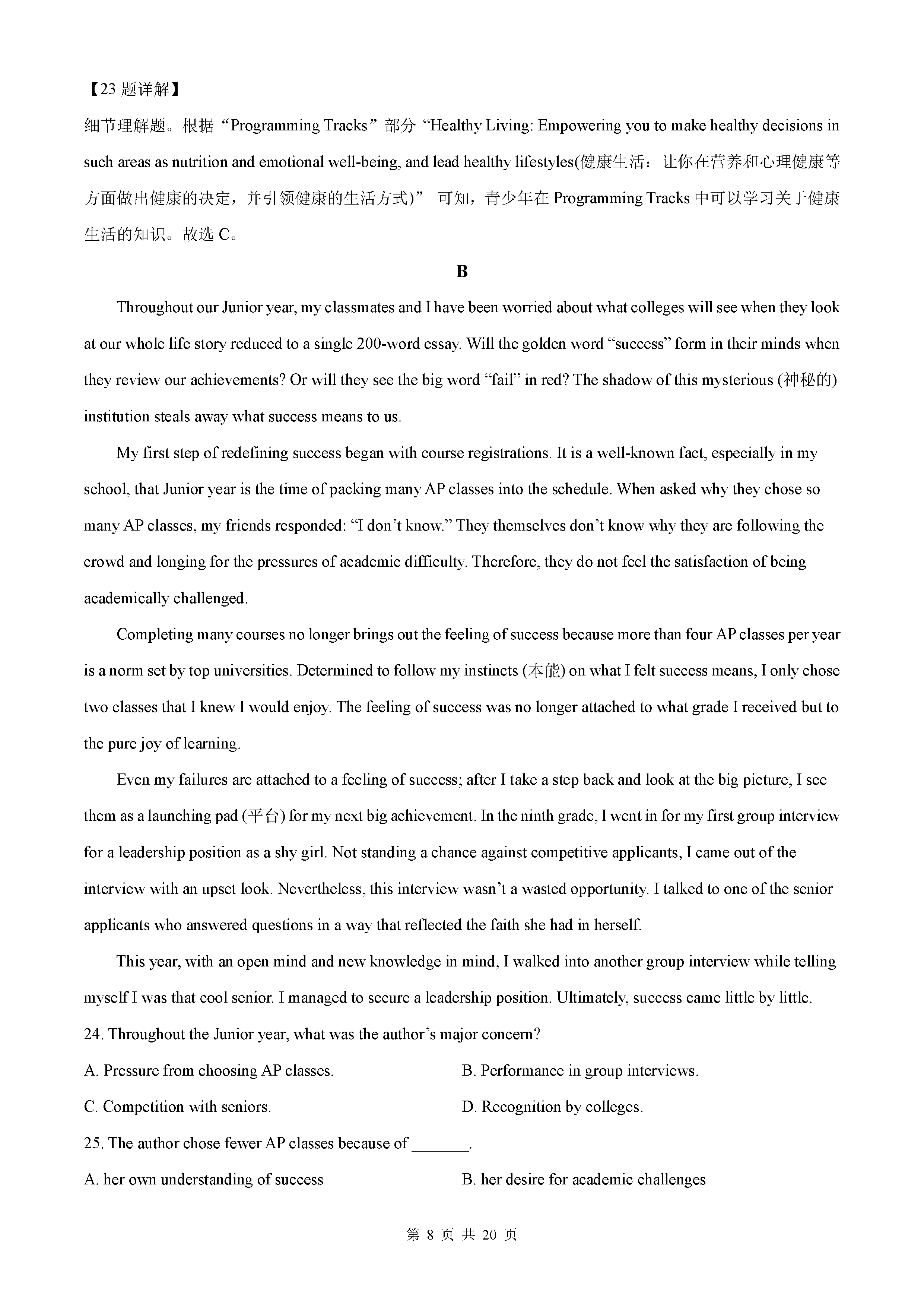 2022年新高考I卷(新高考一卷)英语试卷真题与答案解析