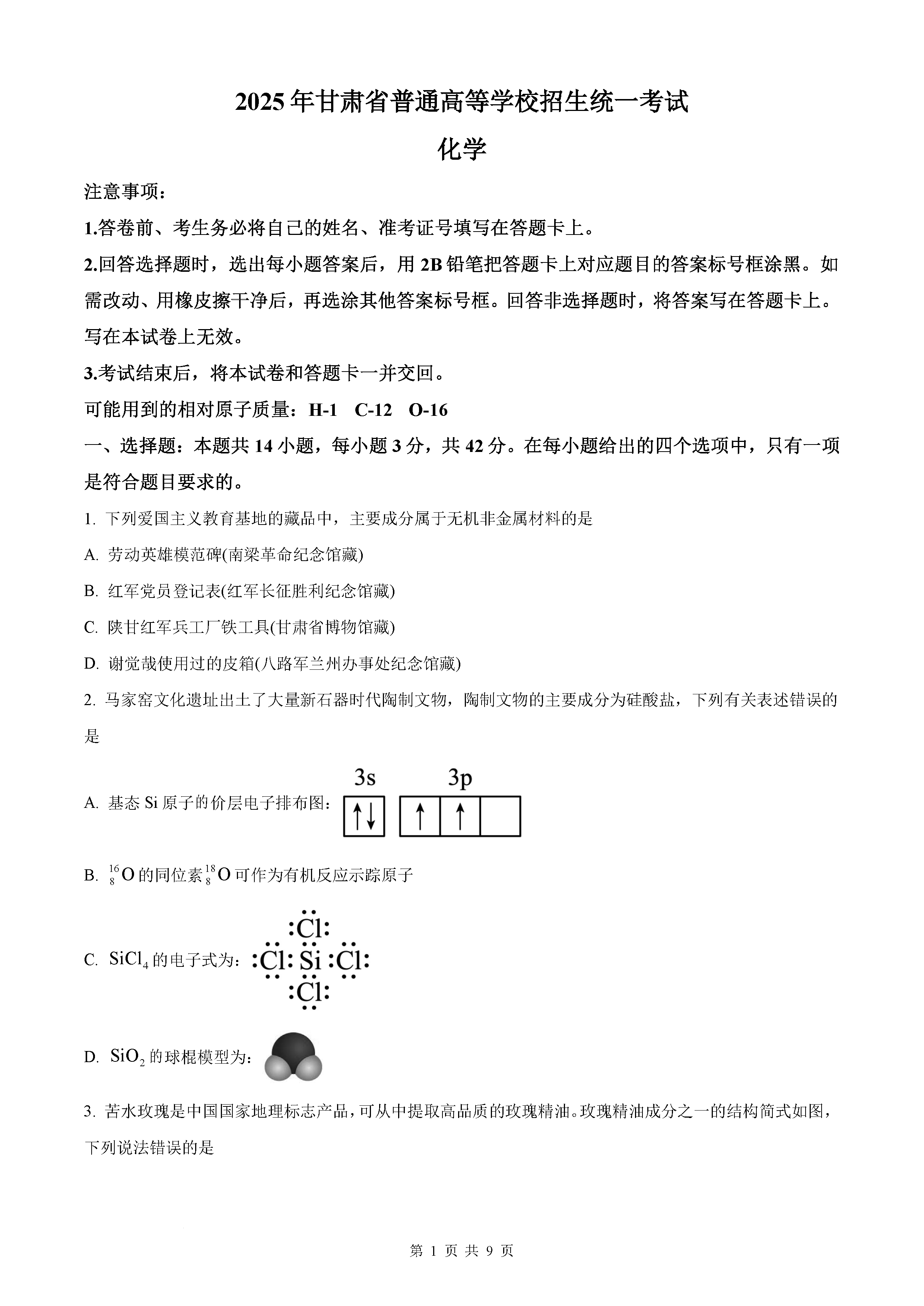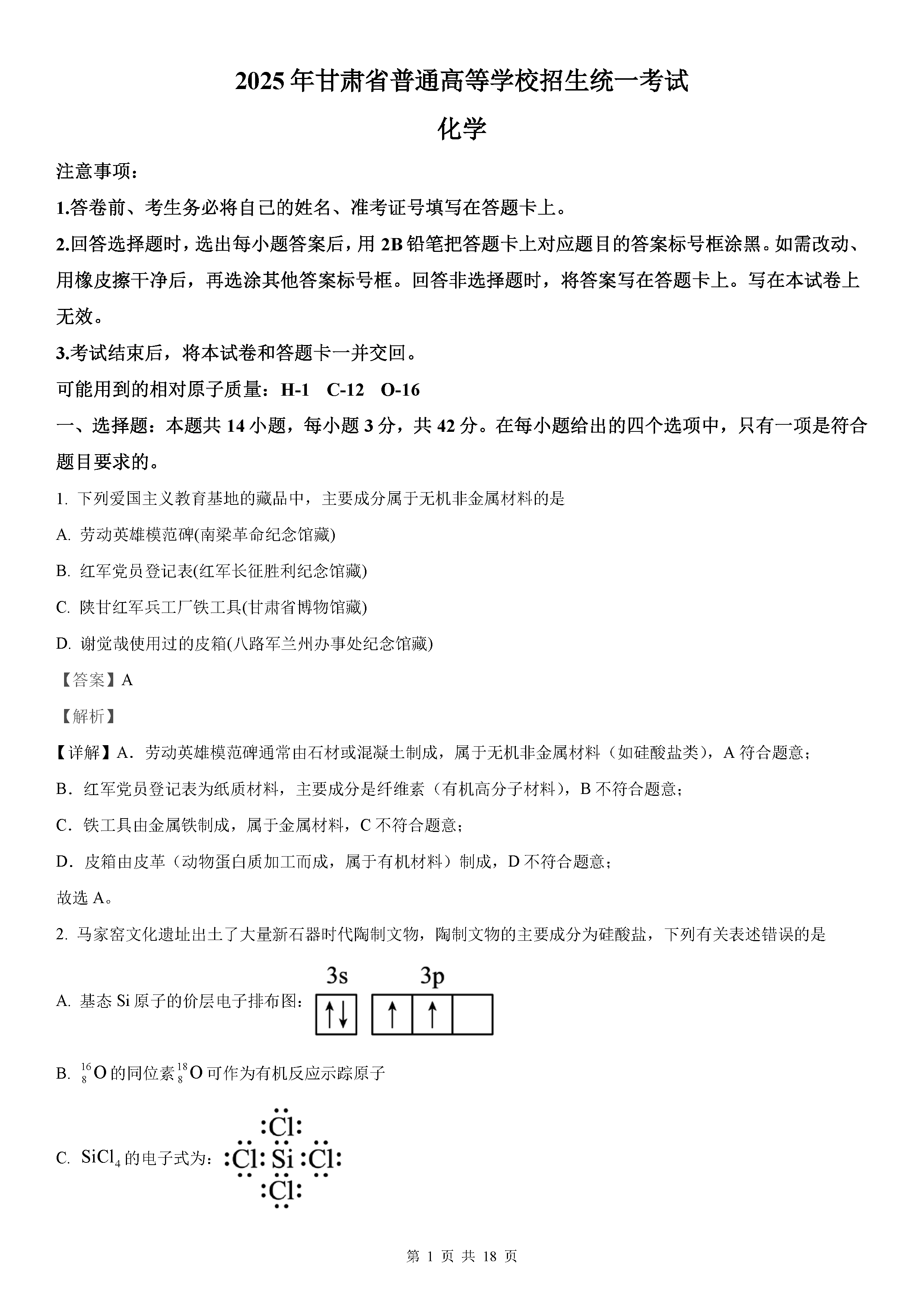 甘肃衡水金卷·先享题·信息卷2025届高三模拟五化学试题及答案