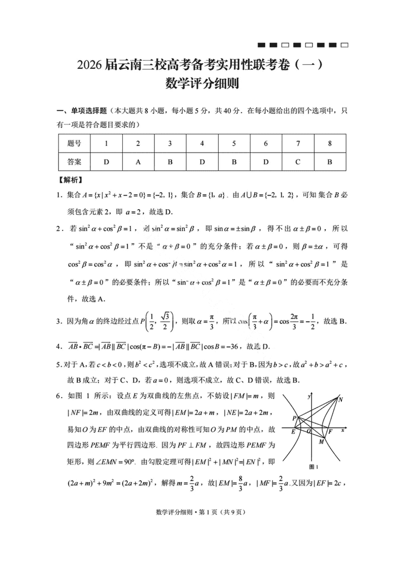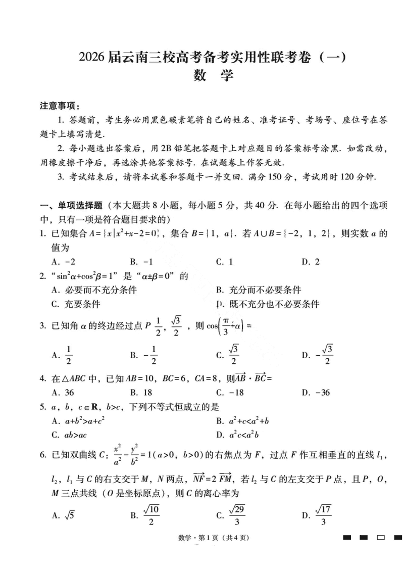 2026届云南三校高考备考实用性联考试卷(一)数学考试已于近日开考,为方便考生考后及时查看考试情况,查漏补缺、弥补不足,本文整理了试题答案解析相关信息!
