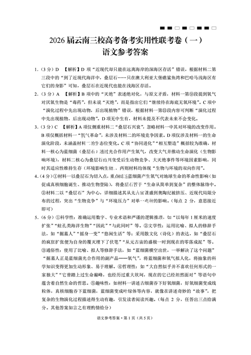2026届云南三校高考备考实用性联考试卷(一)语文考试已于近日开考,为方便考生考后及时查看考试情况,查漏补缺、弥补不足,本文整理了试题答案解析相关信息!