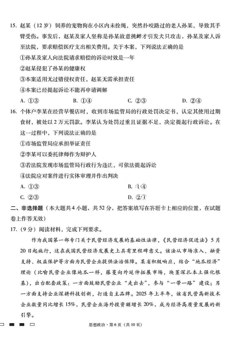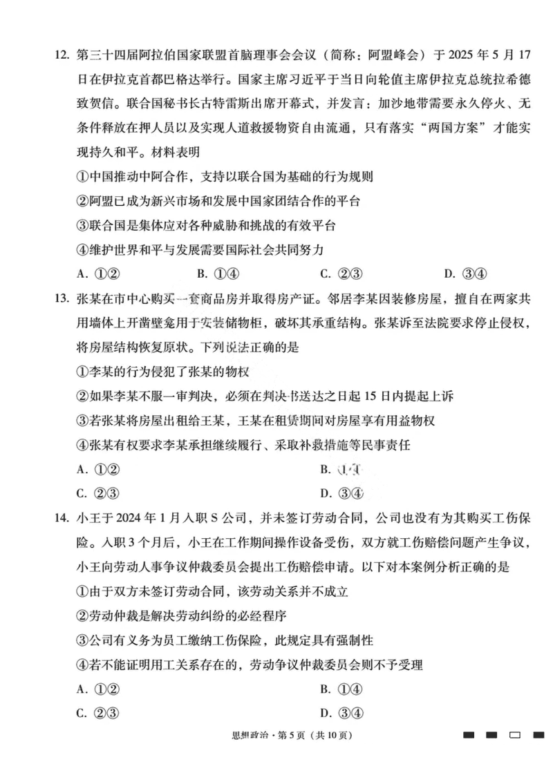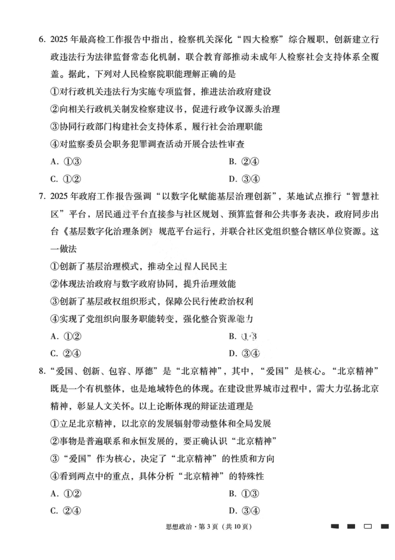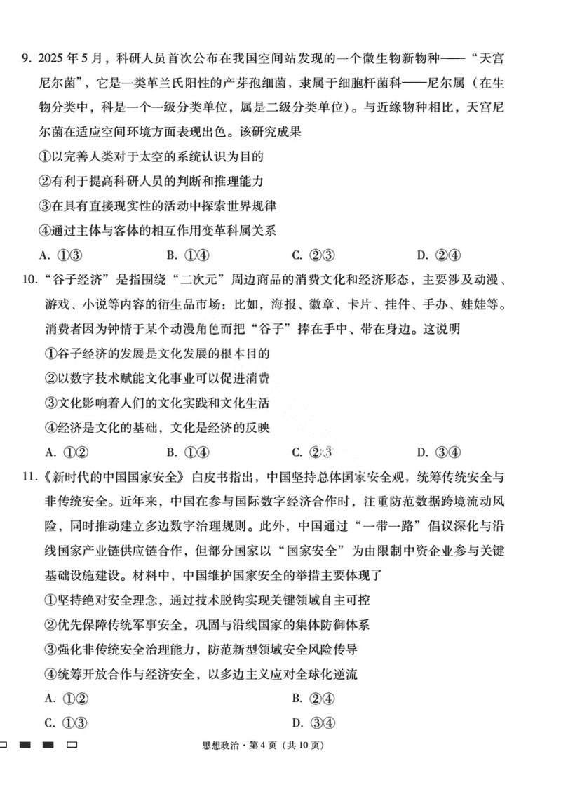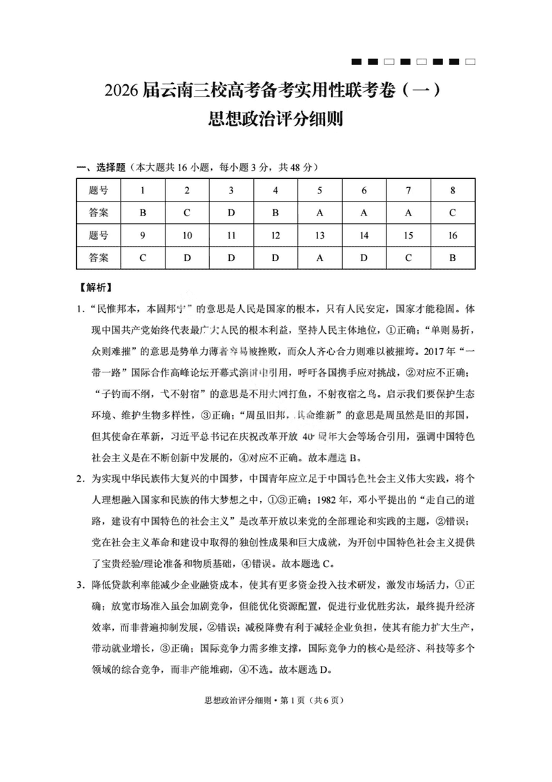 2026届云南三校高考备考实用性联考试卷(一)政治试题及答案