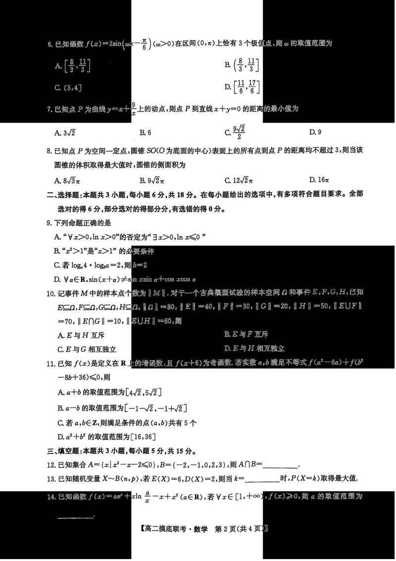 九师联盟2024-2025学年高二下学期6月摸底联考数学试题及答案 时间:2025-06-19 高中数学 九师联盟2024-2025学年高二下学期6月摸底联考数学考试已于近日开考,为方便考生考后及时查看考试情况,查漏补缺、弥补不足,本文整理了试题答案解析相关信息! 数学试题及答案解析