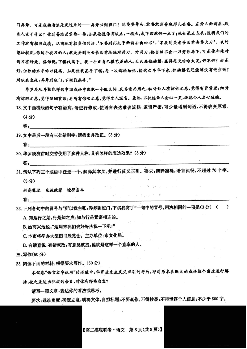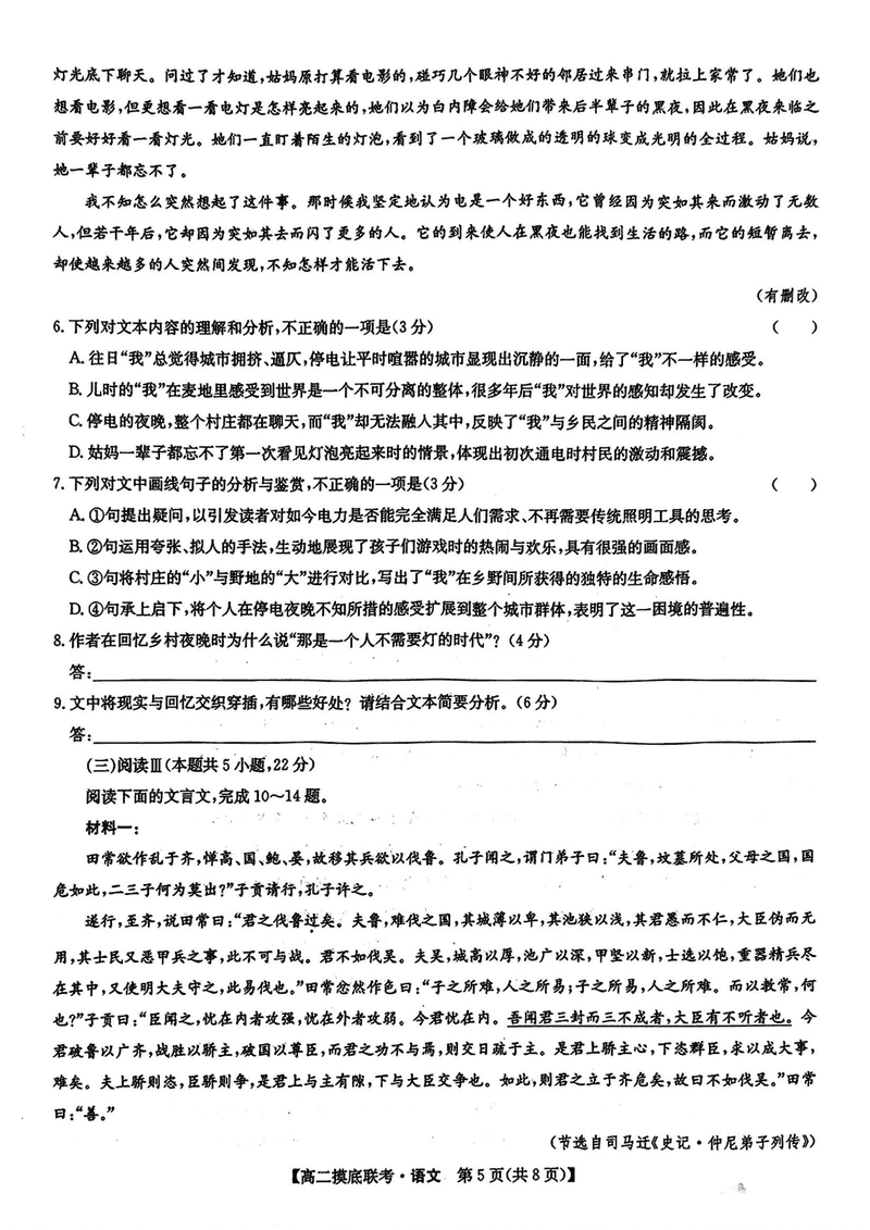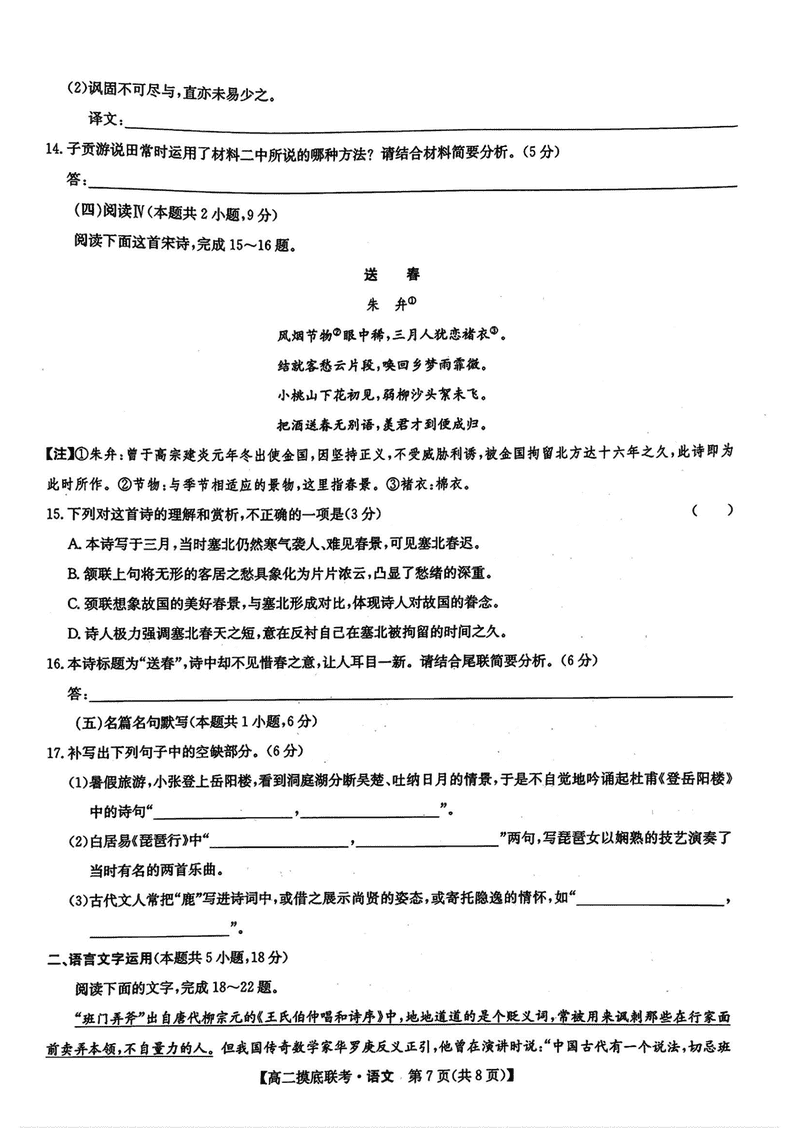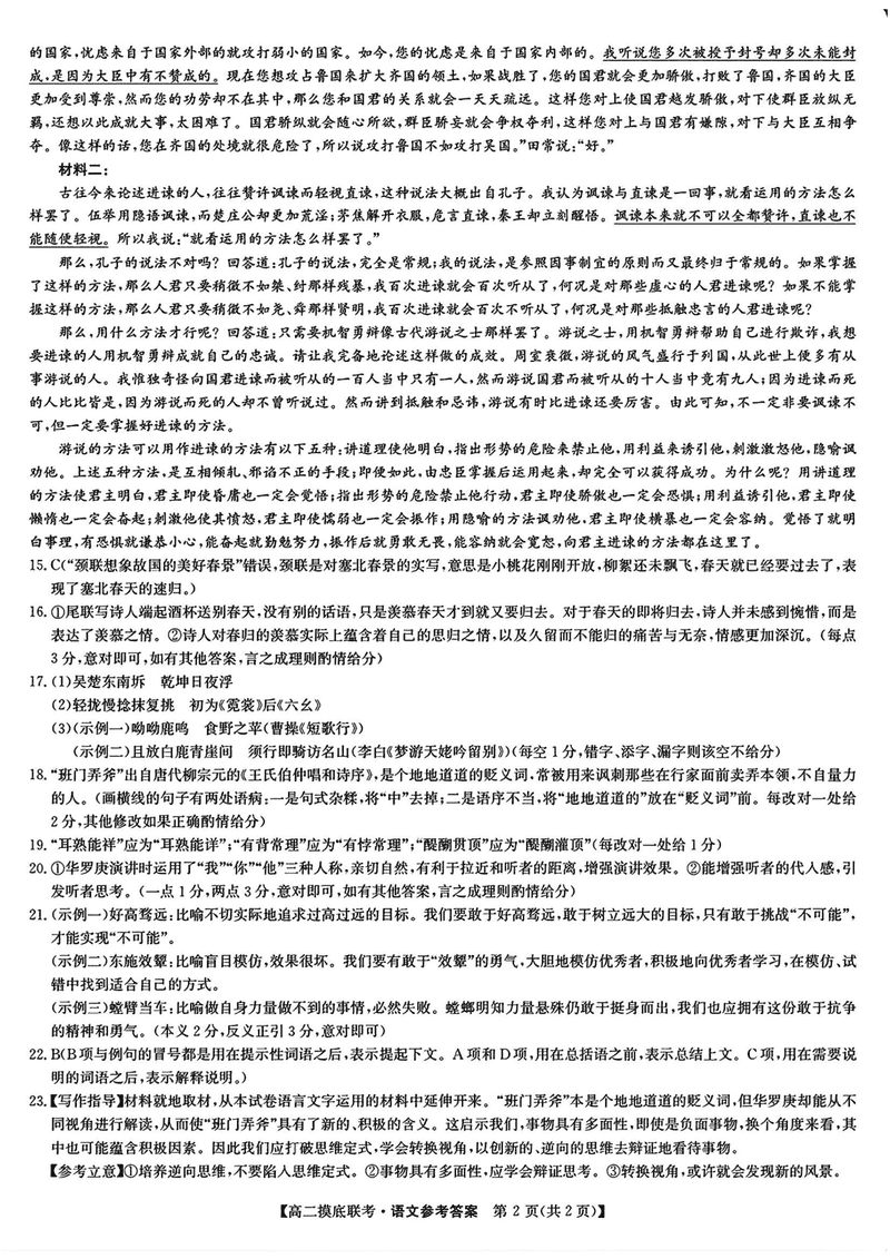 九师联盟2024-2025学年高二下学期6月摸底联考语文试题及答案 时间:2025-06-19 高中语文 九师联盟2024-2025学年高二下学期6月摸底联考语文考试已于近日开考,为方便考生考后及时查看考试情况,查漏补缺、弥补不足,本文整理了试题答案解析相关信息! 语文试题及答案解析