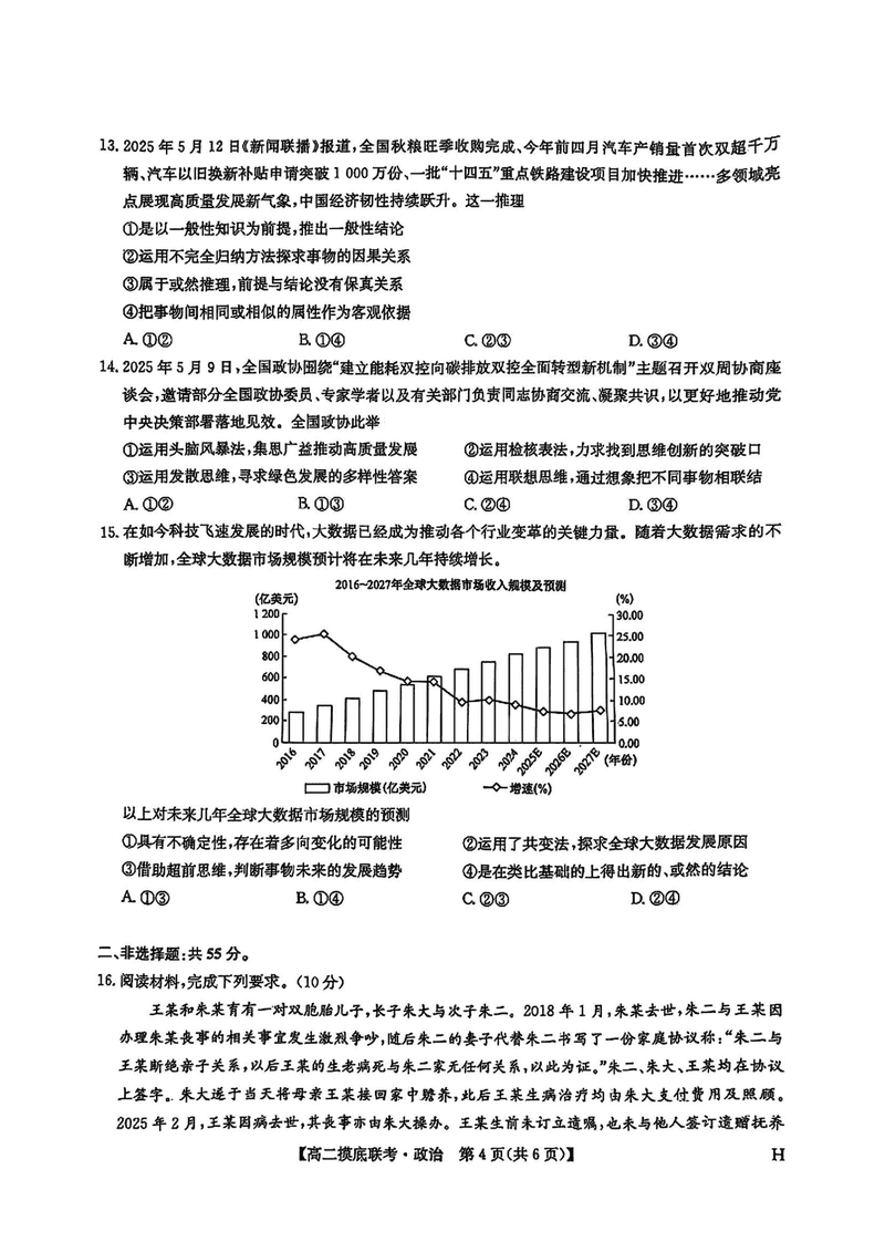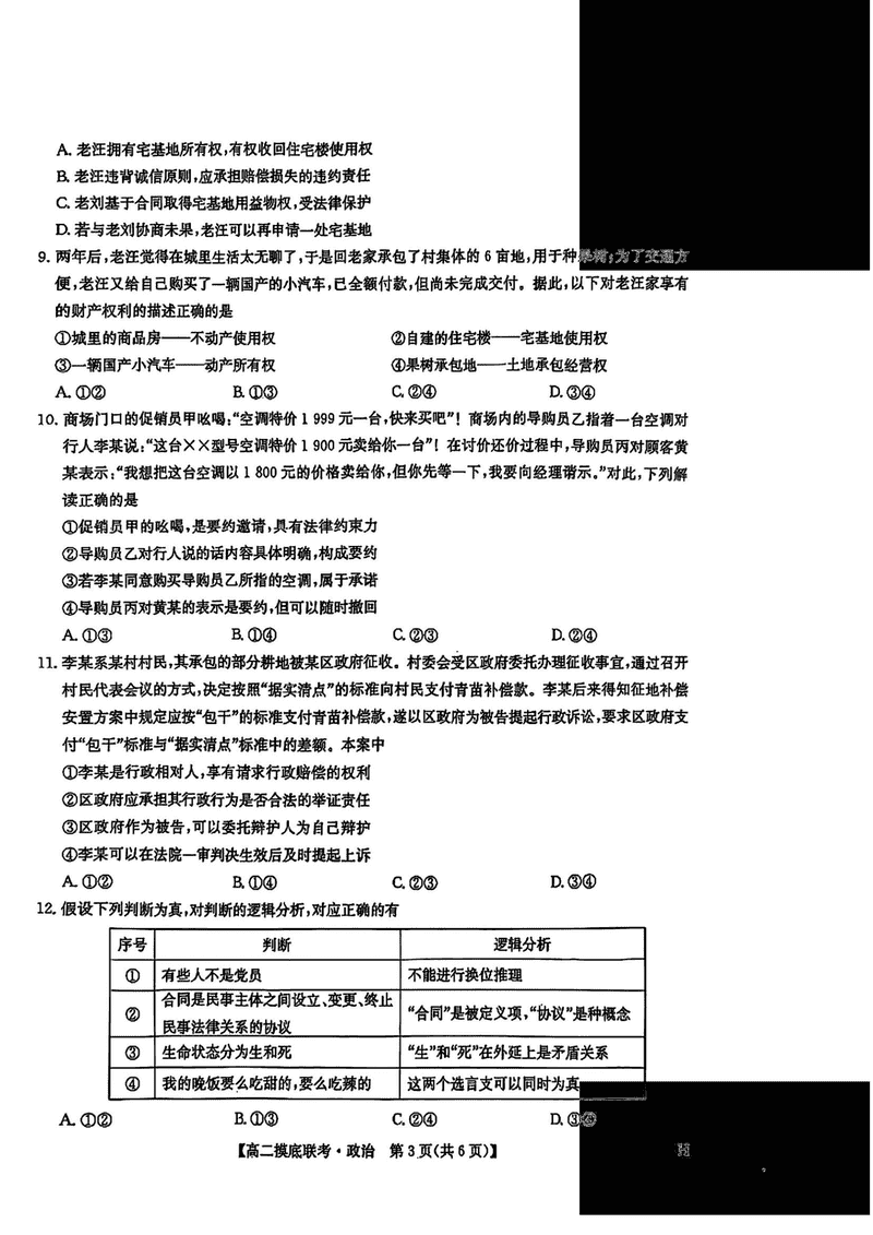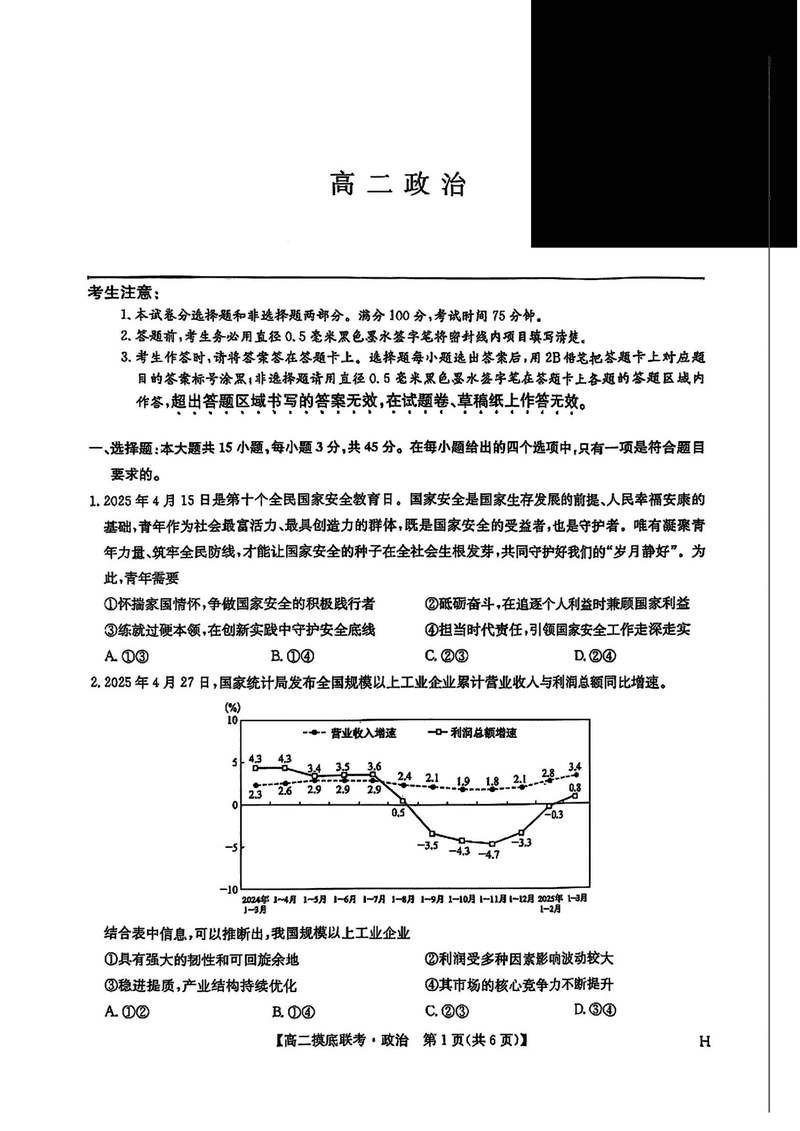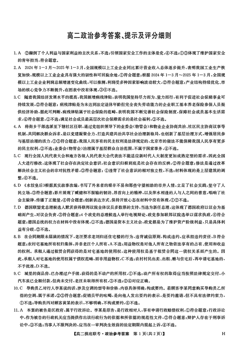 九师联盟2024-2025学年高二下学期6月摸底联考政治试题及答案 时间:2025-06-19 高中政治 九师联盟2024-2025学年高二下学期6月摸底联考政治考试已于近日开考,为方便考生考后及时查看考试情况,查漏补缺、弥补不足,本文整理了试题答案解析相关信息! 政治试题及答案解析