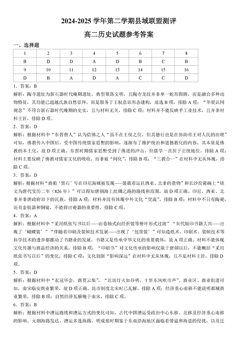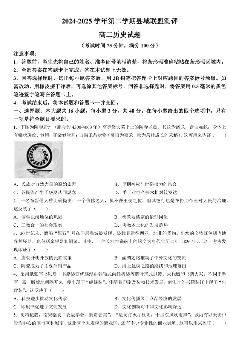 山西省县域联盟2024-2025学年高二下学期5月月考历史试题及答案 时间:2025-06-19 山西 高中历史 山西省县域联盟2024-2025学年高二下学期5月月考历史考试已于近日开考,为方便考生考后及时查看考试情况,查漏补缺、弥补不足,本文整理了试题答案解析相关信息! 历史试题及答案解析