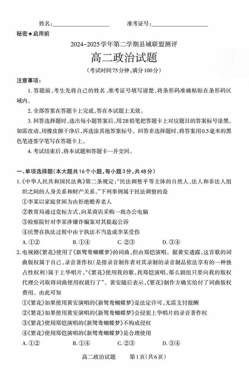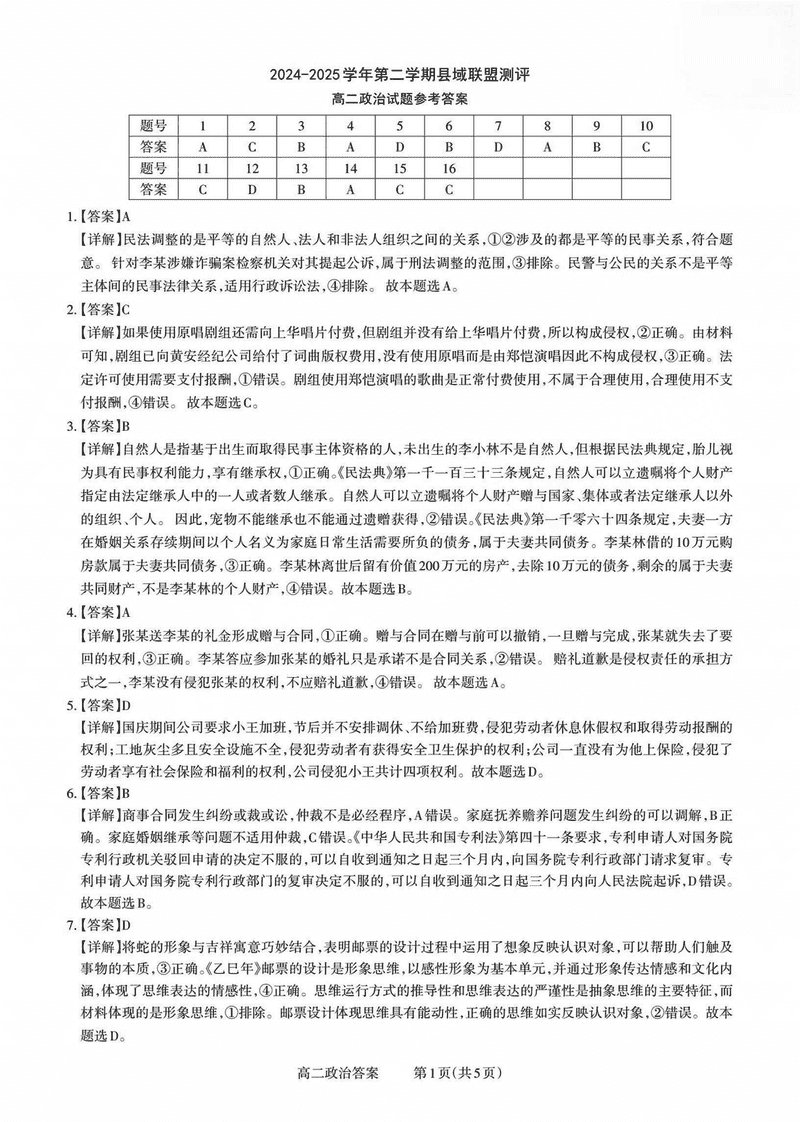 山西省县域联盟2024-2025学年高二下学期5月月考政治试题及答案 时间:2025-06-19 山西 高中政治 山西省县域联盟2024-2025学年高二下学期5月月考政治考试已于近日开考,为方便考生考后及时查看考试情况,查漏补缺、弥补不足,本文整理了试题答案解析相关信息! 政治试题及答案解析