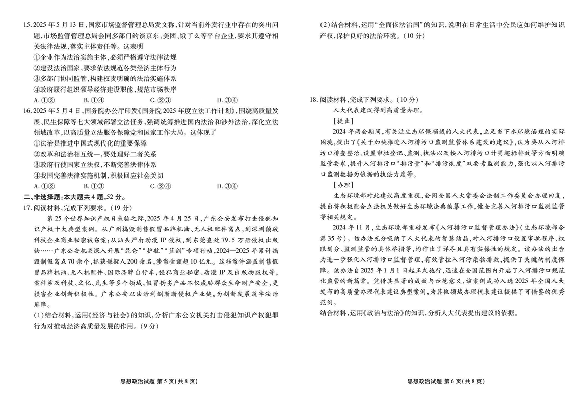 广东省衡水金卷2024-2025学年高一下学期6月联考政治试题及答案 时间:2025-06-19 广东 高中政治 广东省衡水金卷2024-2025学年高一下学期6月联考政治考试已于近日开考,为方便考生考后及时查看考试情况,查漏补缺、弥补不足,本文整理了试题答案解析相关信息! 政治试题及答案解析