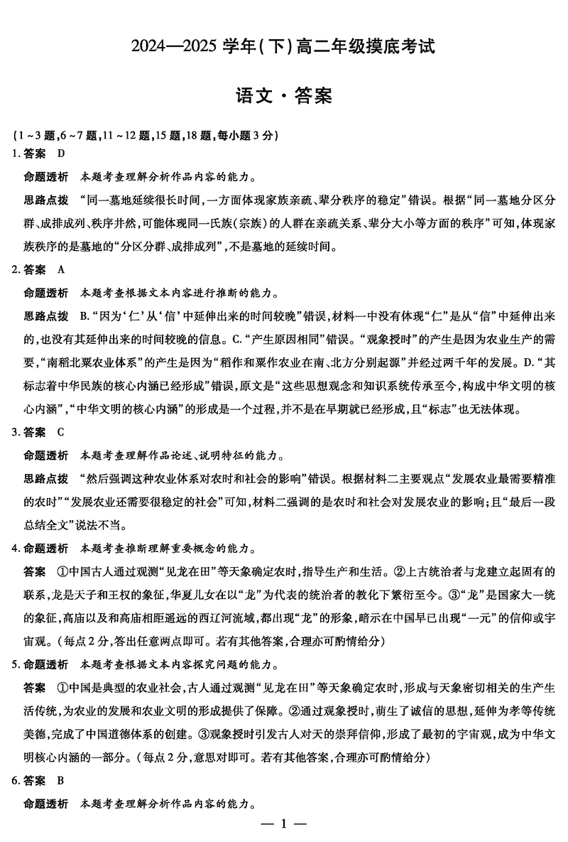 安徽天一大联考2024-2025学年高二下学期6月摸底语文试题及答案 时间:2025-06-22 安徽 高中语文 安徽省天一大联考2024-2025学年高二下学期6月摸底语文考试已于近日开考,为方便考生考后及时查看考试情况,查漏补缺、弥补不足,本文整理了试题答案解析相关信息! 语文试题及答案解析