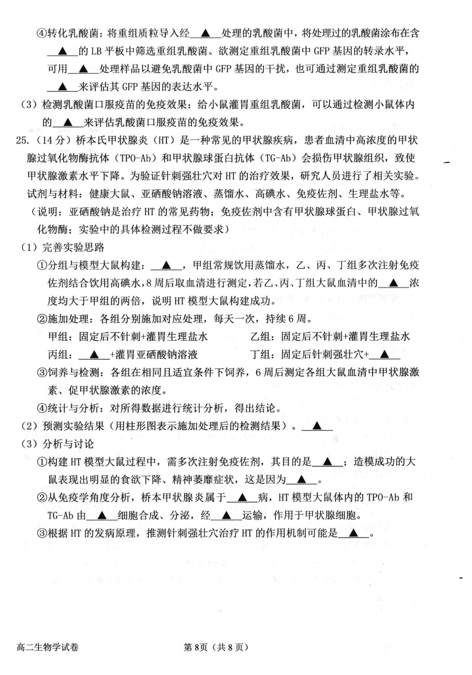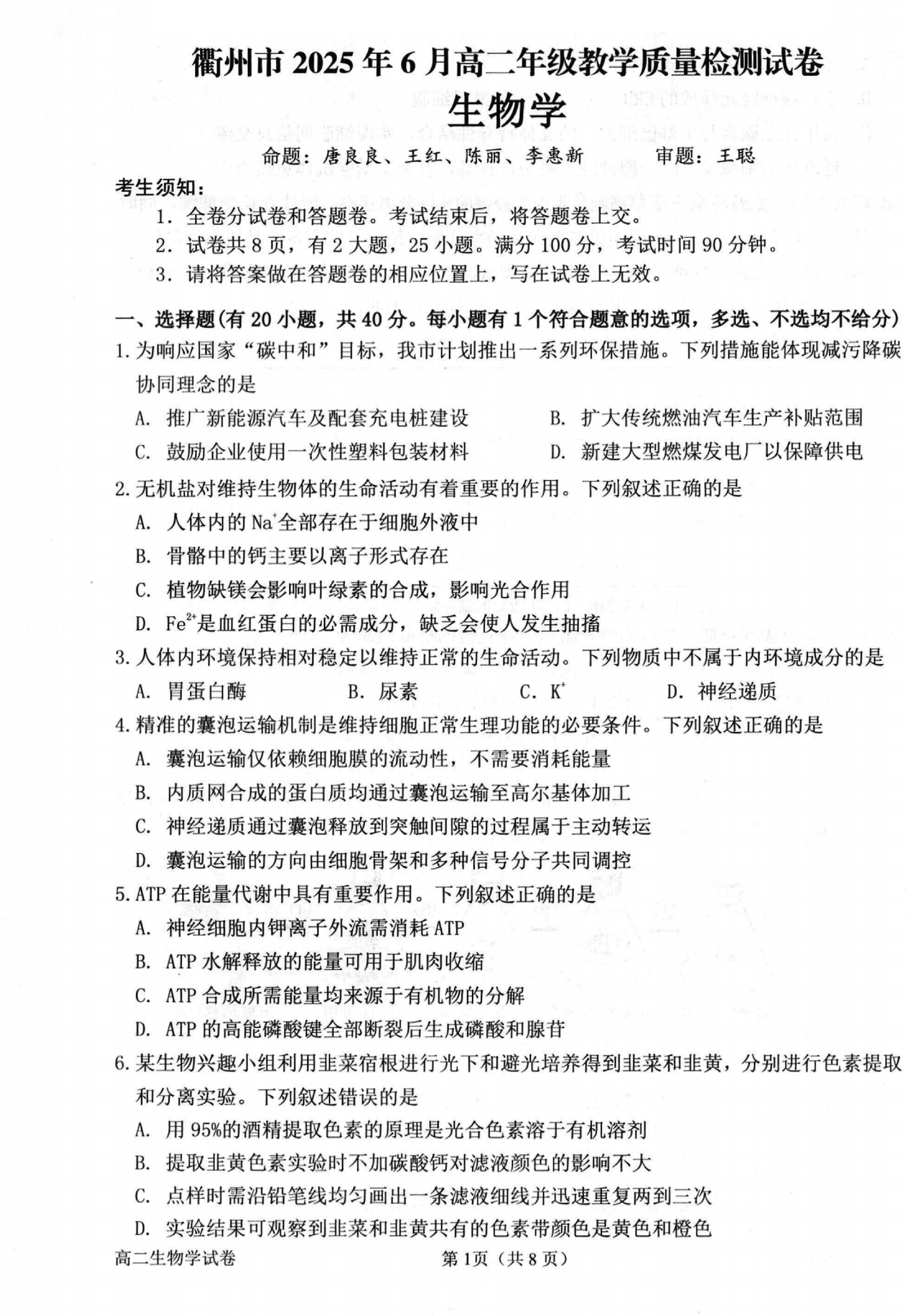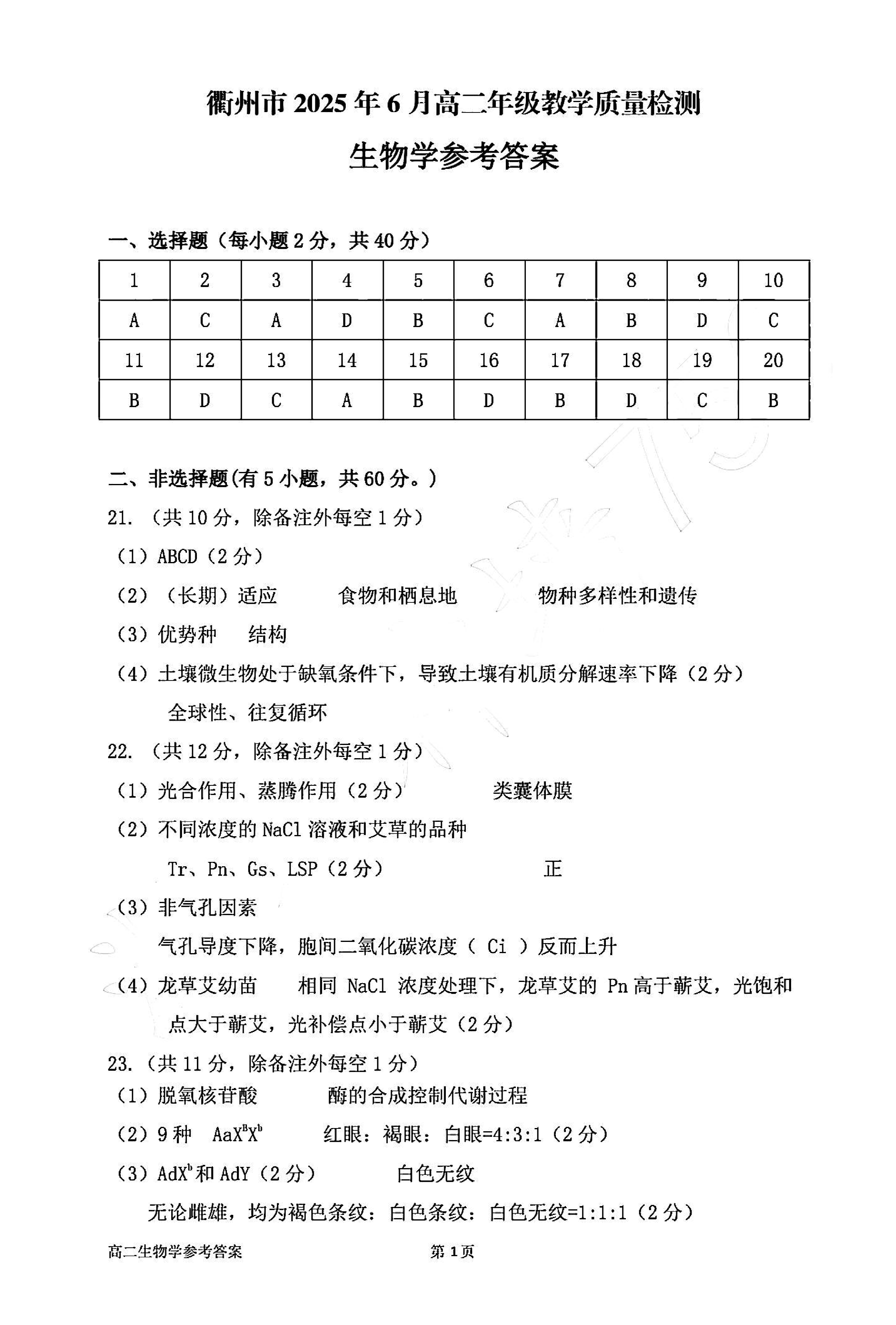 衢州市2025年6月高二下学期教学质量检测生物试题及答案 时间:2025-06-22 浙江 高中生物 浙江省衢州市2025年6月高二下学期教学质量检测生物考试已于近日开考,为方便考生考后及时查看考试情况,查漏补缺、弥补不足,本文整理了试题答案解析相关信息! 生物试题及答案解析
