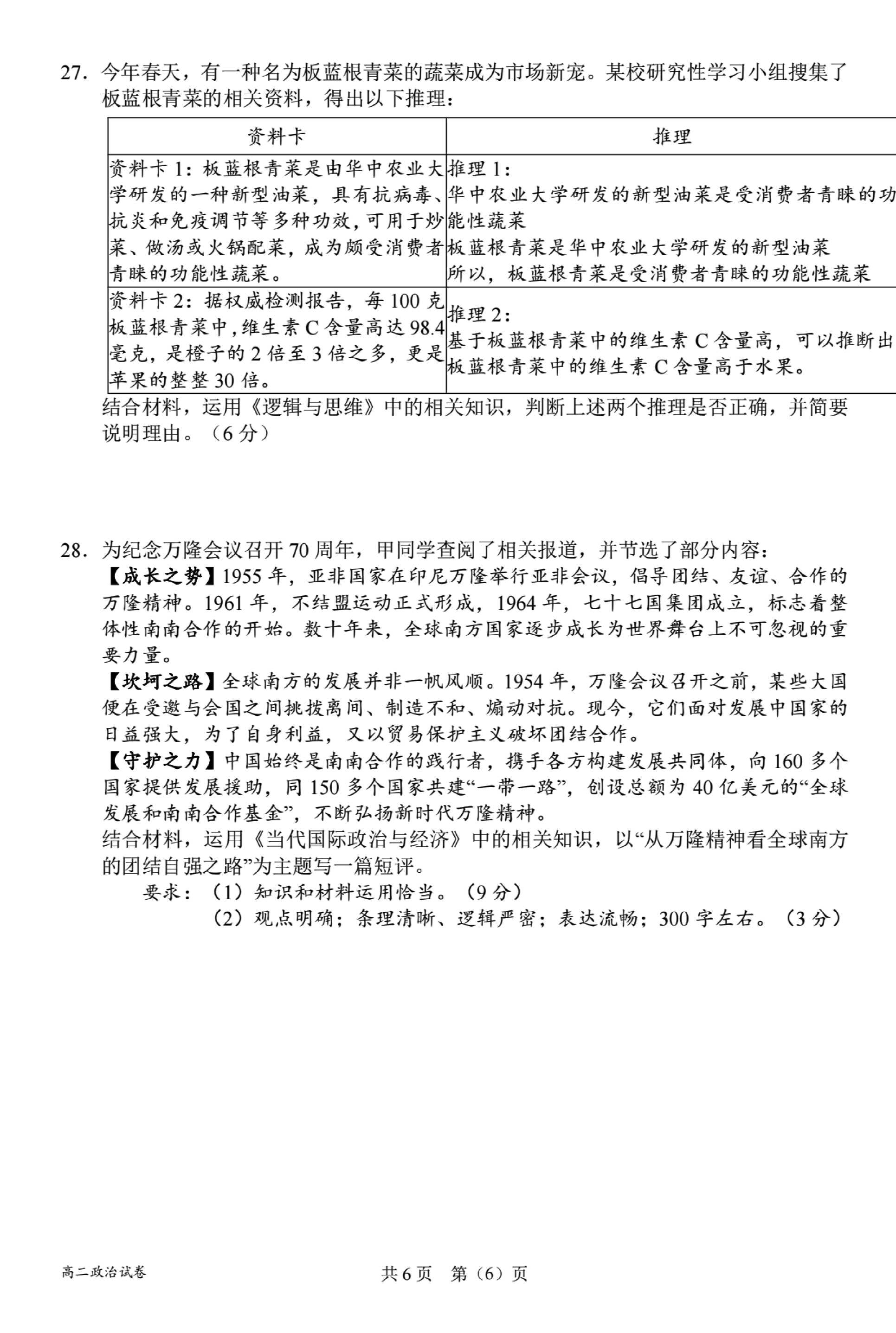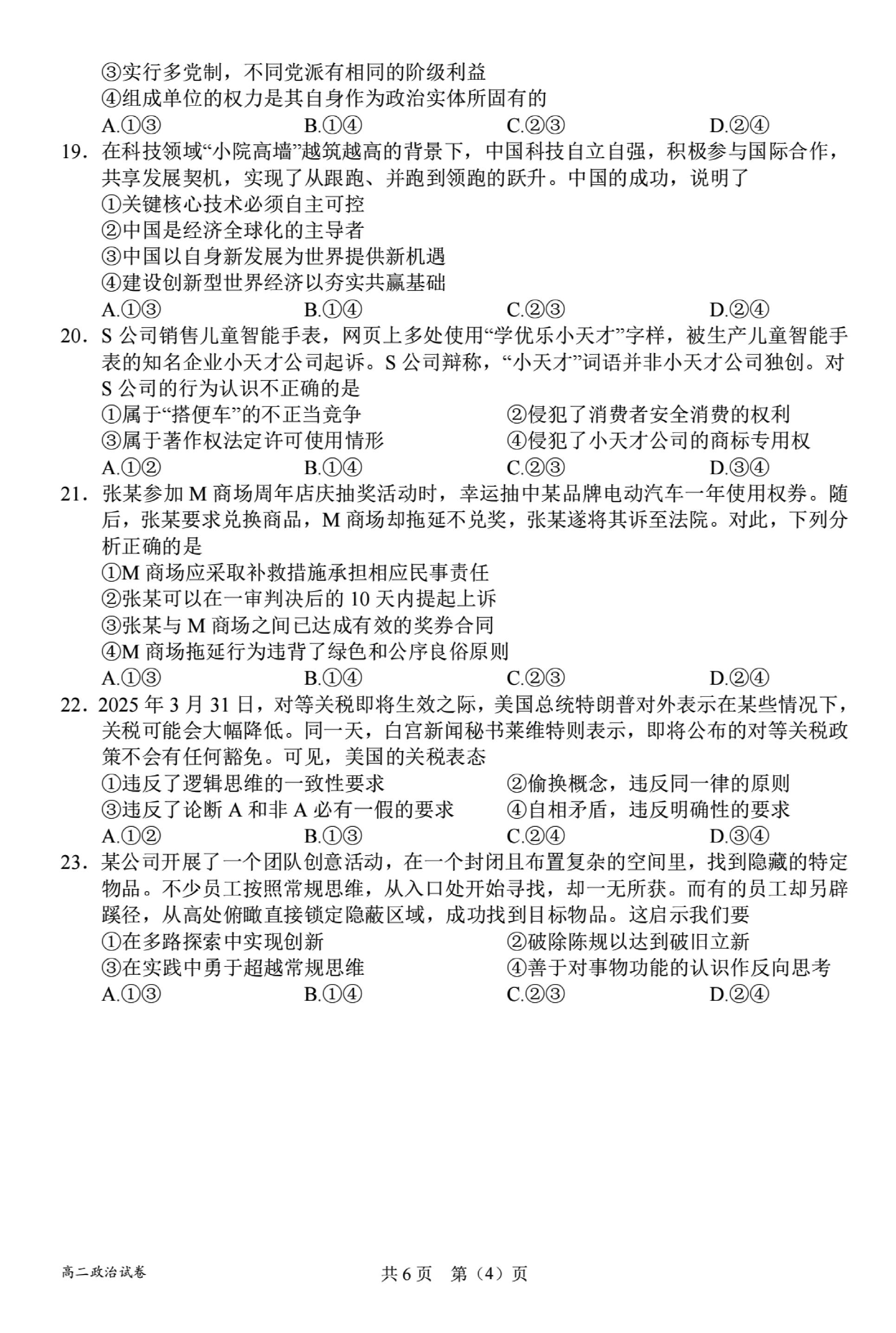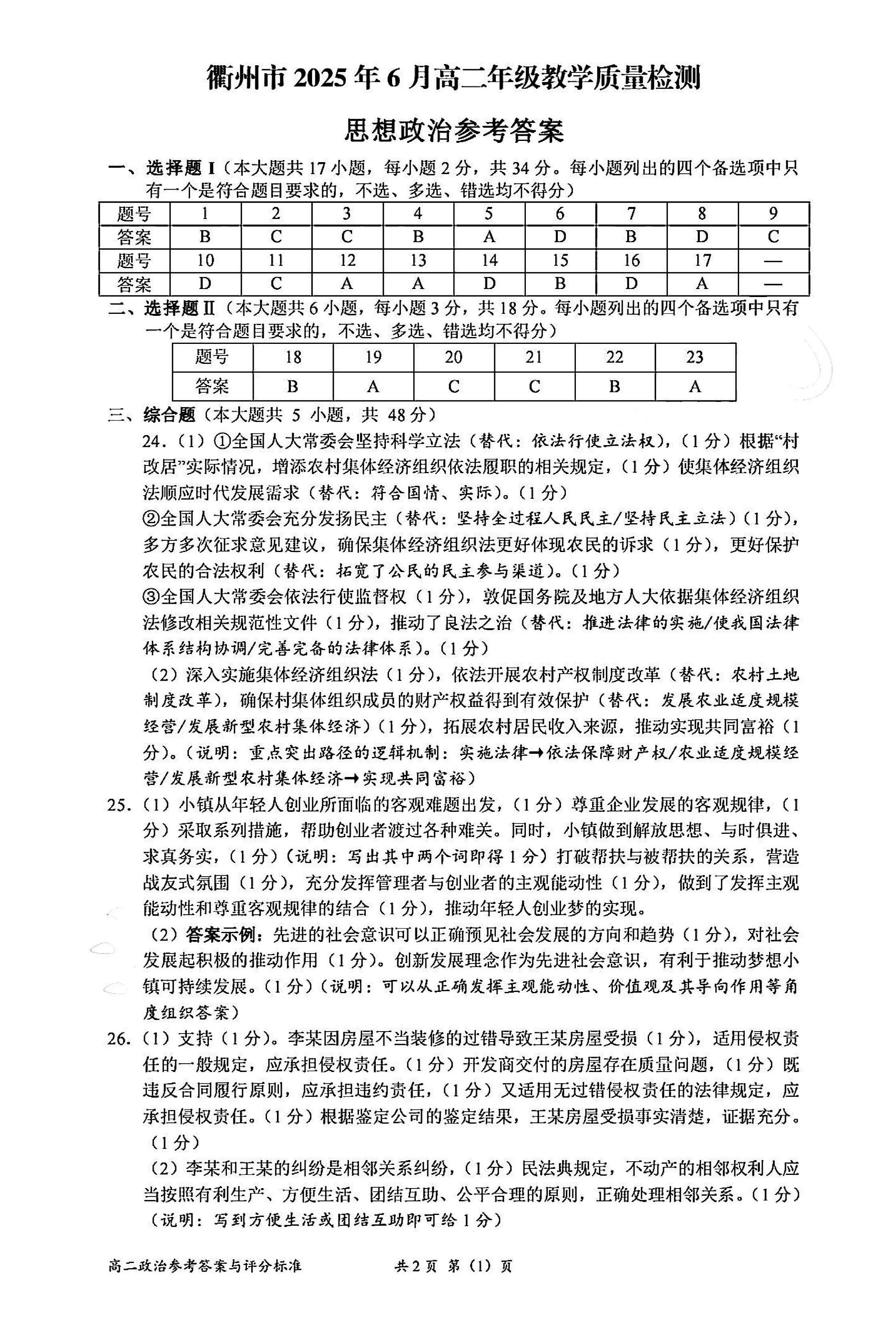 衢州市2025年6月高二下学期教学质量检测政治试题及答案 时间:2025-06-22 浙江 高中政治 浙江省衢州市2025年6月高二下学期教学质量检测政治考试已于近日开考,为方便考生考后及时查看考试情况,查漏补缺、弥补不足,本文整理了试题答案解析相关信息! 政治试题及答案解析