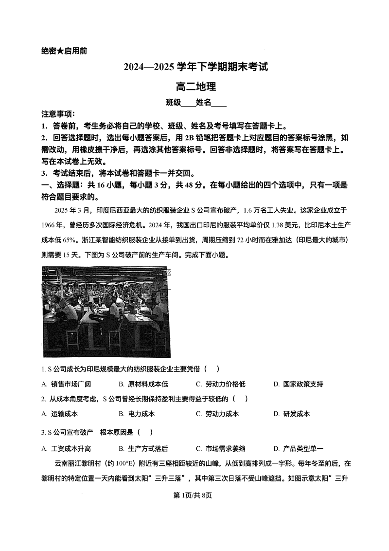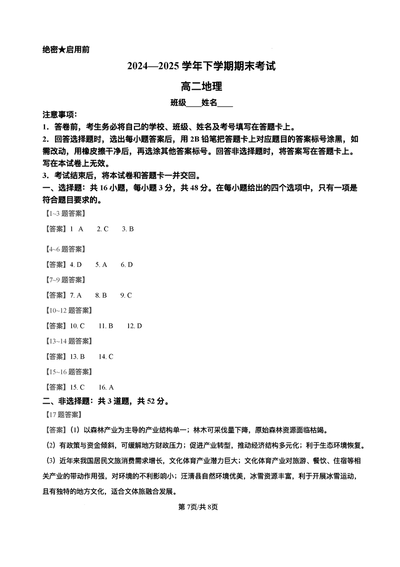 河北省级联测2024-2025学年高二下学期6月期末地理试题及答案 时间:2025-06-22 河北 高中地理 河北省省级联测2024-2025学年高二下学期6月期末地理考试已于近日开考,为方便考生考后及时查看考试情况,查漏补缺、弥补不足,本文整理了试题答案解析相关信息! 地理试题及答案解析