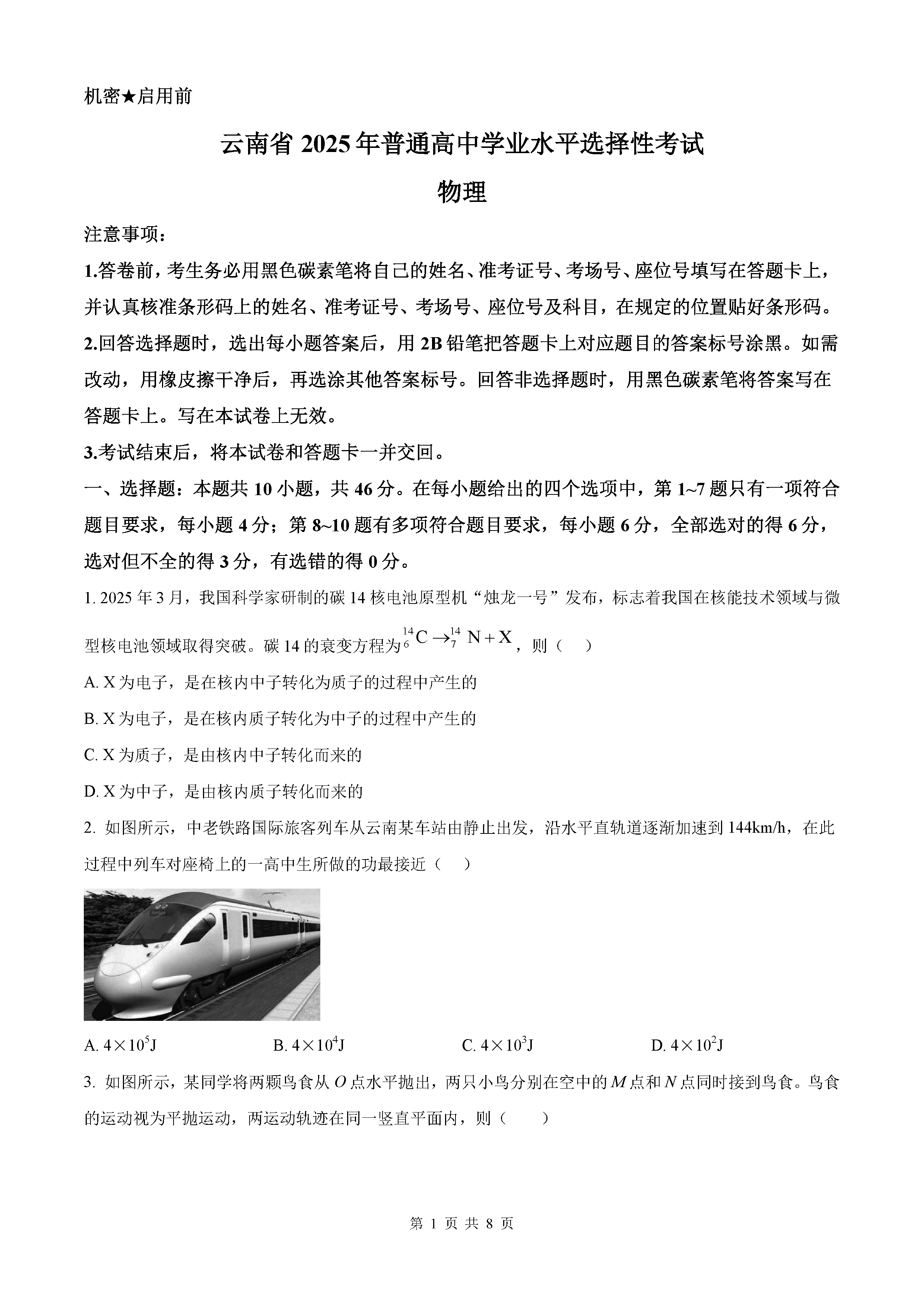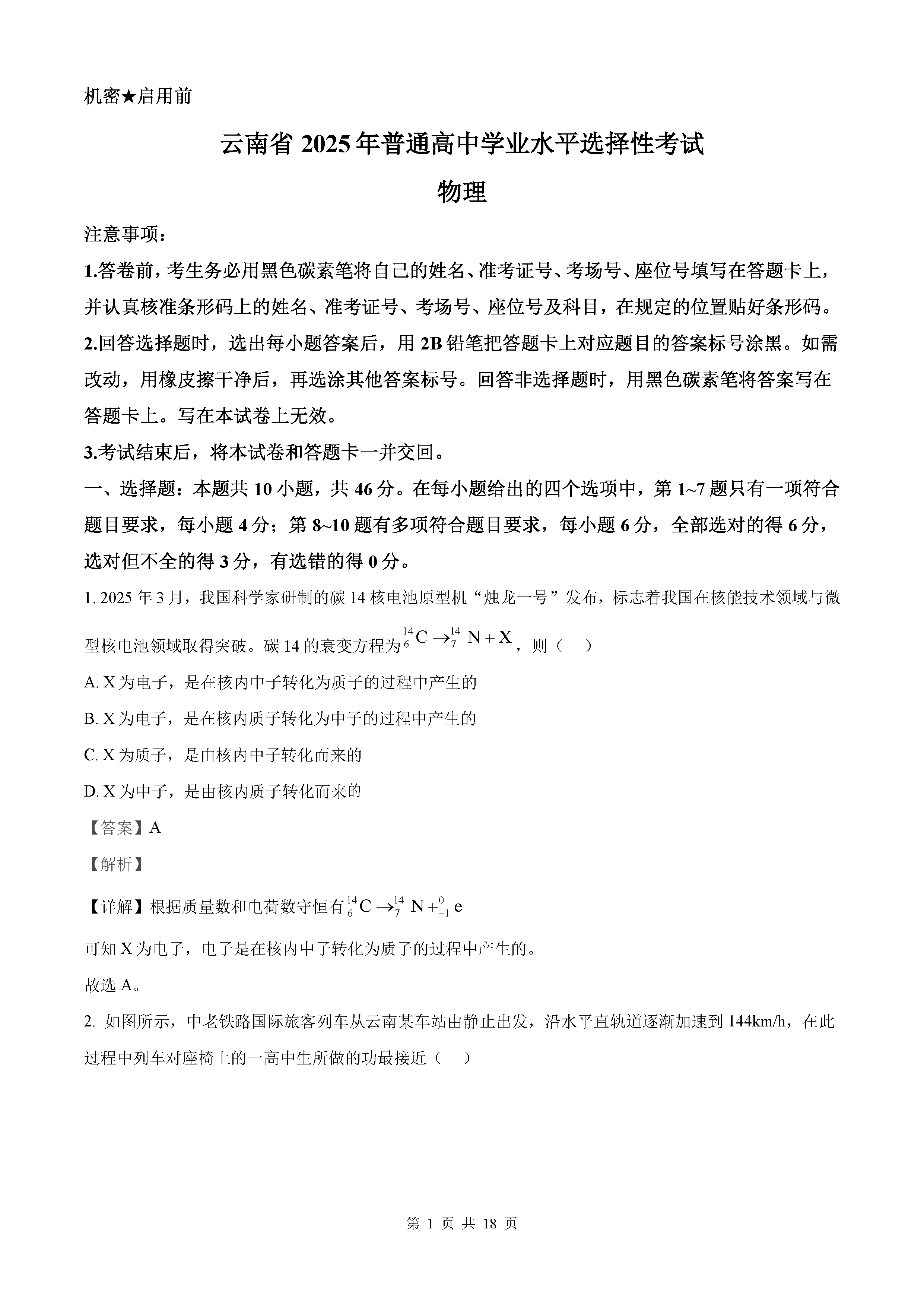 2025年云南省新高考自主命题冲刺金卷物理试题及答案