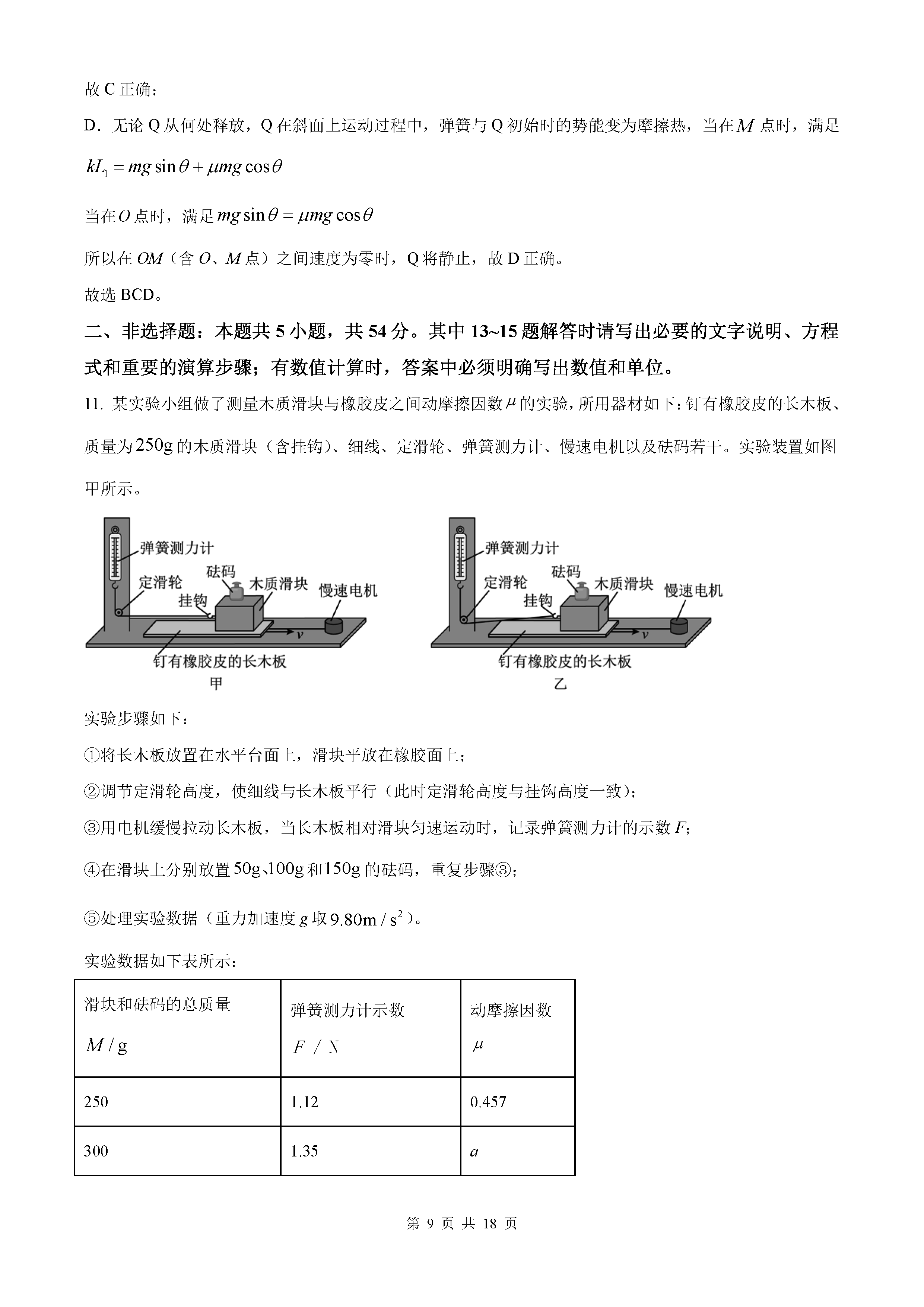 云南师大附中2025届高考适应性月考卷九物理试题及答案