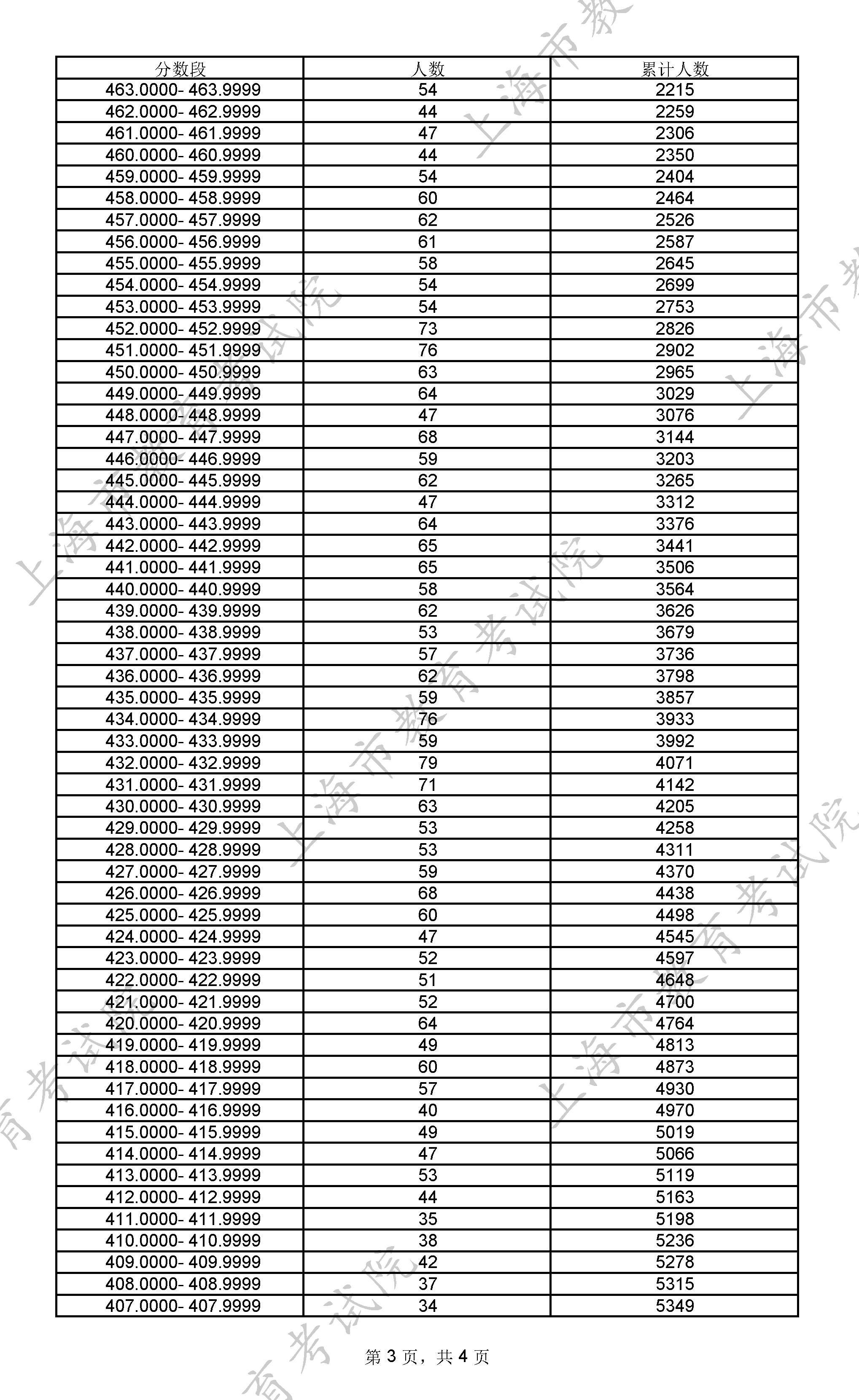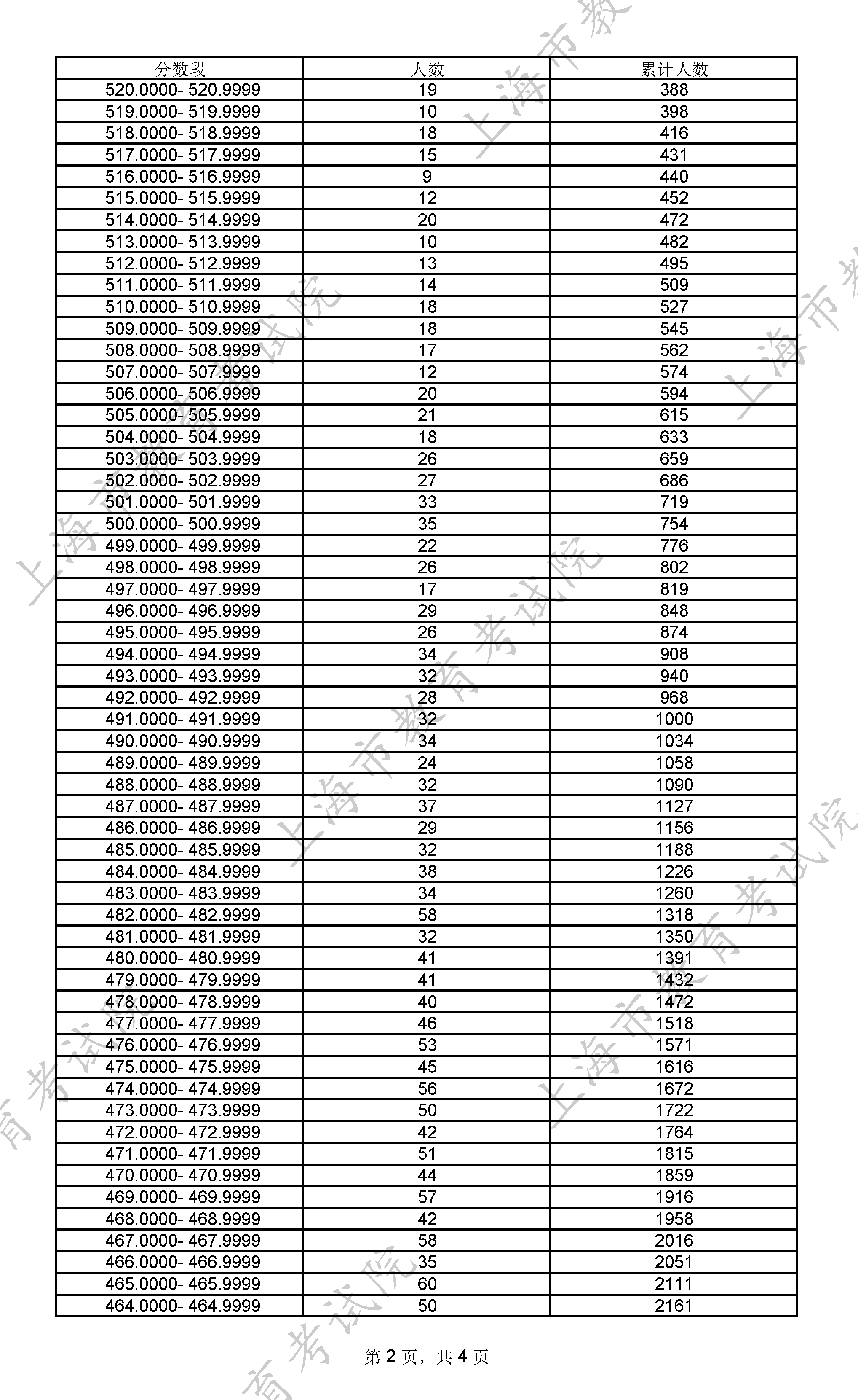 上海2025年高考一分一段统计表及位次排名
