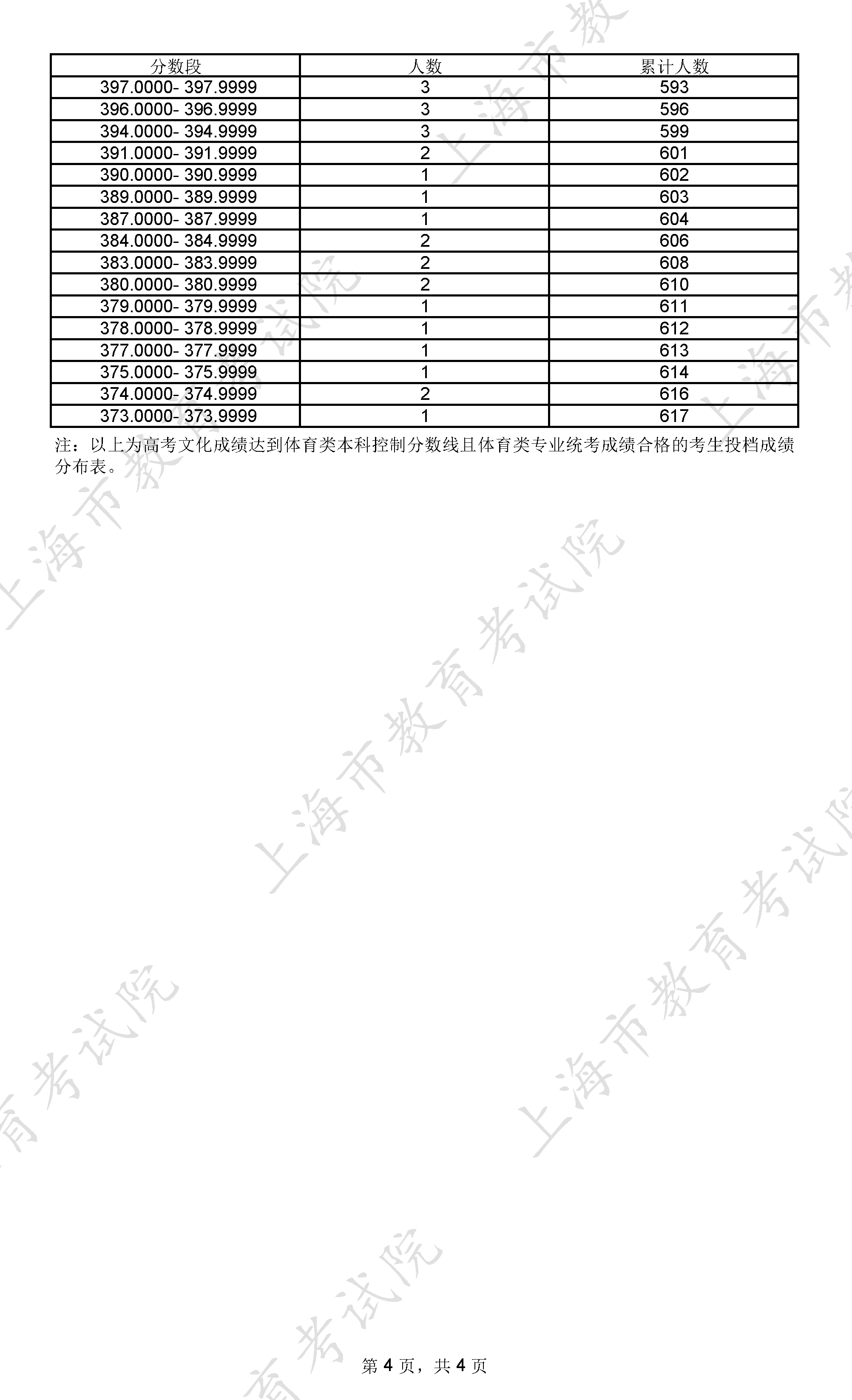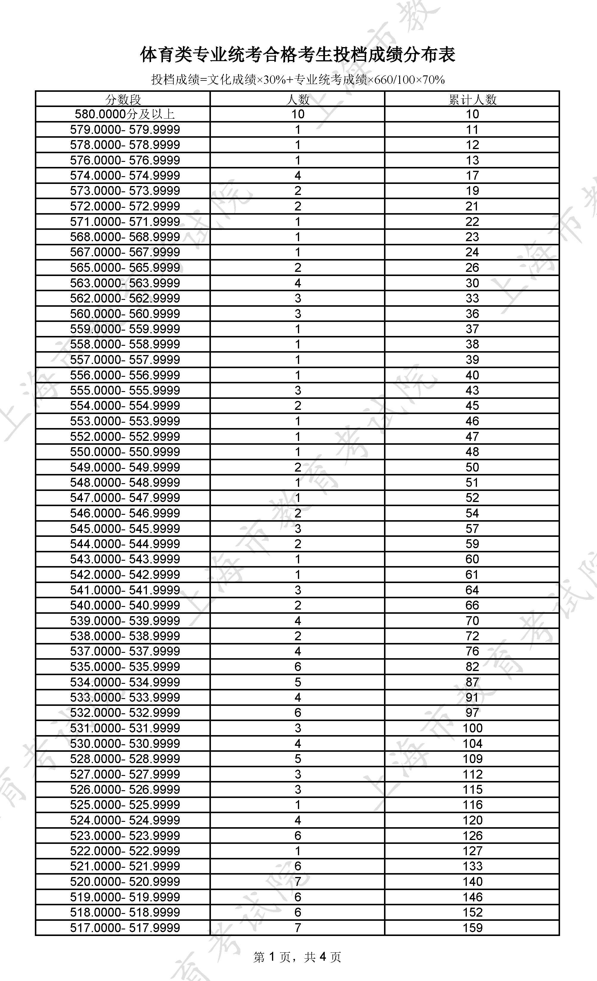 上海2025.体育类专业统考合格成绩一分一段位次排名情况