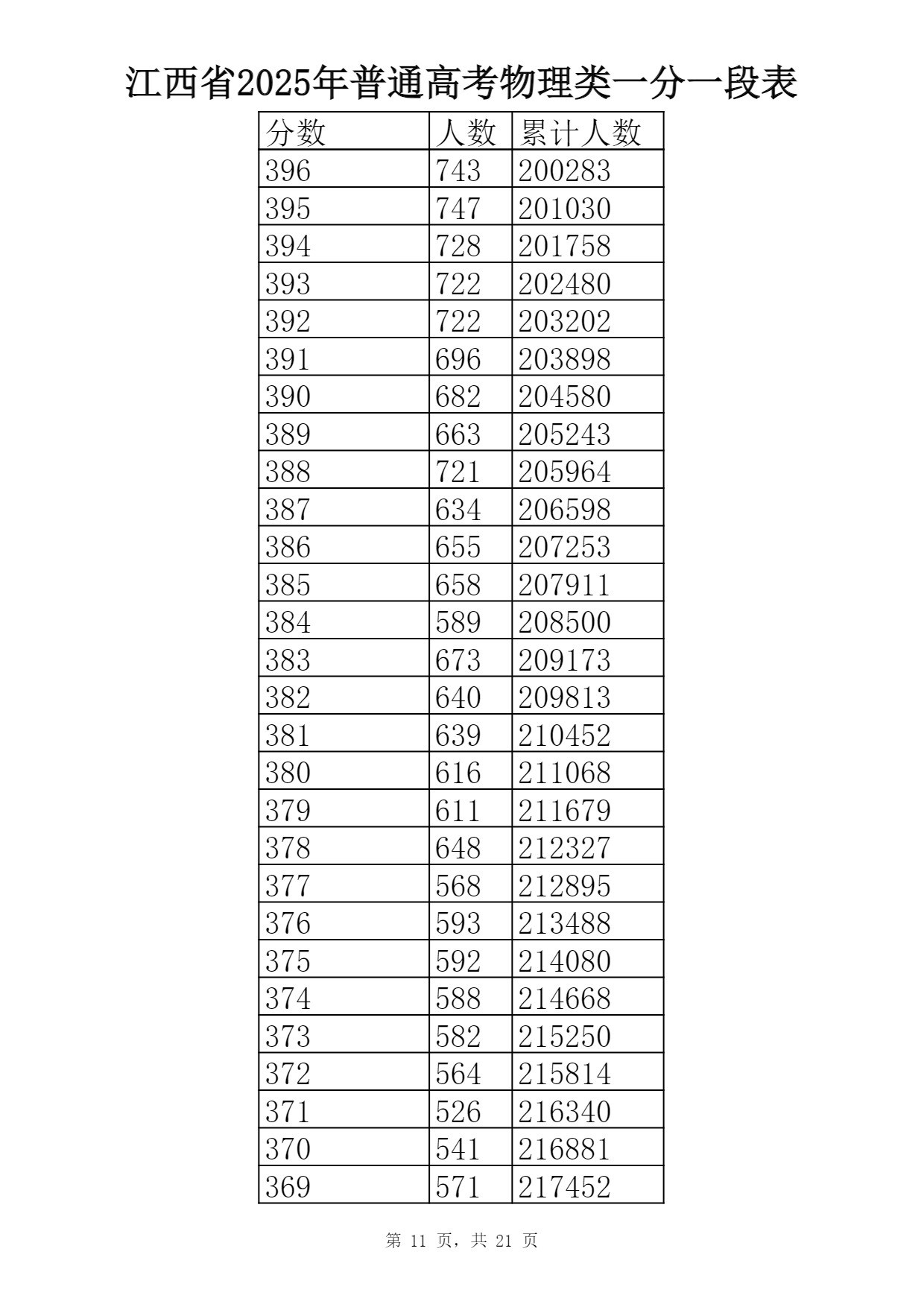 2025江西高考成绩物理类一分一段表出炉 最新位次排名