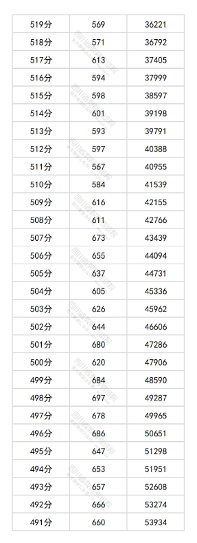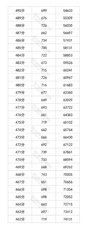 2025四川高考成绩一分一段表最新公布