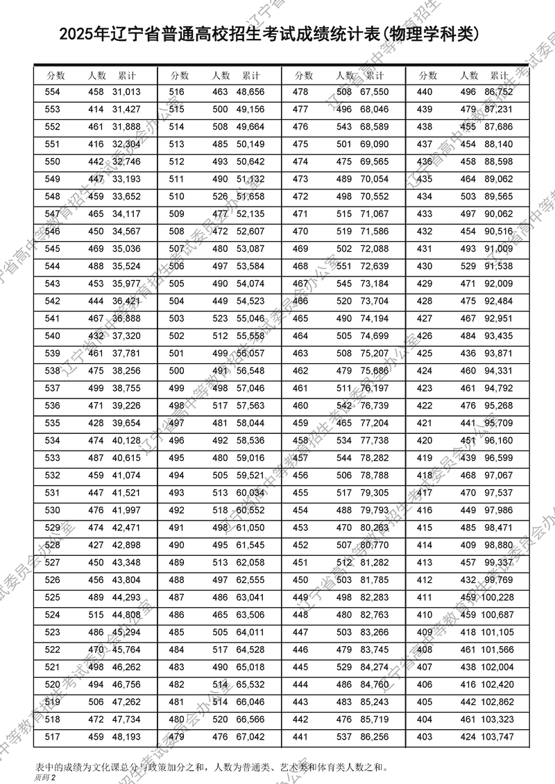2025辽宁高考成绩物理类一分一段表出炉 最新位次排名