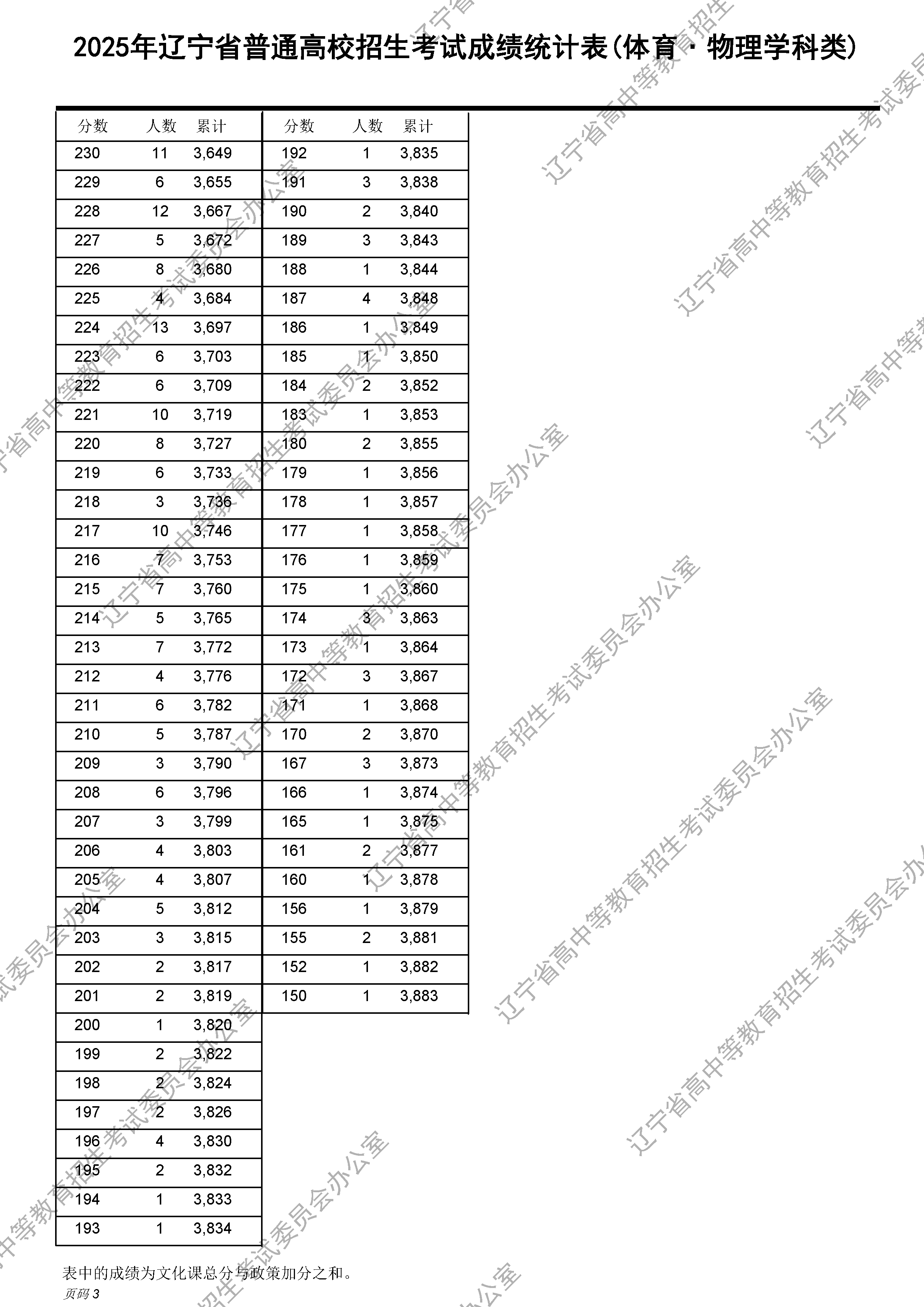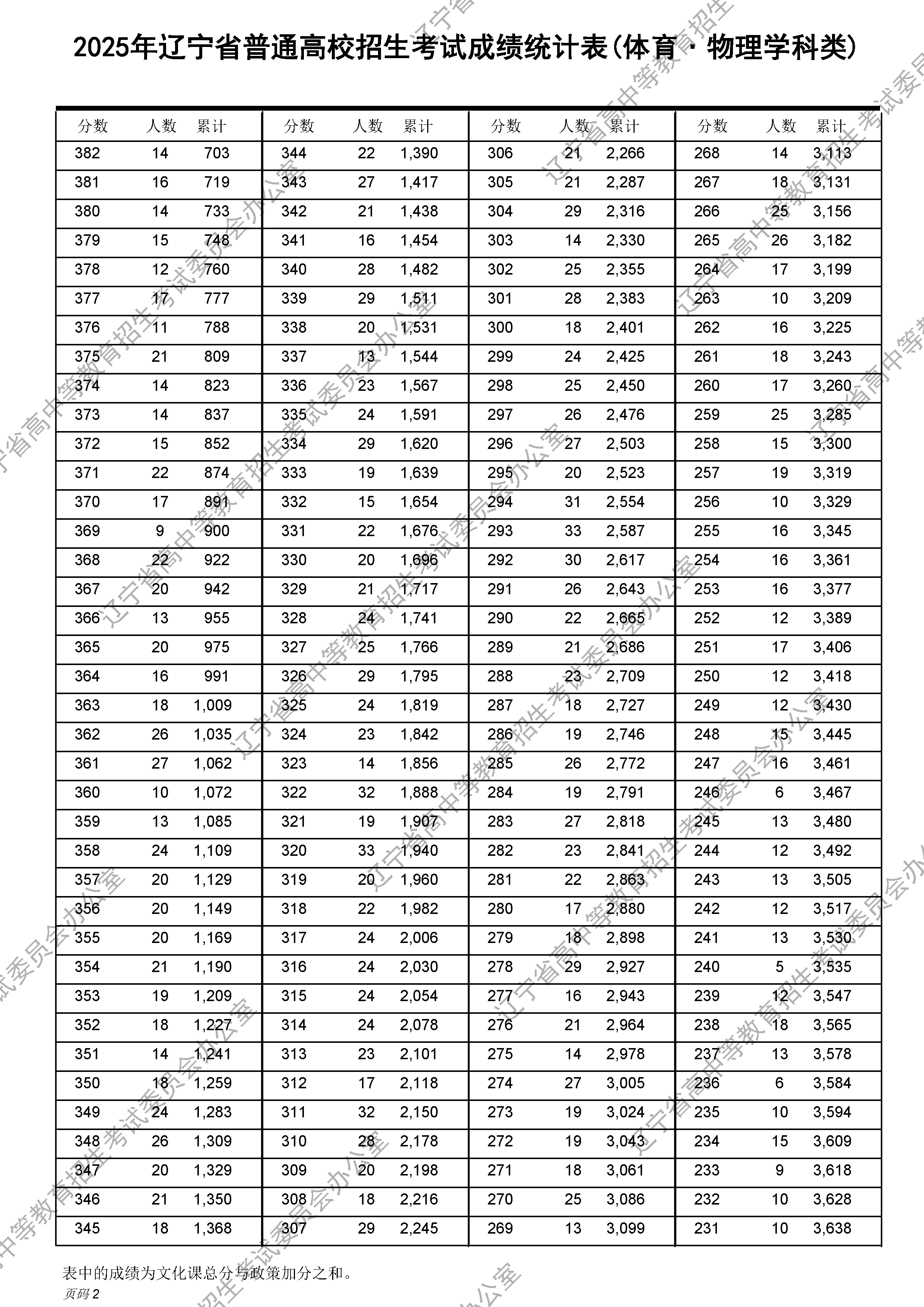 2025年辽宁高考体育类成绩一分一段表及位次排名(物理学科类)