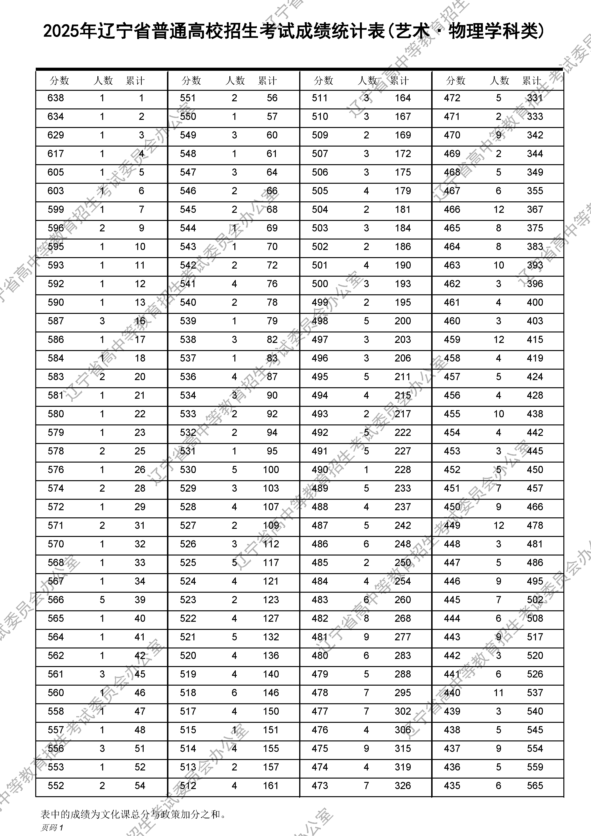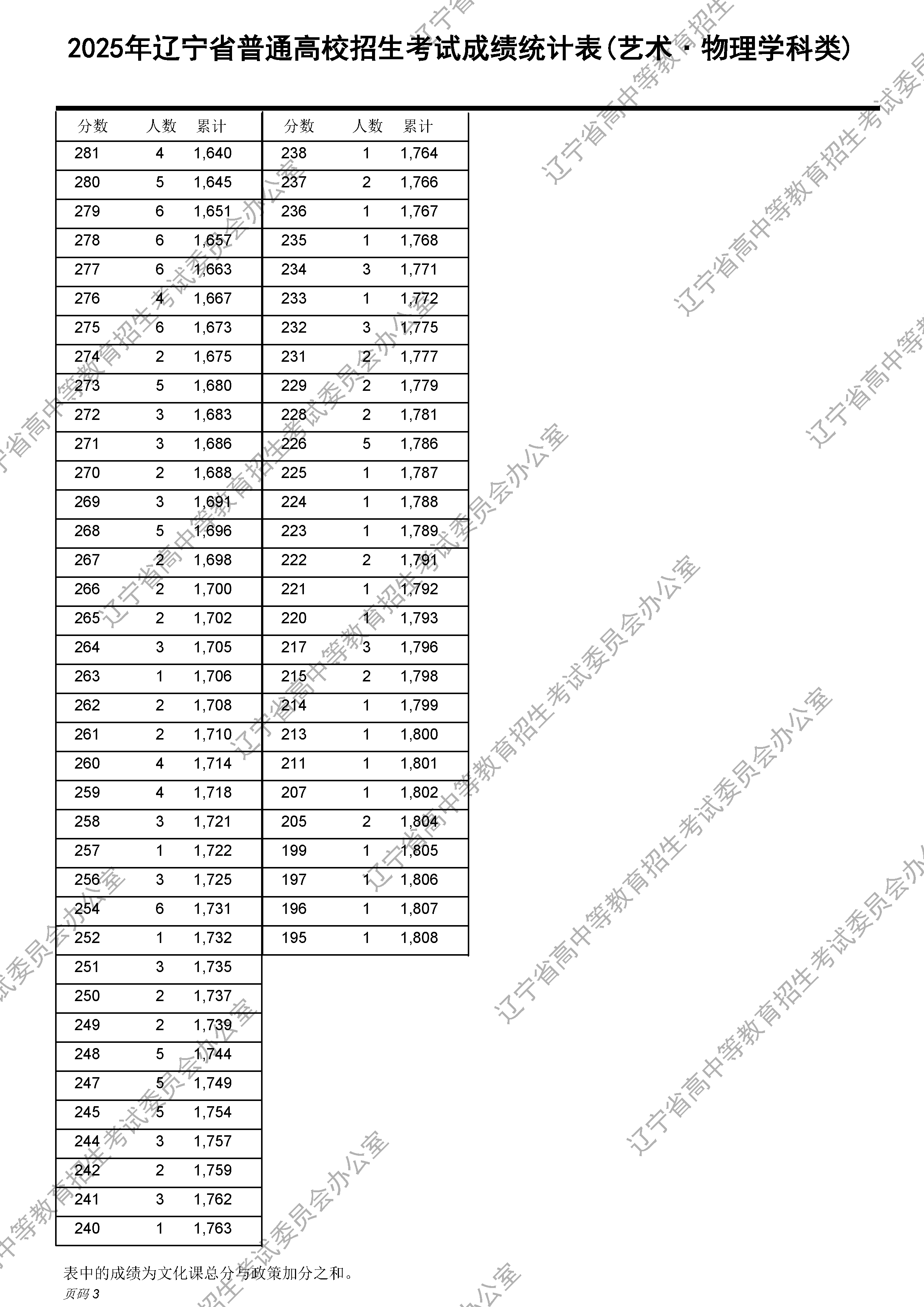 2025年辽宁高考艺术类成绩一分一段表及位次排名(物理学科类)