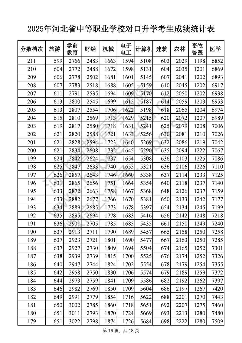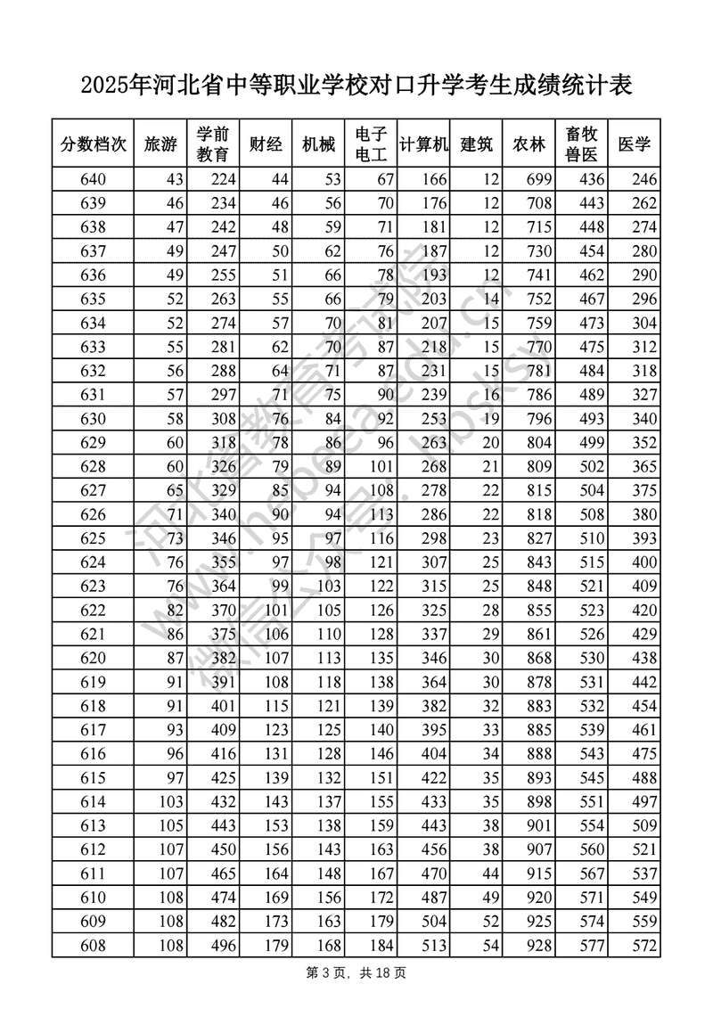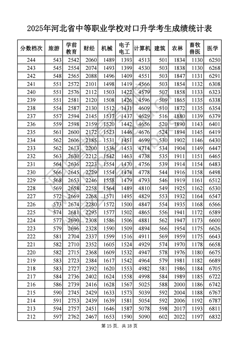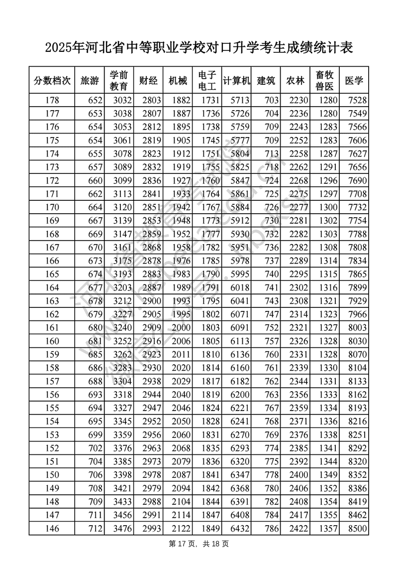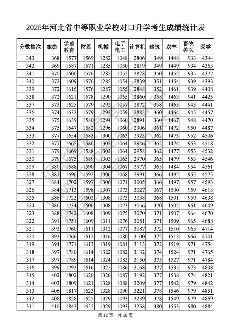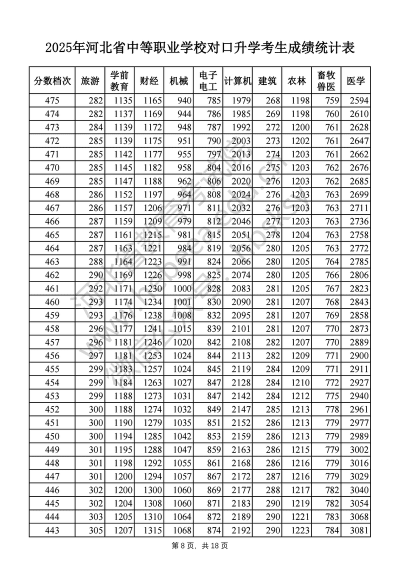 2025年河北省中等职业学校对口升学成绩一分一段表及位次排名