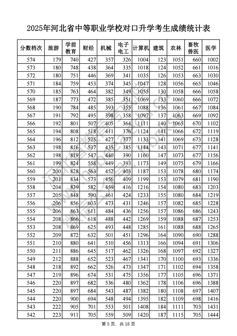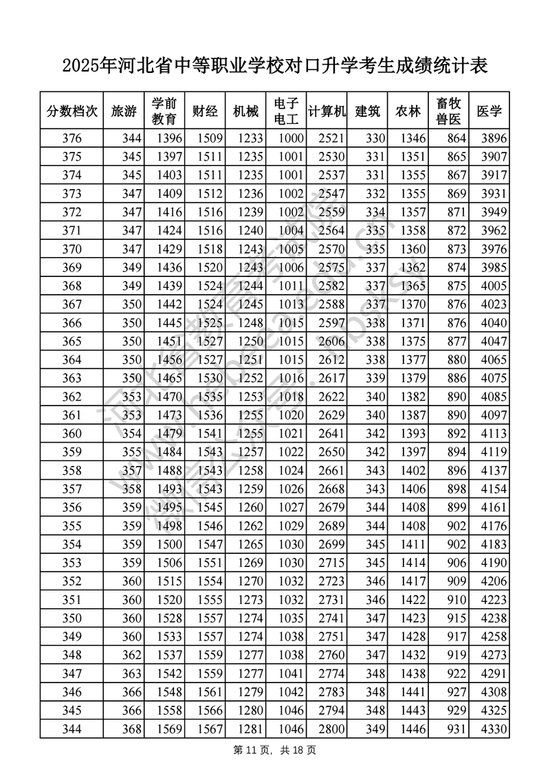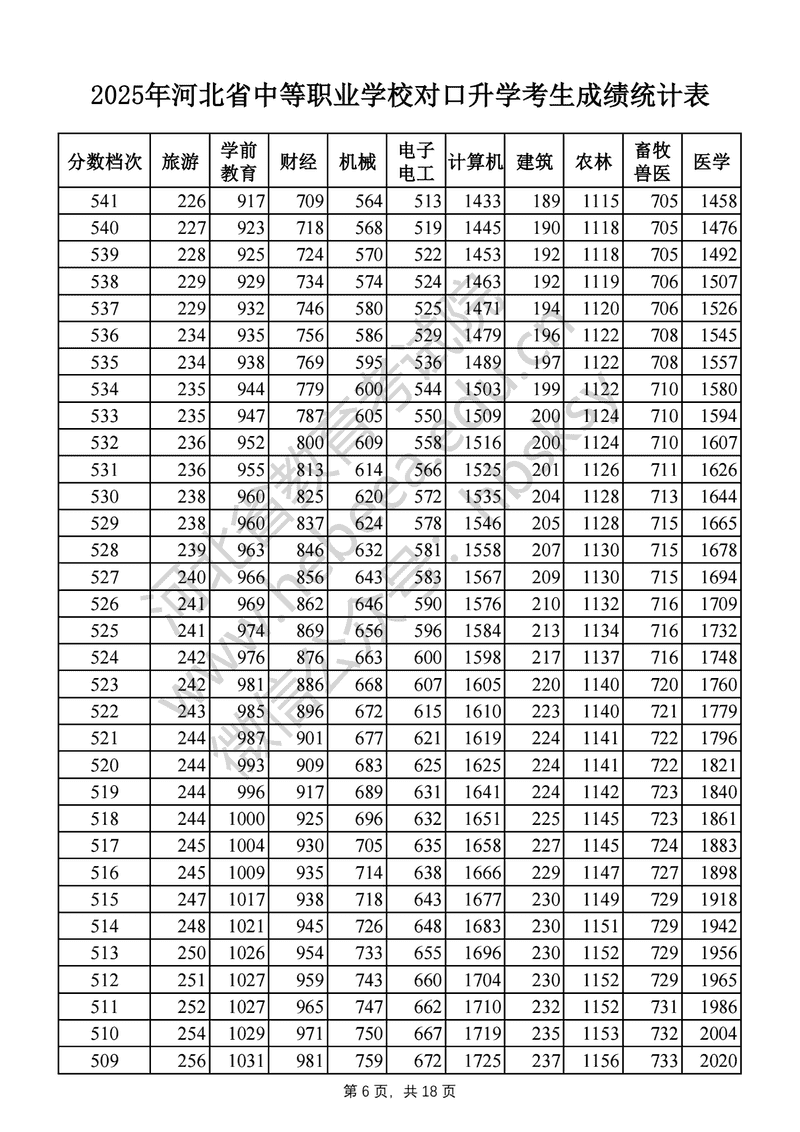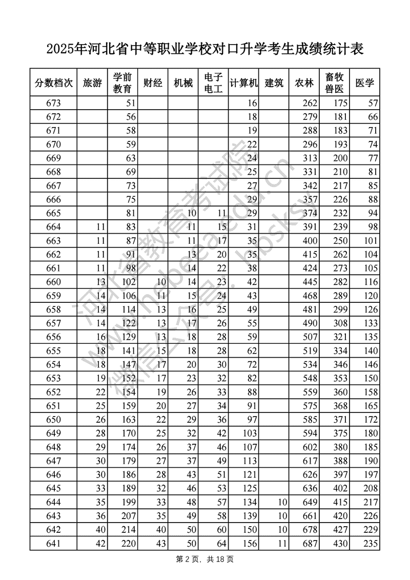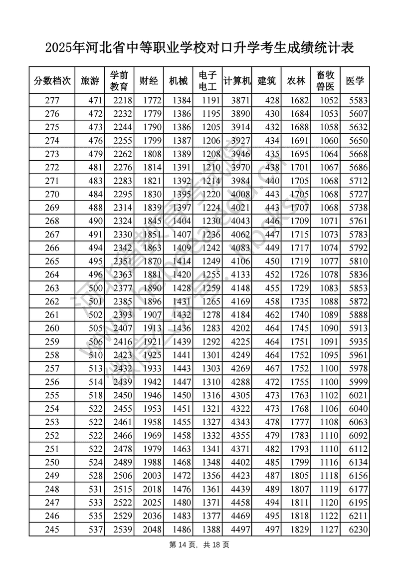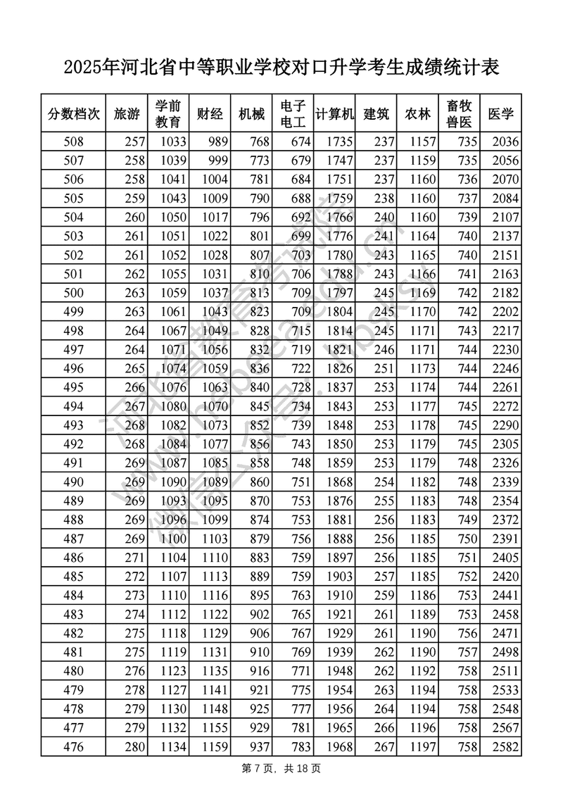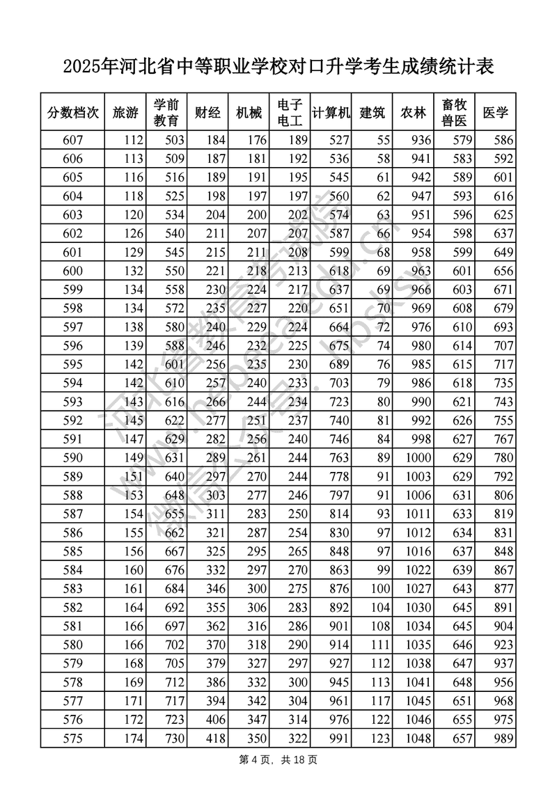 2025年河北省中等职业学校对口升学成绩一分一段表及位次排名