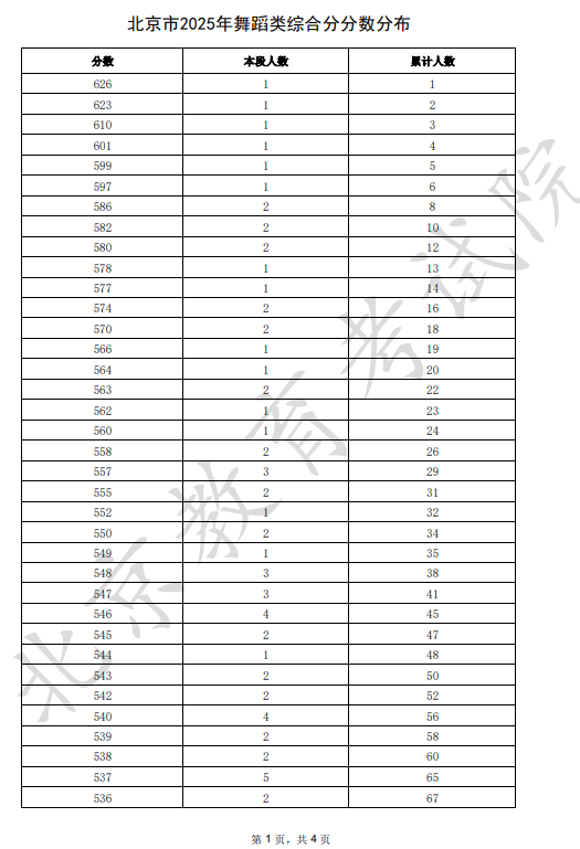 北京2025高考舞蹈类一分一段表已经公布,其中610分累计人数是3人;597分累计人数是6人;580分累计人数是12人;574分累计人数是16人;560分累计人数是24人;547分累计人数是41人。以下是小编整理的详细内容,大家可以看一看。