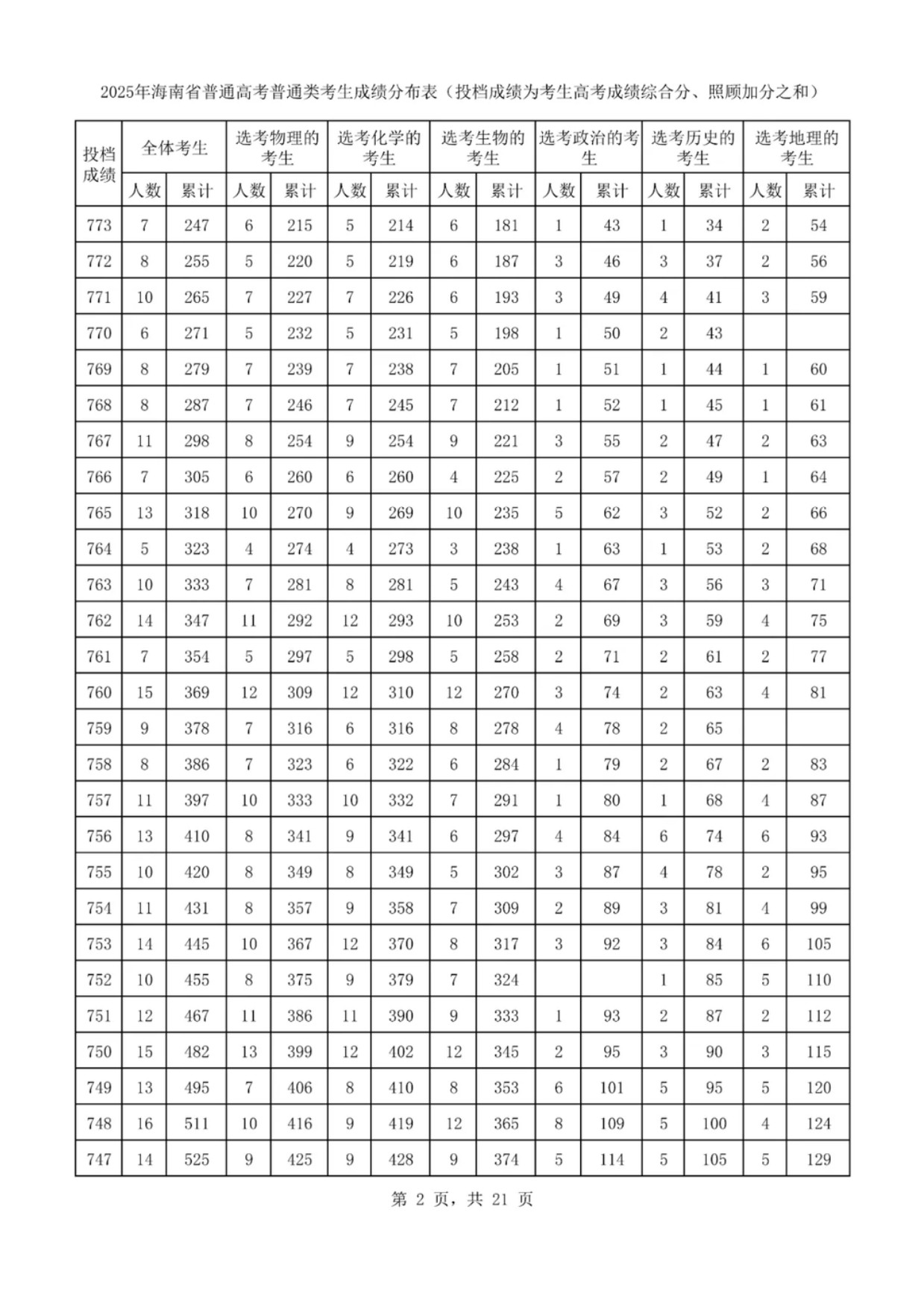 2025海南一分一段表已向社会公布,其中,800分及以上的有105人,799分有5人,798分的有2人,797分的有5人,796分的有4人,795分的有4人,794分的有4人,793分的有4人,792分的有5人,791分的有5人,790分的有4人,具体排名及位次如下。