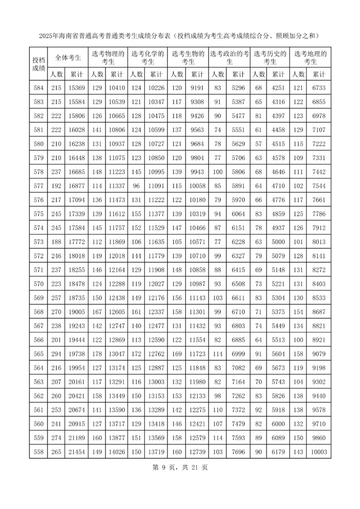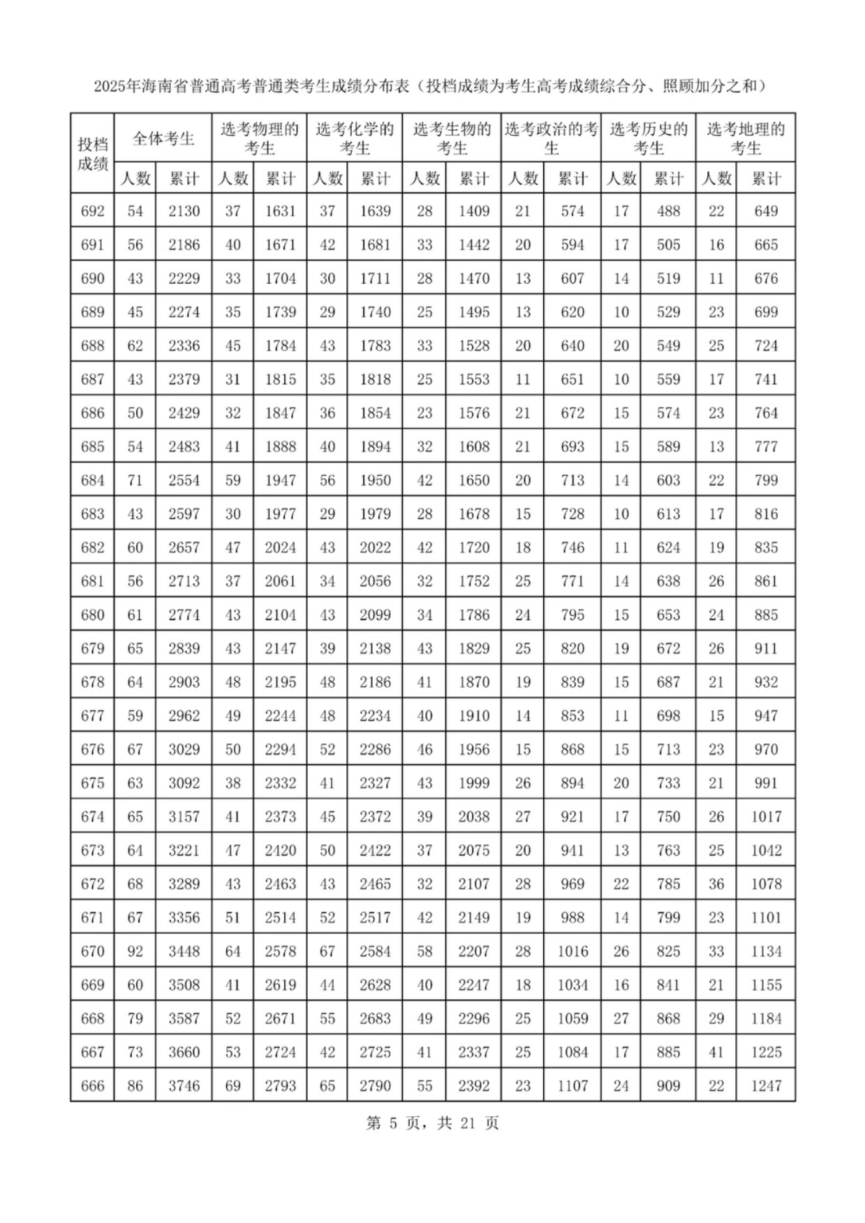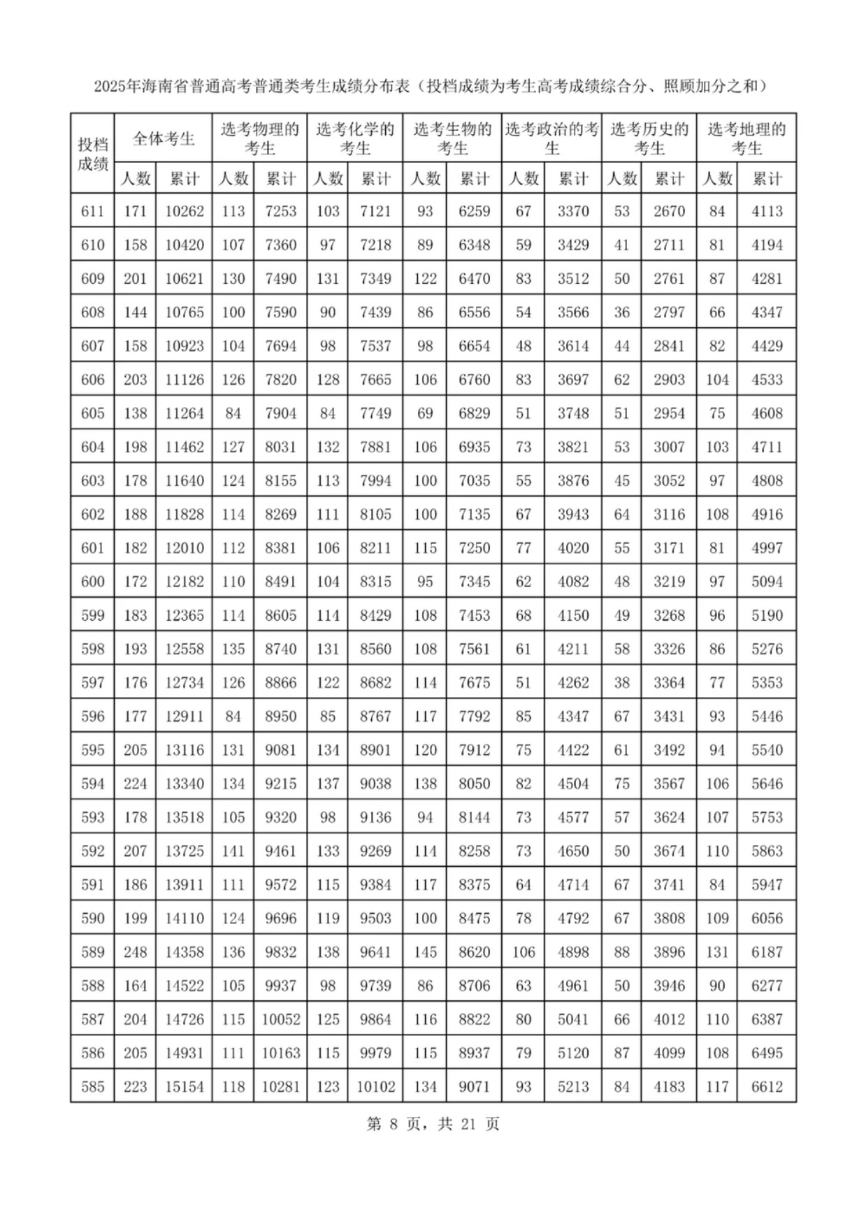 2025海南一分一段表最新出炉 高考成绩分布表