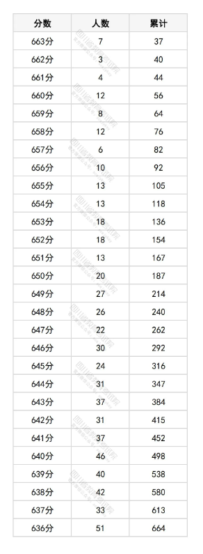 2025年四川高考一分一段表已经公布,其中,历史类663分累计人数37人,662分累计人数40人,661分累计人数44人。一分一段表是考生成绩统计表,通过一分一段表我们可以查看自己的高考位次排名,然后根据位次来选择自己能上的大学和专业。