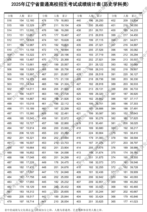 辽宁2025历史类一分一段位次表 高考成绩排名查询