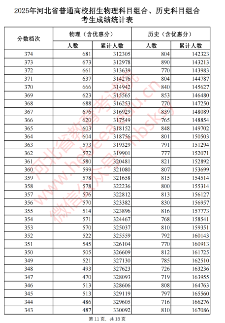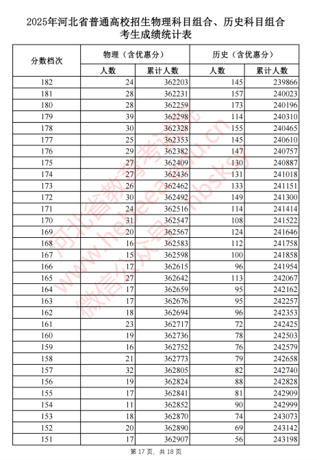 2025河北高考成绩一分一段表最新公布