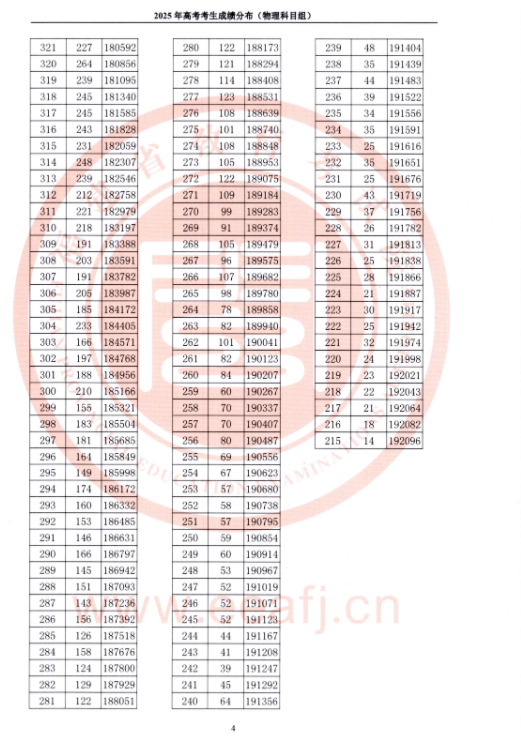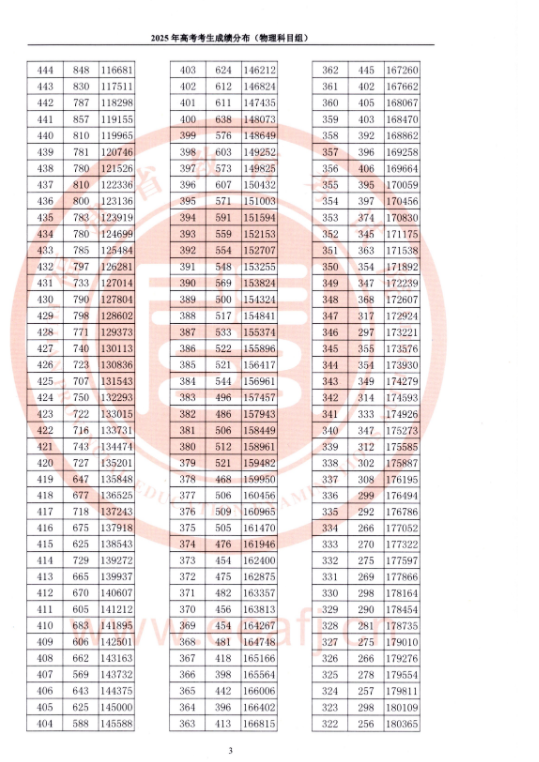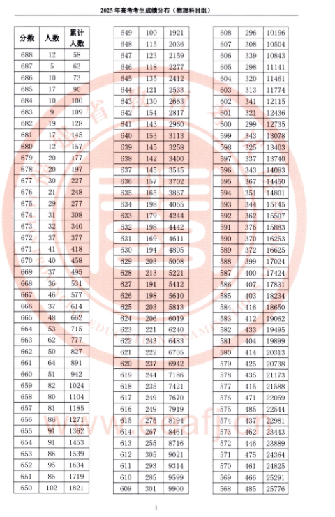 2025福建高考成绩物理类一分一段表出炉 最新位次排名