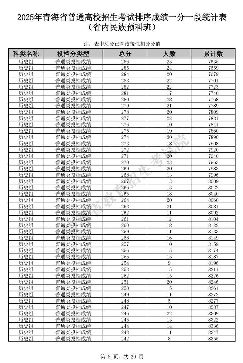 2025青海高考一分一段表最新出炉 历史类成绩分布表