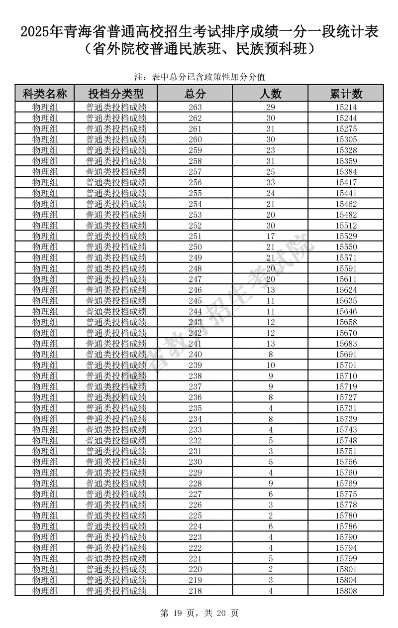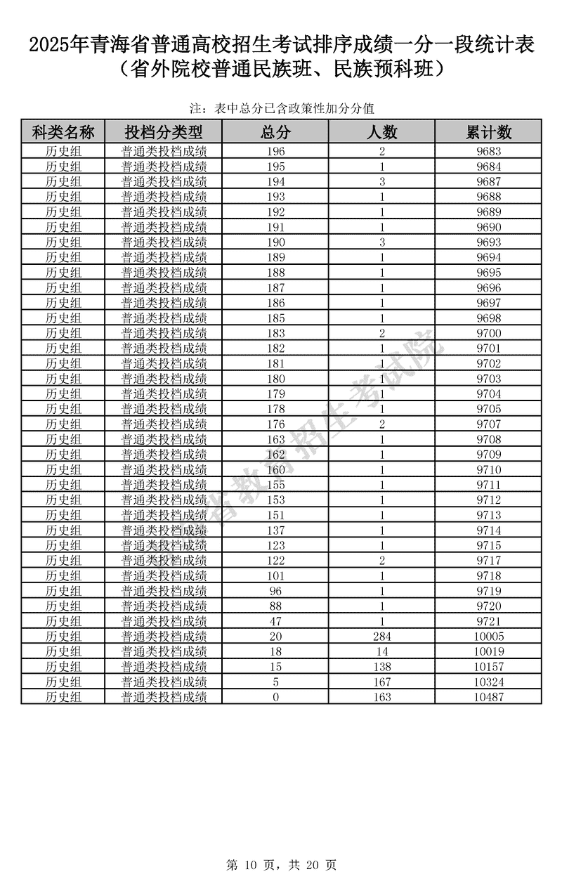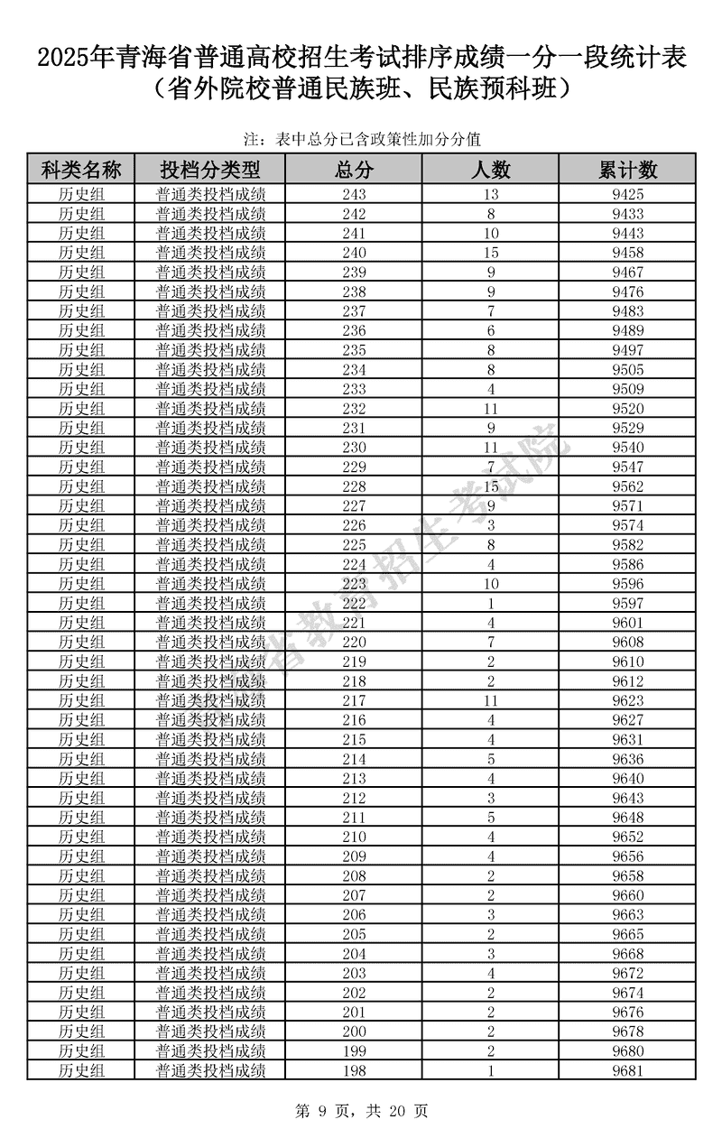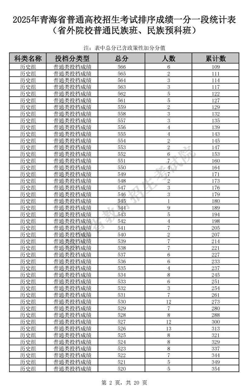 2025年青海高考排序成绩一分一段统计表(省外院校普通民族班、民族预科班) 时间:2025-06-26 青海 成绩查询 2025年青海省普通高校招生考试排序成绩一分一段统计表 (省外院校普通民族班、民族预科班)