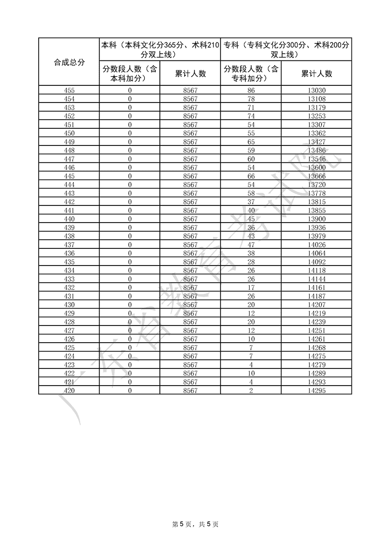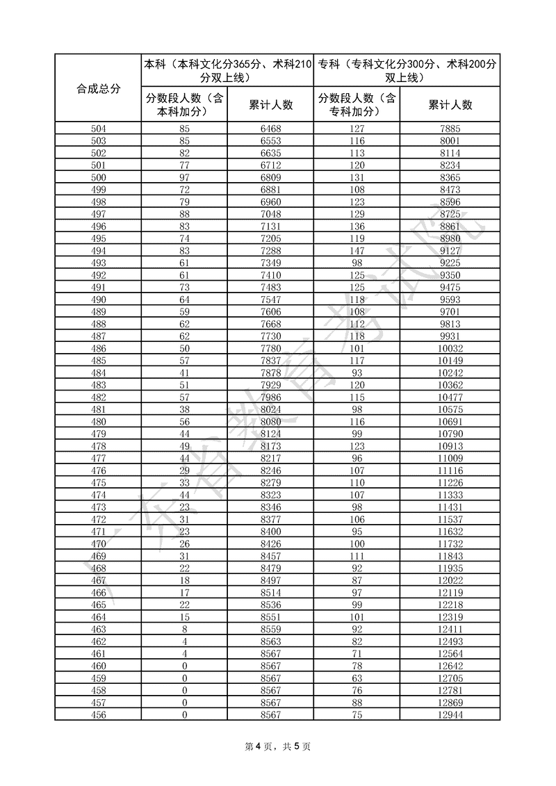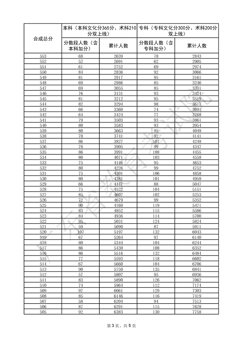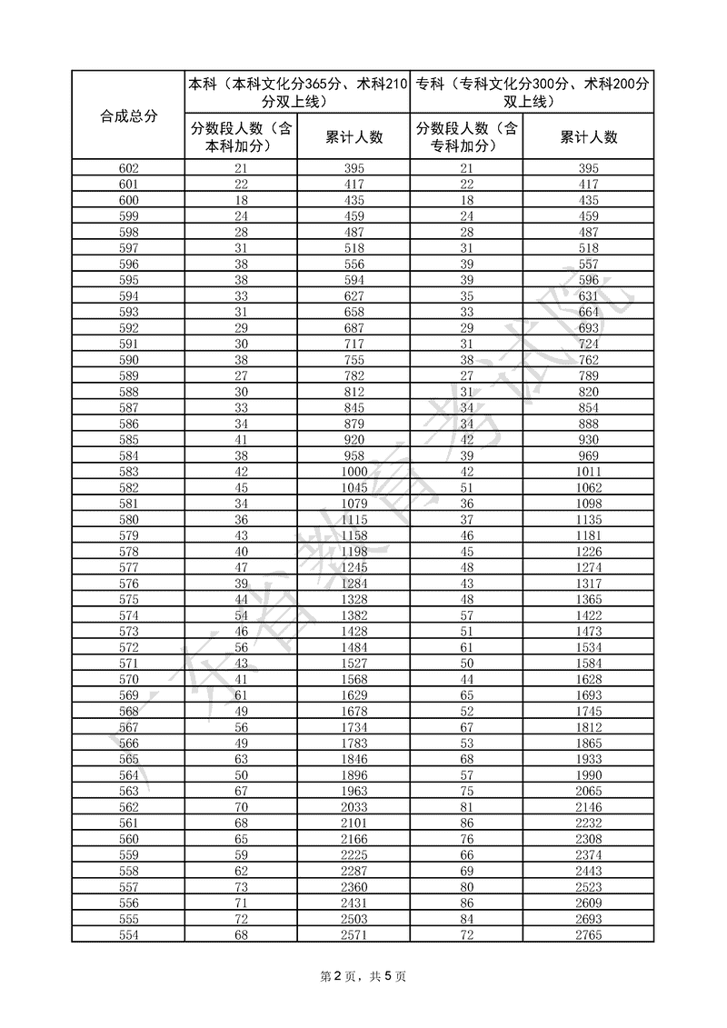 广东省2025年普通高考体育类总分分数段统计表(含本、专科层次加分)