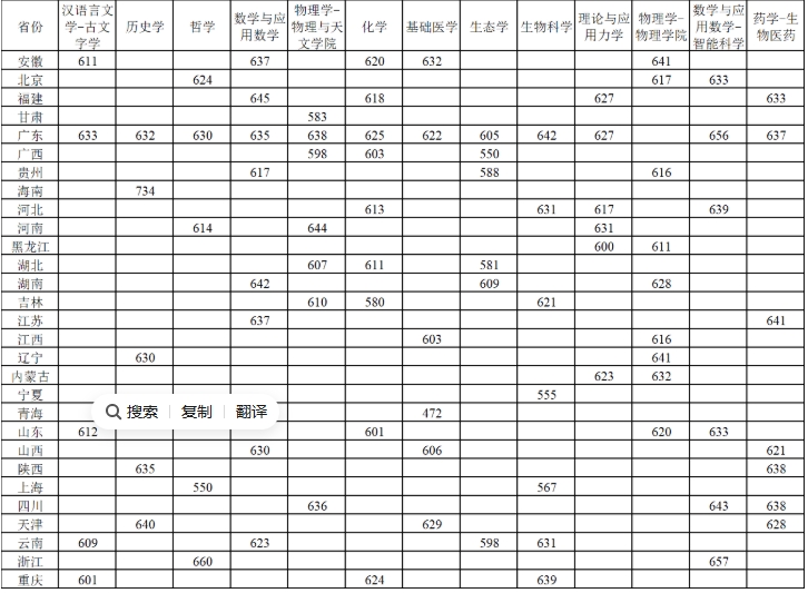 根据教育部有关文件精神和《中山大学2025年强基计划招生简章》规定,现将中山大学2025年强基计划考核入围标准公布如下。考生可登录报名平台-专业志愿填报环节查询本人入围结果。以下是中山大学强基计划2025年入围分数线: