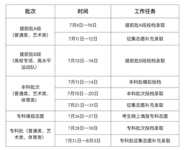 2025吉林高考各批次录取时间的安排已经为大家整理出来了,具体内容如下所示。其中,提前批 A 段(普通类、艺术类):7月8日-10日投档录取,7月11日- 12日征集志愿补充录取。提前批 B 段(高校专项、高水平运动队):7月13日- 14 日投档录取。