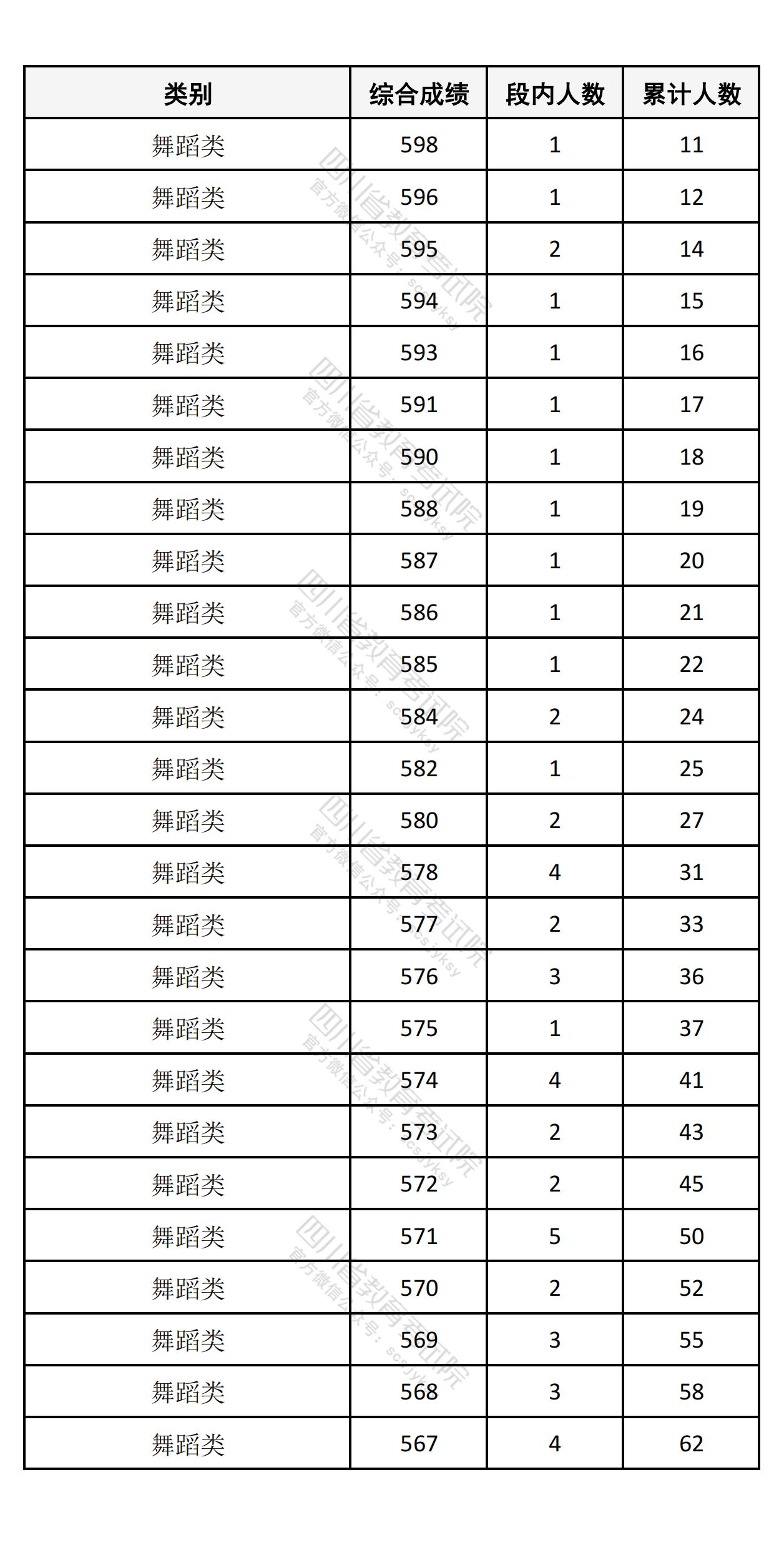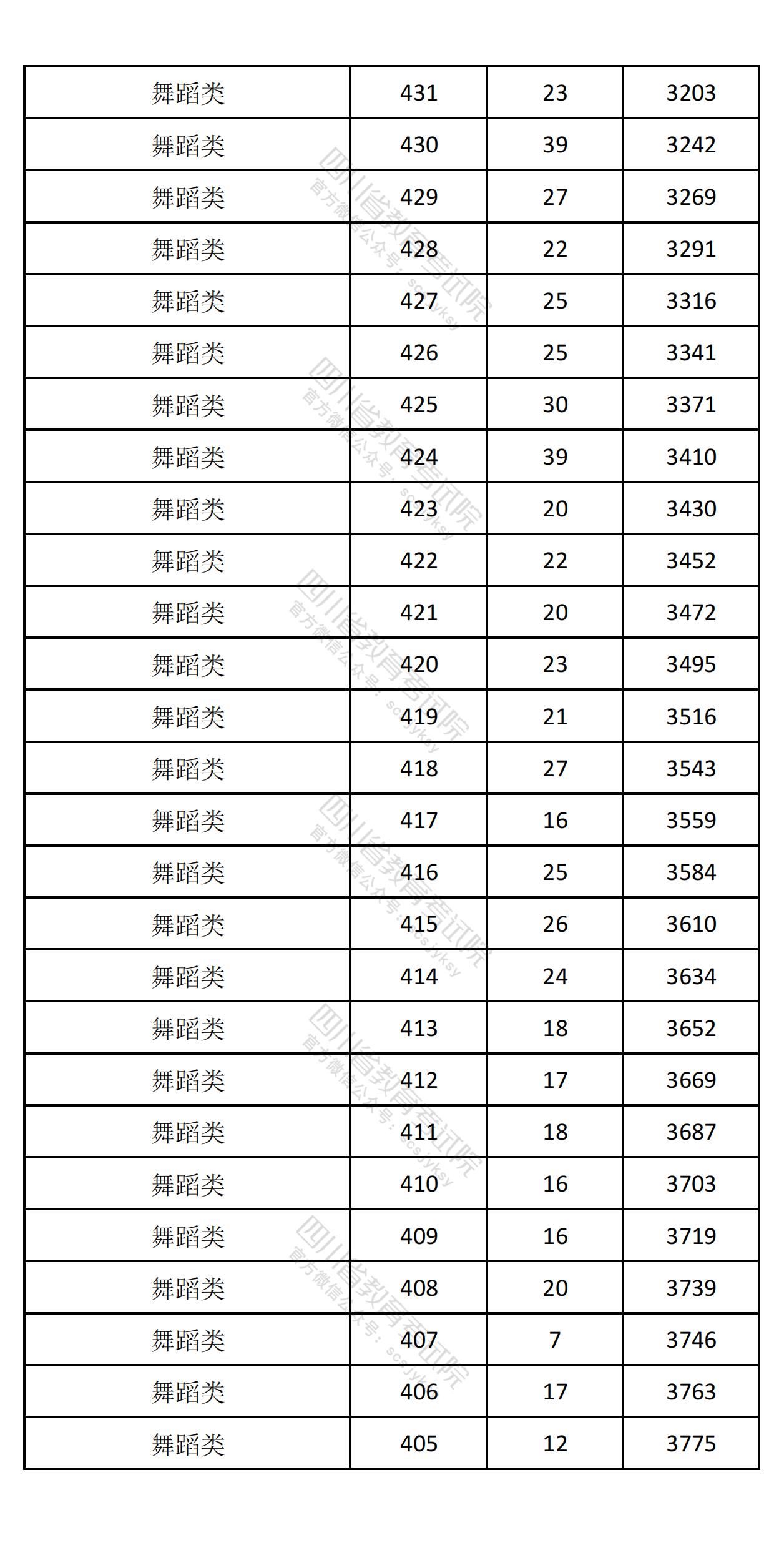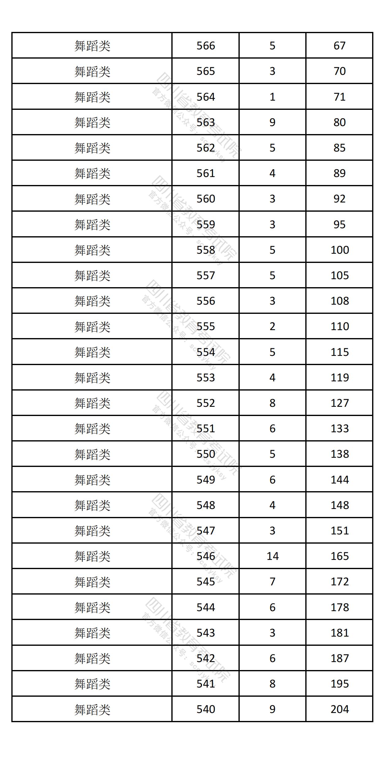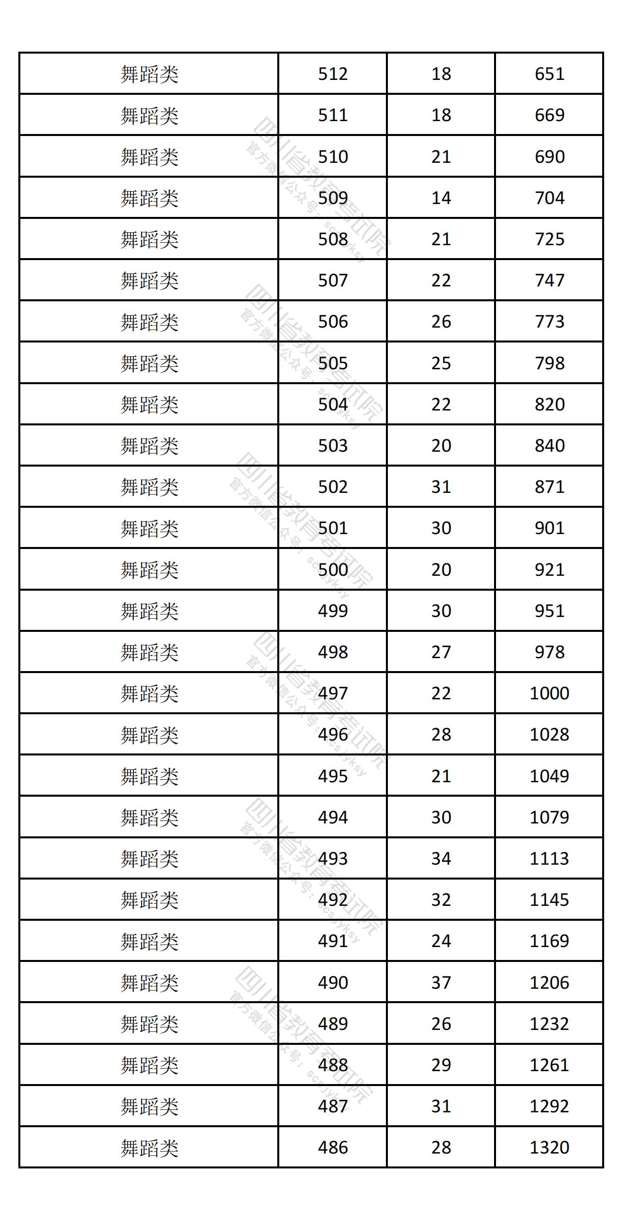 四川省2025年高考音乐舞蹈类综合成绩一分一段排名统计表