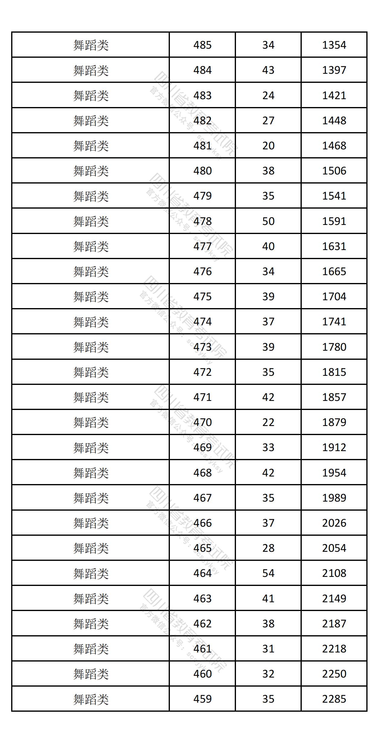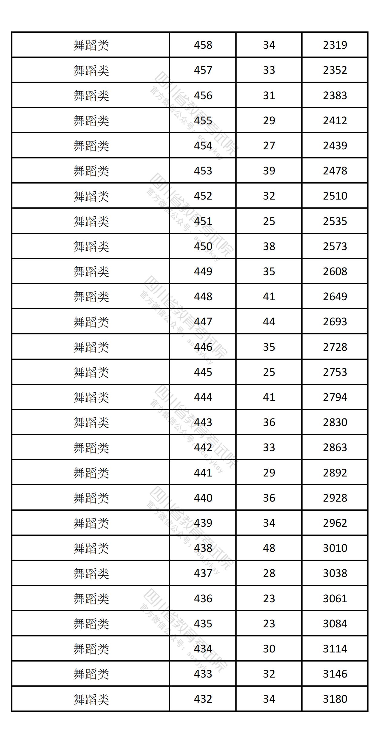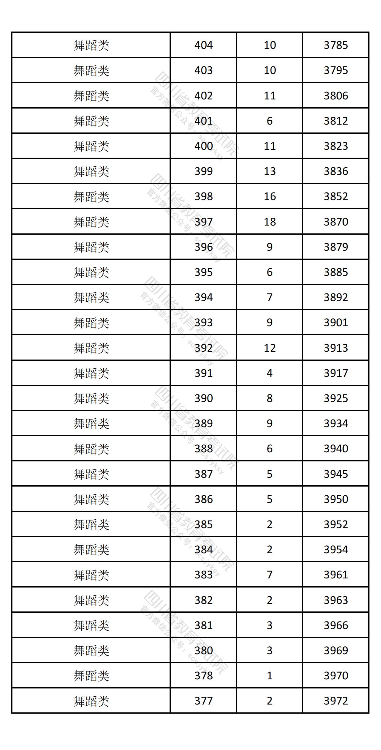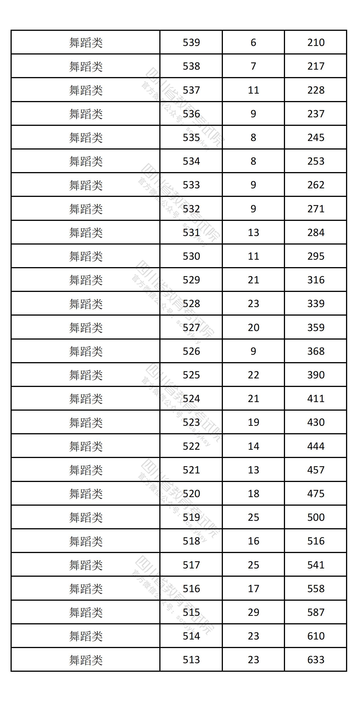 四川省2025年高考音乐舞蹈类综合成绩一分一段排名统计表
